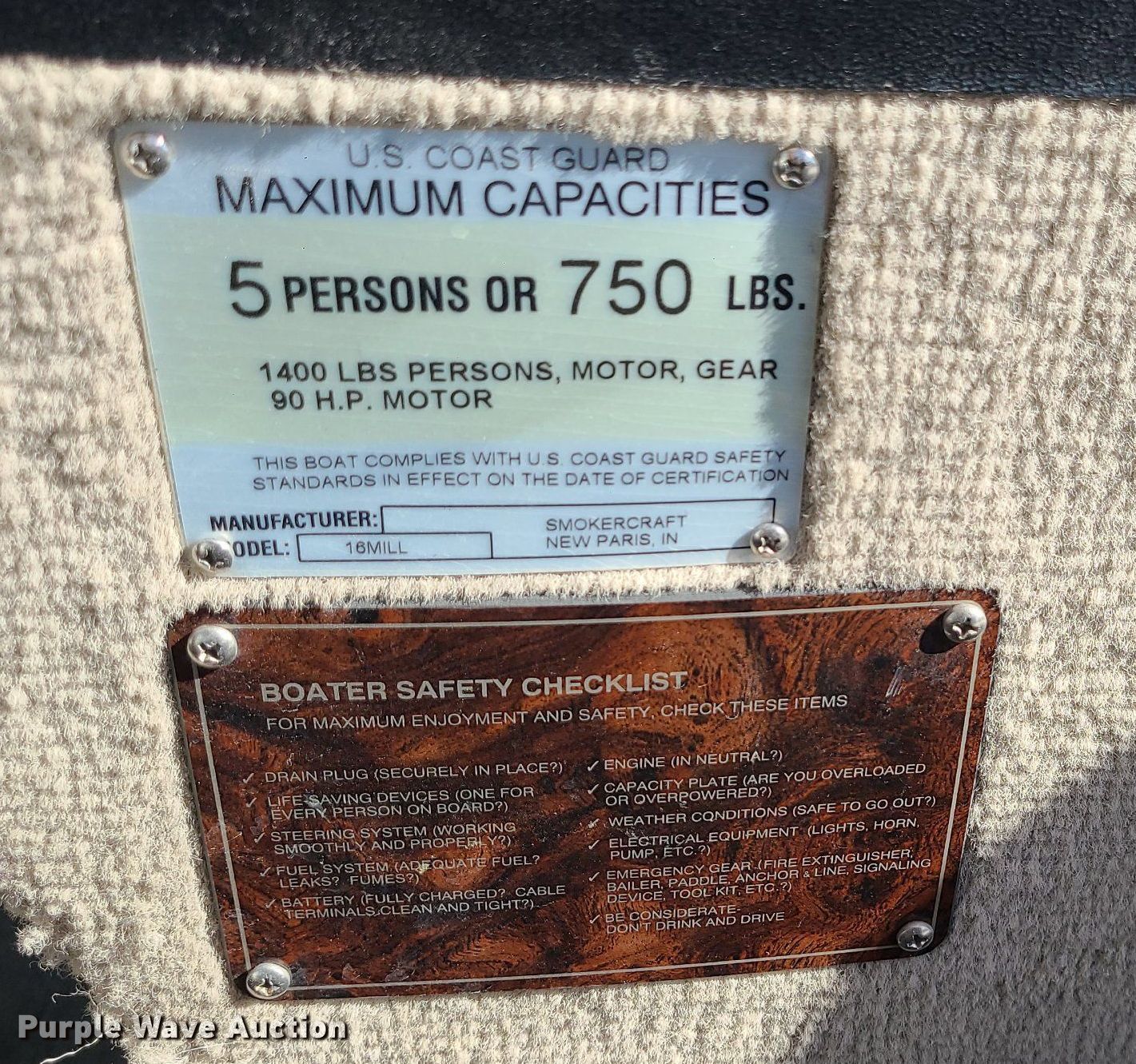 2003 Smokercraft Millenta 162 boat | SOLD! March 27 Vehicles and Equipment Auction