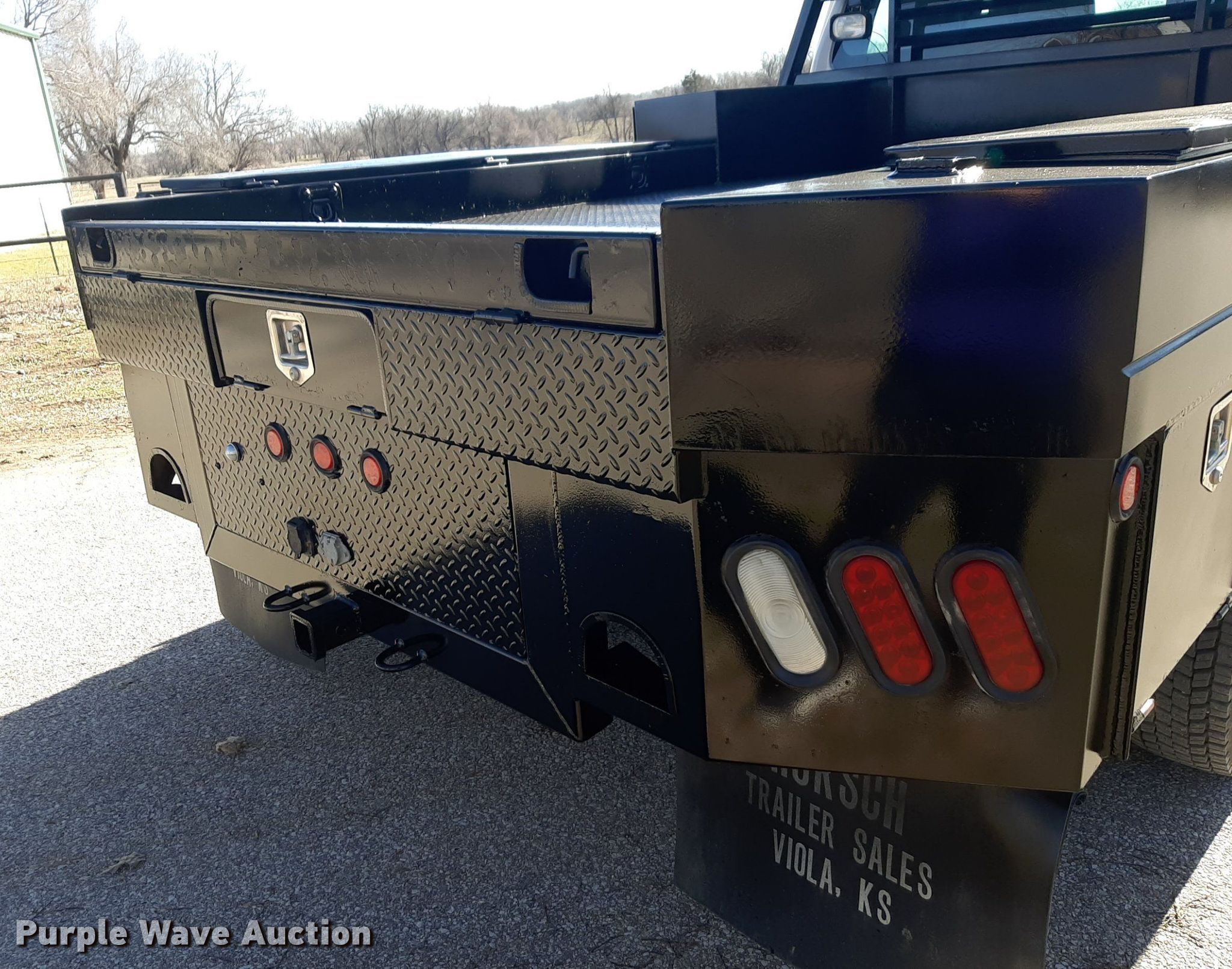 2012 Ford F550 Super Duty Crew Cab flatbed truck. Miles: 24,779 on odometer, VIN: 1FD0W5HT5CEB19529. Engine Displacement: 6.7L V8 OHV, Cylinders: 8, Fuel type: Diesel. Transmission Automatic. Chassis Four wheel drive, Axles: Single, Suspension: Spring, Brakes: Hydraulic, GVWR: 18,000 lbs. Interior AC, Heat, Heated mirrors, Power windows, Power locks, Cruise control, Auxiliary controls. Features Flatbed 9' 6" L x 95" W, Hitch: Gooseneck. Tires Size: 225/70R19.5. Notes DEF deleted, EGR deleted. Kansas title. Title distribution may be delayed up to 14 days from verification of funds. Grenola, KS 67346