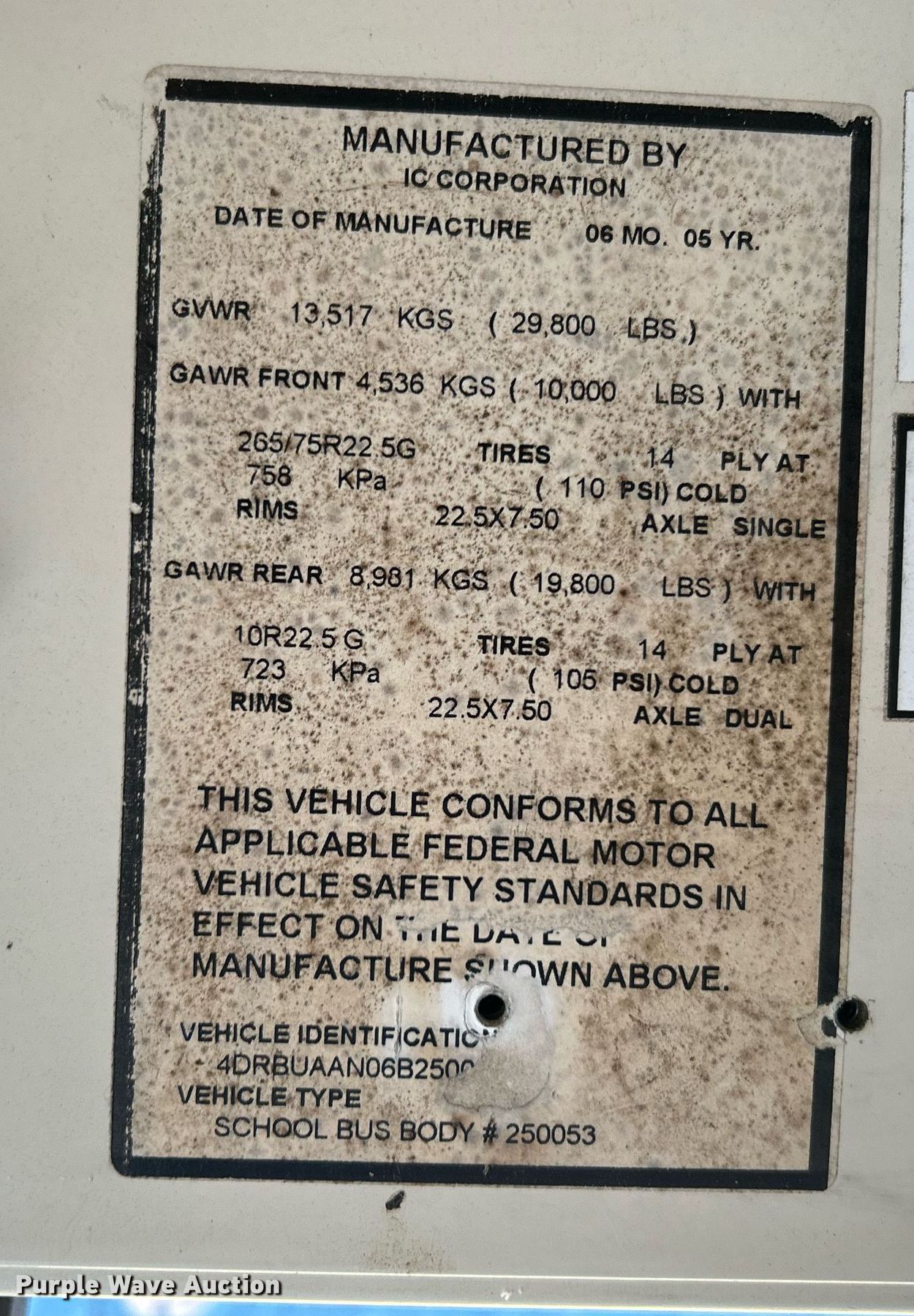 2006 International 3000 school bus. Miles: 136,050 on odometer, Hours: 10,961 on meter, VIN: 4DRBUAAN06B250053. Engine International D210, Displacement: 7.6L, Cylinders: 6, Fuel type: Diesel, HP: 210. Transmission Automatic. Chassis Axles: Single, Suspension: Spring, Brakes: Air, GVWR: 29,899 lbs. Interior Heat, Heated mirrors, Cruise control, Passengers: 71. Tires Size: 11R22.5. Oklahoma title. Title distribution may be delayed up to 14 days from verification of funds. 15107 North 137th East Avenue. Collinsville, OK 74021