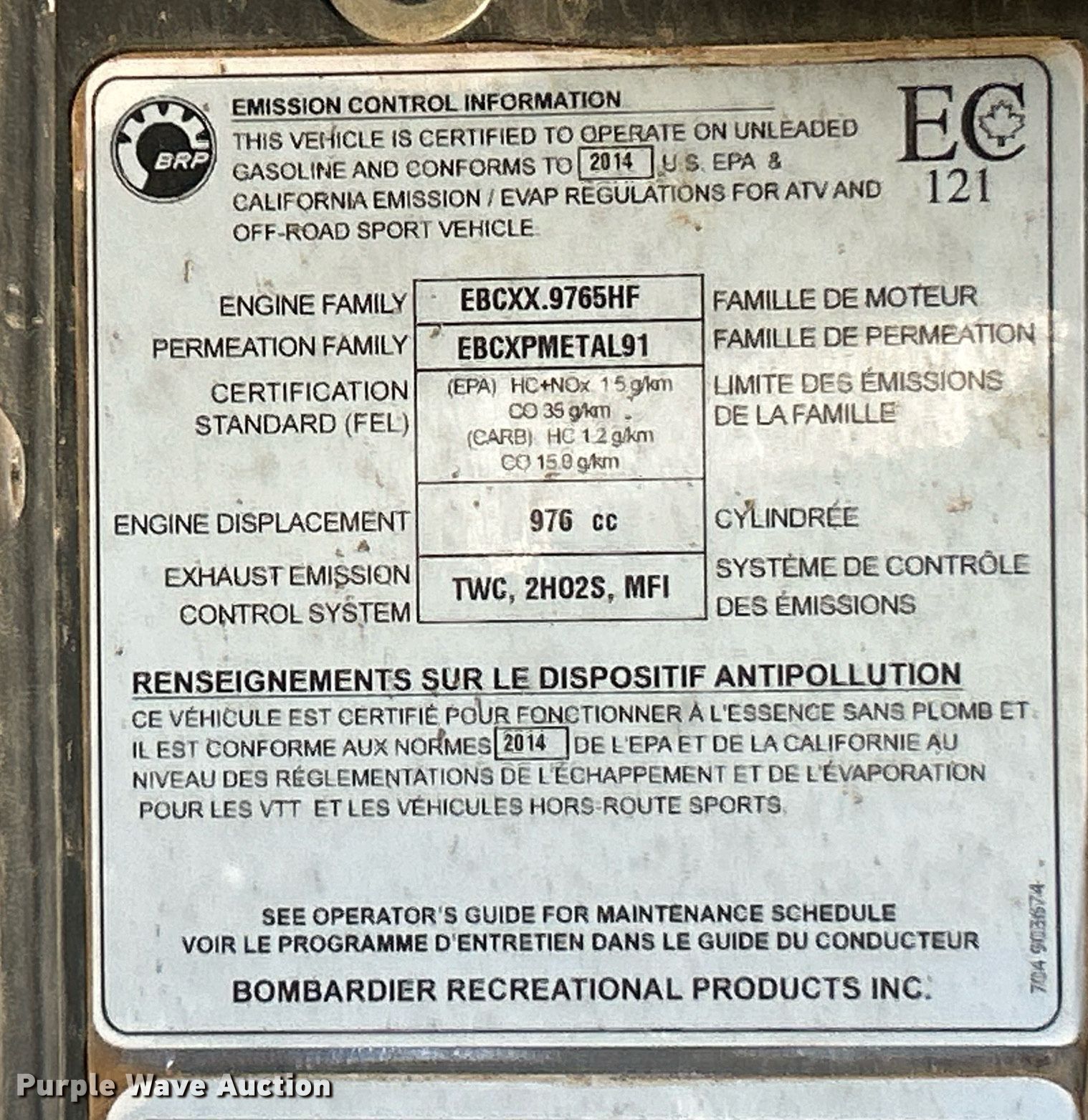 2014 Can-Am Maverick Max XRS utility vehicle. Miles: 6,176 on odometer, Hours: 526 on meter, VIN: 3JBPNDP18EJ000620. Engine BRP, Displacement: 976 cc, Fuel type: Gas, Electric start. Transmission Automatic. Chassis Four wheel drive. Operators station Canopy. Features Grille guard. Tires Size: 30x10.00R14. Transfer of ownership documentation will be a bill of sale which will be assigned and distributed by the seller. Northpoint Enterprises, LLC. 100 Manda Ct. Troy, MO 63379