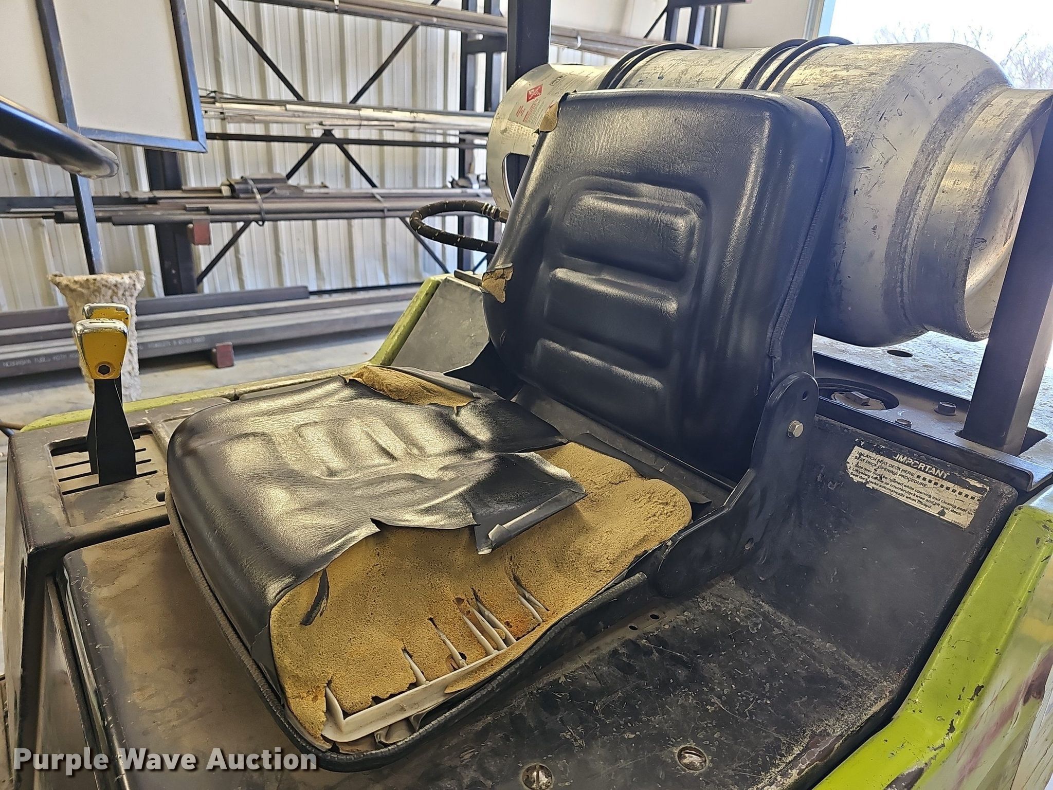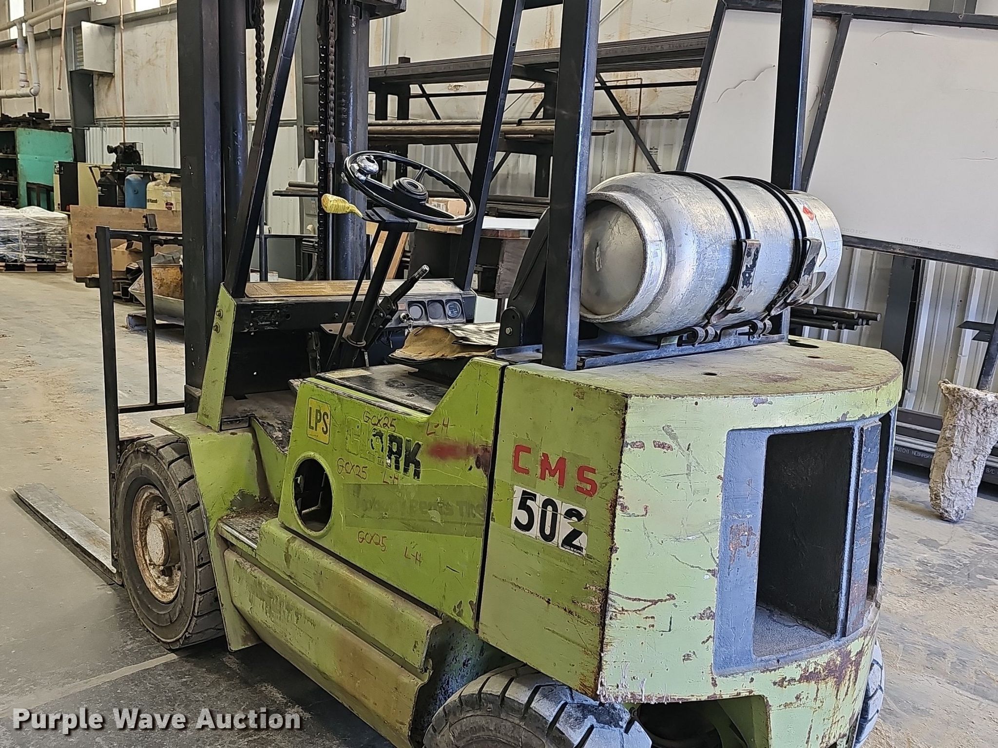 Purple Wave is selling a used Warehouse Forklift in Kansas. This item is a Clark GPS20MC forklift with the following: Hours: 8,846 on meter, Serial: CP138MC02705534FA, Unit #: 502