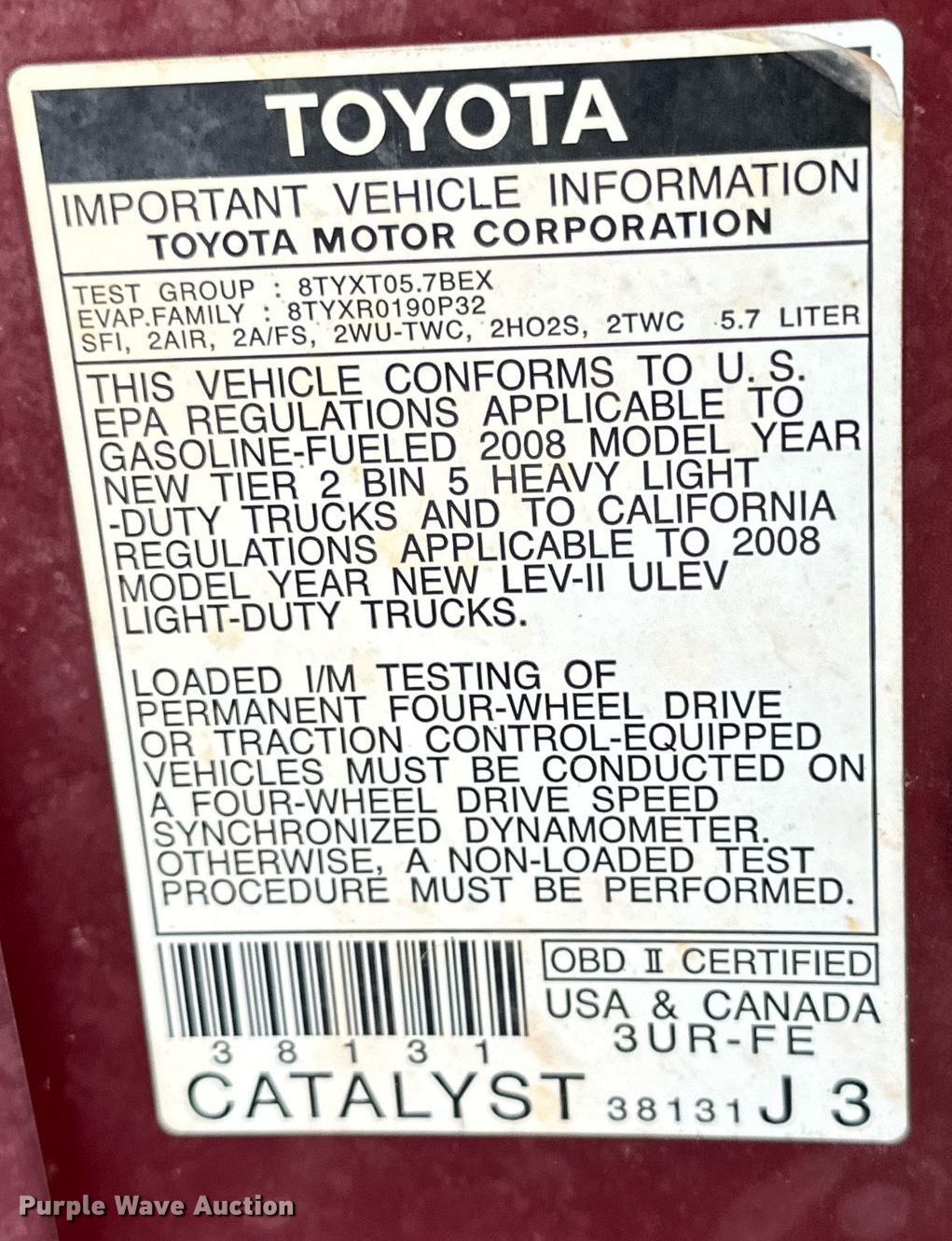 Purple Wave is selling a used 1/2 Ton Pickup or Van in Texas. This item is a 2008 Toyota Tundra Double Cab pickup truck with the following: Miles: 347,627 on odometer, VIN: 5TFRV54128X066867