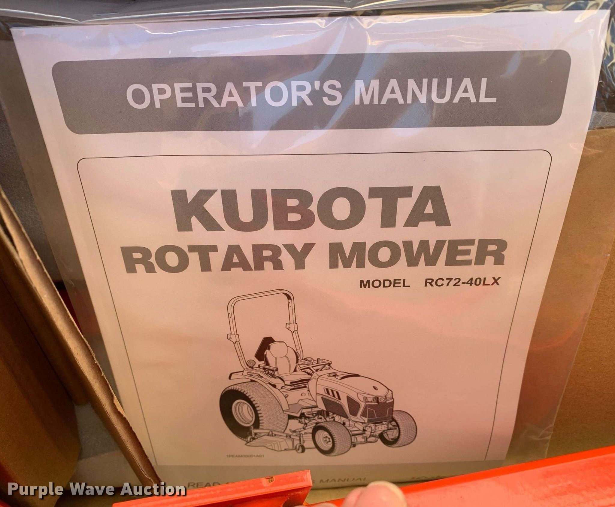 Kubota RC72-40LX 6' W mower deck. Serial: 10072, No manufacturer warranty, Unused. Kubota Tractor Corp. 1000 Kubota Dr. Grapevine, TX 76051