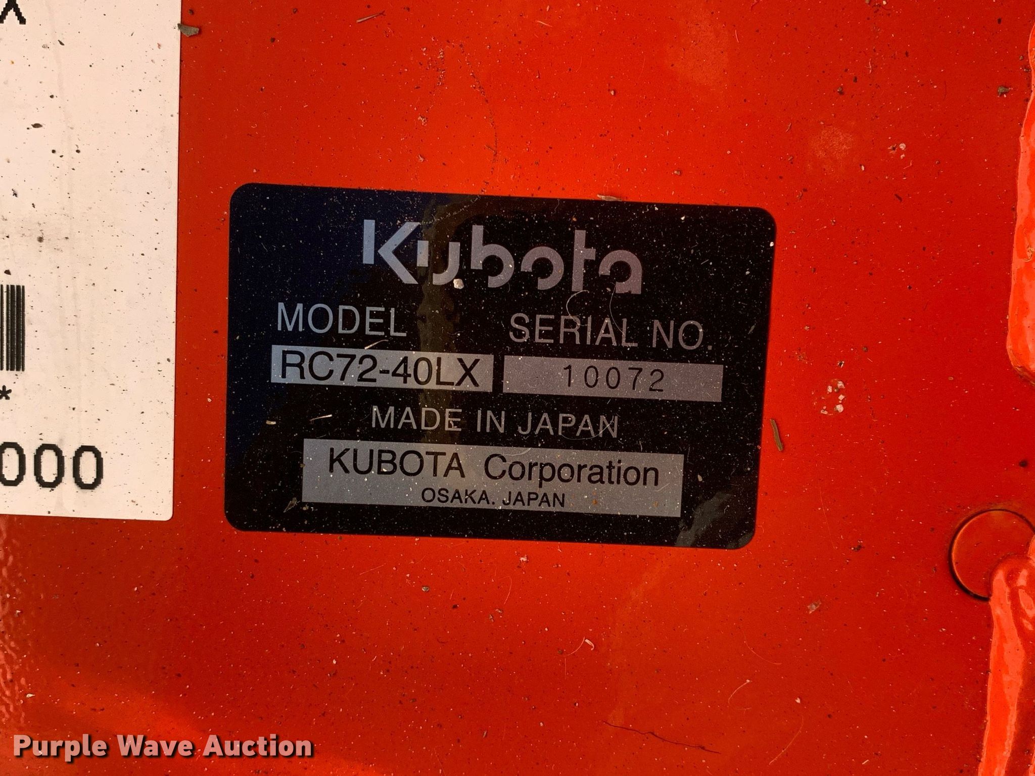 Kubota RC72-40LX 6' W mower deck has sold in Grapevine, Texas for $522.50. Item KX9837 sold on March 27th, 2024.