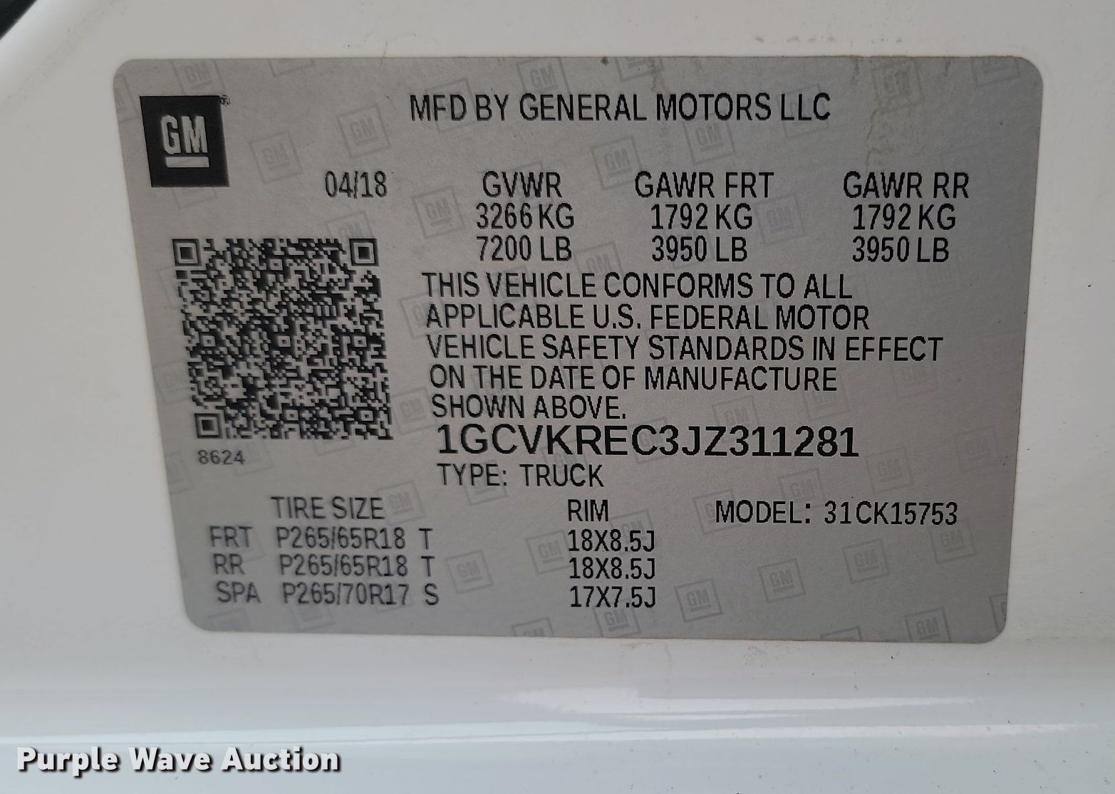 - VIN: 1GCVKREC3JZ311281