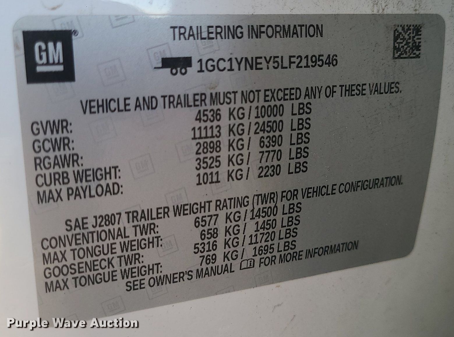 2020 Chevrolet Silverado 2500HD Crew Cab pickup truck. Miles: 203,553 on odometer, VIN: 1GC1YNEY5LF219546. Engine Displacement: 6.6L V8 OHV, Cylinders: 8, Fuel type: Diesel. Transmission Automatic, Four wheel drive. Interior AC, heat, Power windows, power locks, Cruise control. Tires Size: LT285/75R17. Missouri title. Title distribution may be delayed up to 14 days from verification of funds. Liberty, MO 64068
