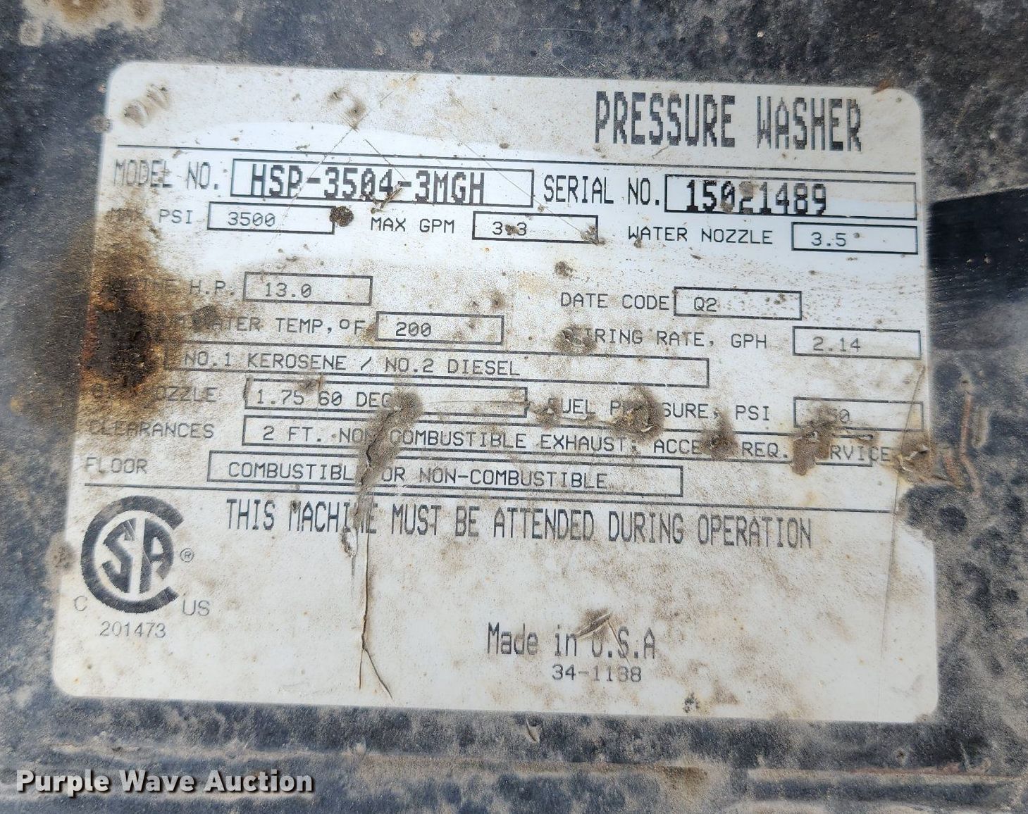 Purple Wave is selling a used Pressure Washer in Missouri. This item is a Mi-T-M HSP-3504-3MGH pressure washer with the following: Serial: 15021489