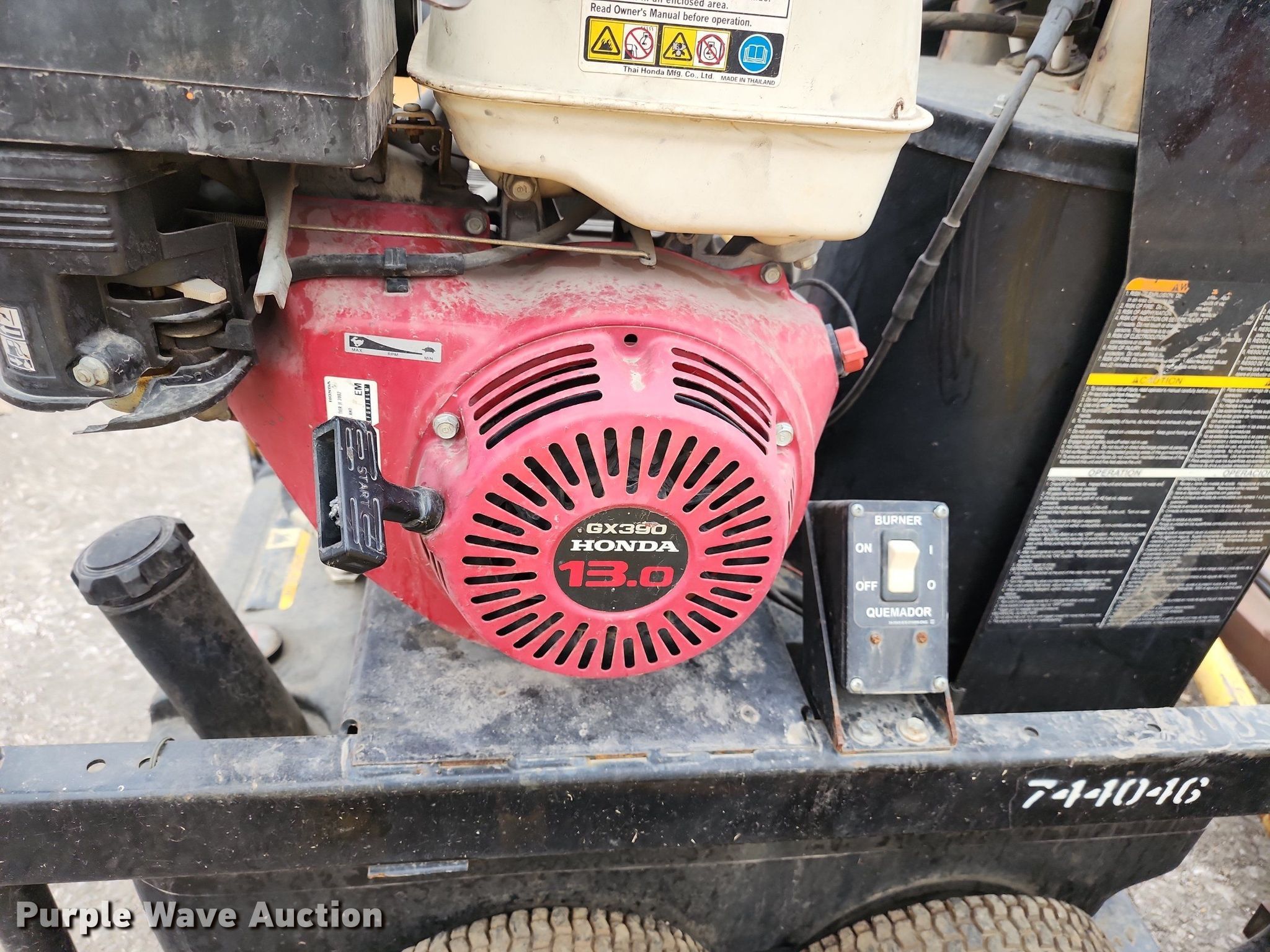 Mi-T-M HSP-3504-3MGH pressure washer. Serial: 15021489. Engine Honda GX390, Cylinders: 1, Fuel type: Gas, HP: 13. Notes GPM: 3.3. Seal-O-Matic Paving. Riverside, MO 64150