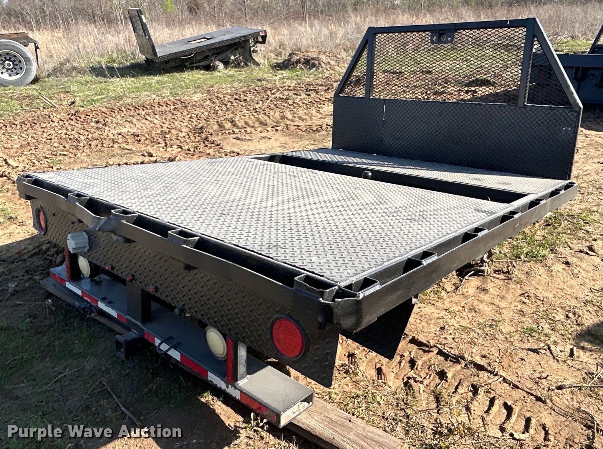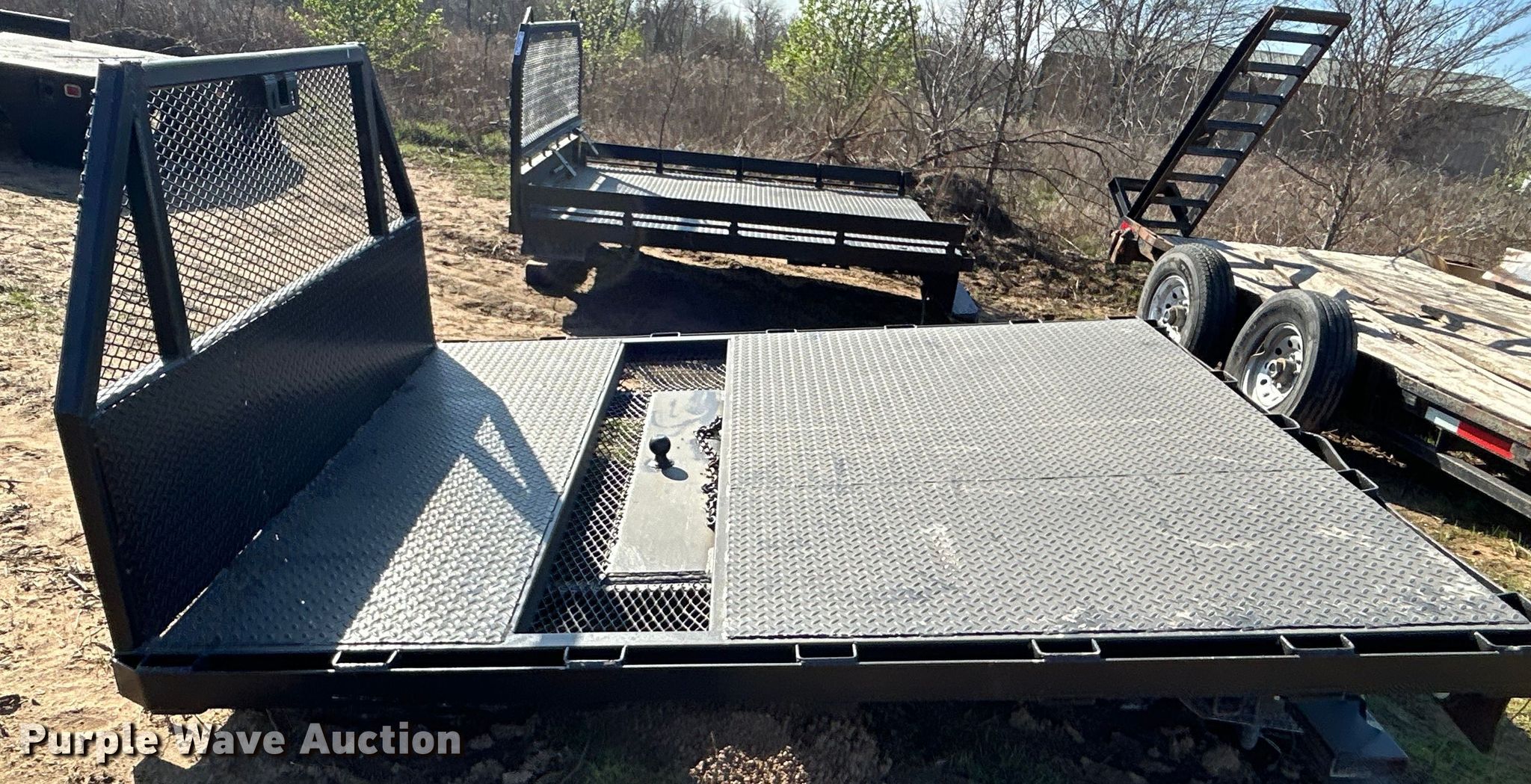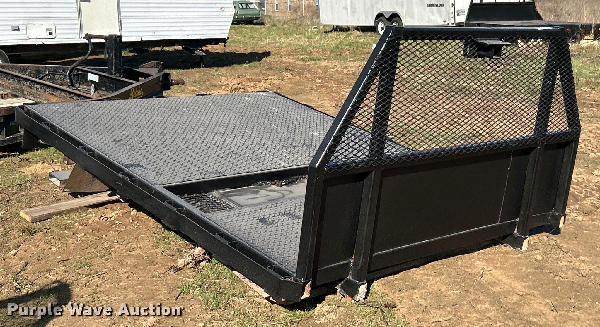 Purple Wave is selling a used Automotive Parts or Acces. in Oklahoma. This item is a Steel flatbed with the following: 8' 2" L x 79" W, Hitch: Gooseneck