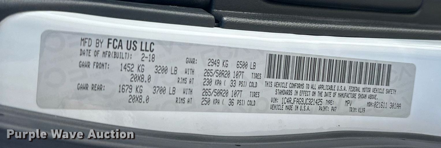Purple Wave is selling a used Passenger Vehicle in Kansas. This item is a 2018 Jeep Grand Cherokee SUV with the following: Miles: 116,766 on odometer, VIN: 1C4RJFAG9JC321425