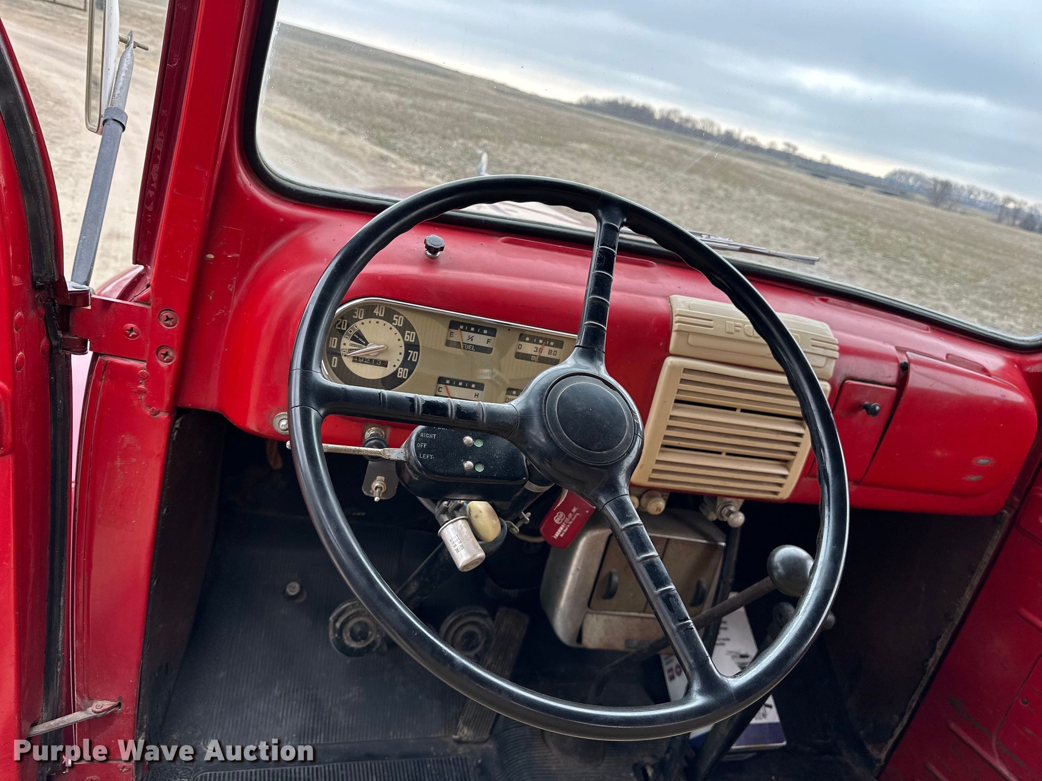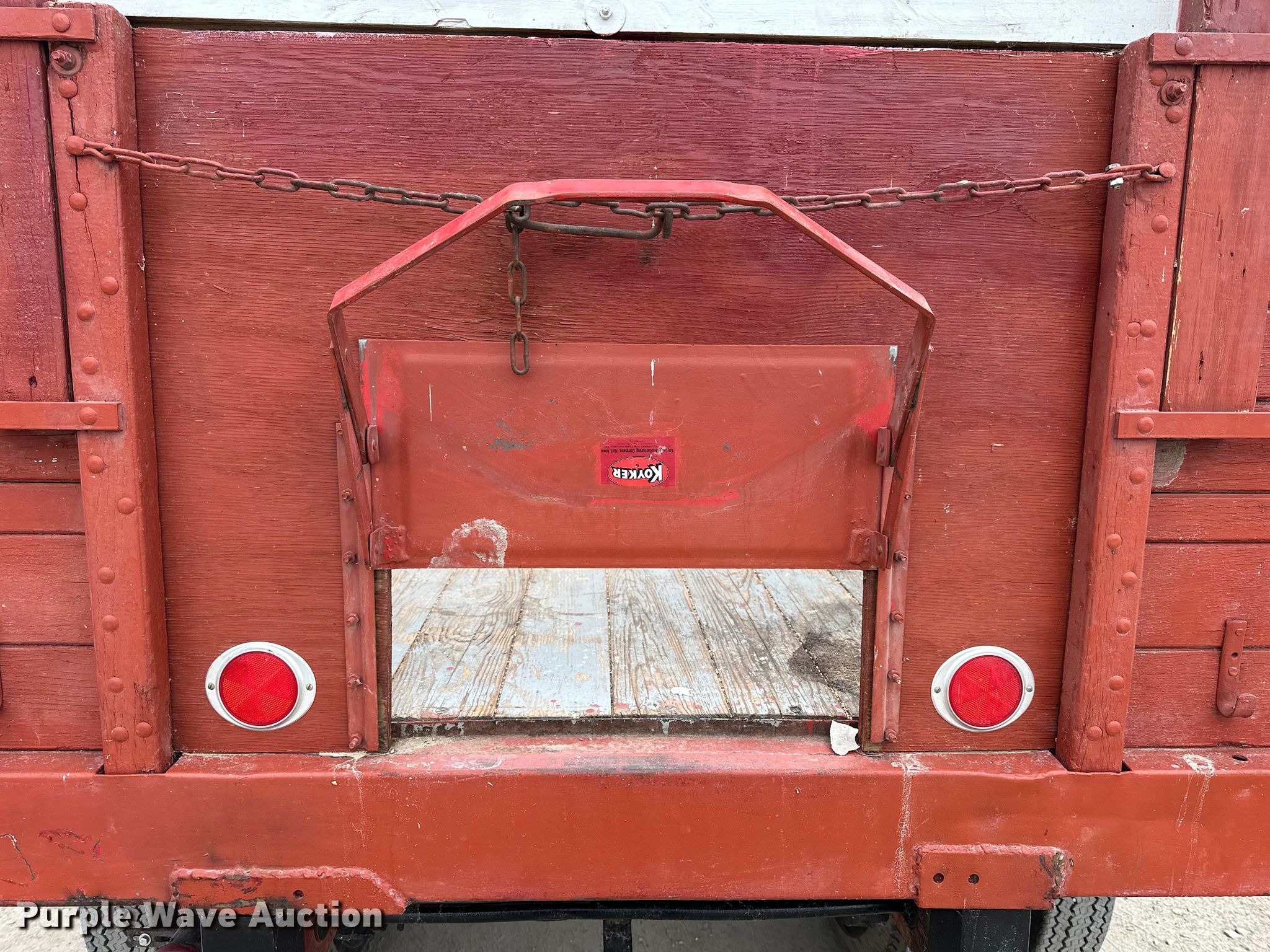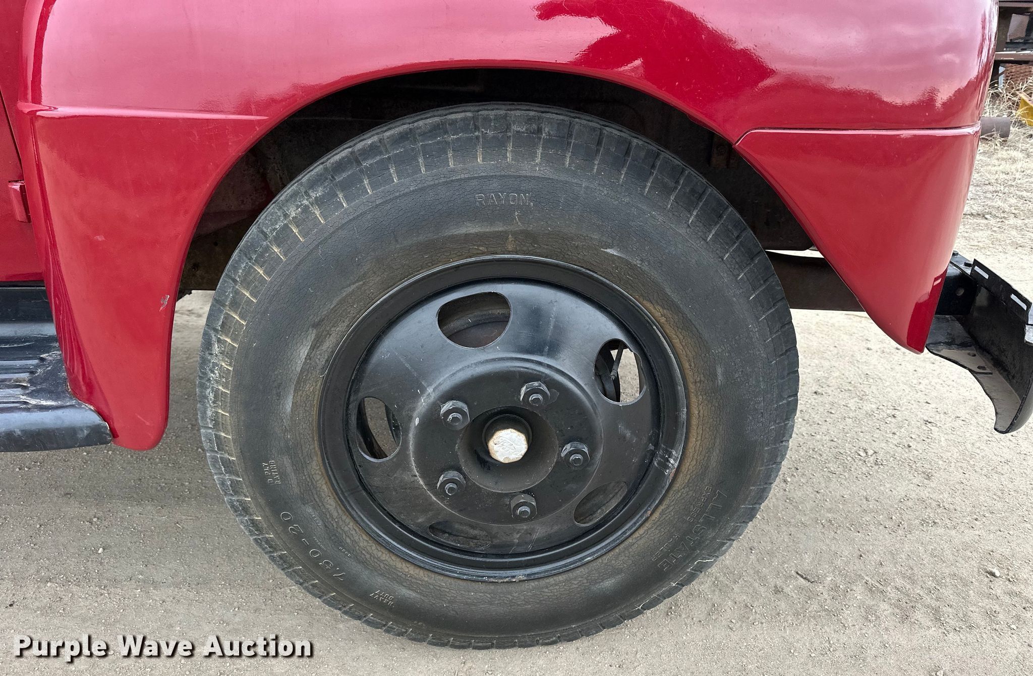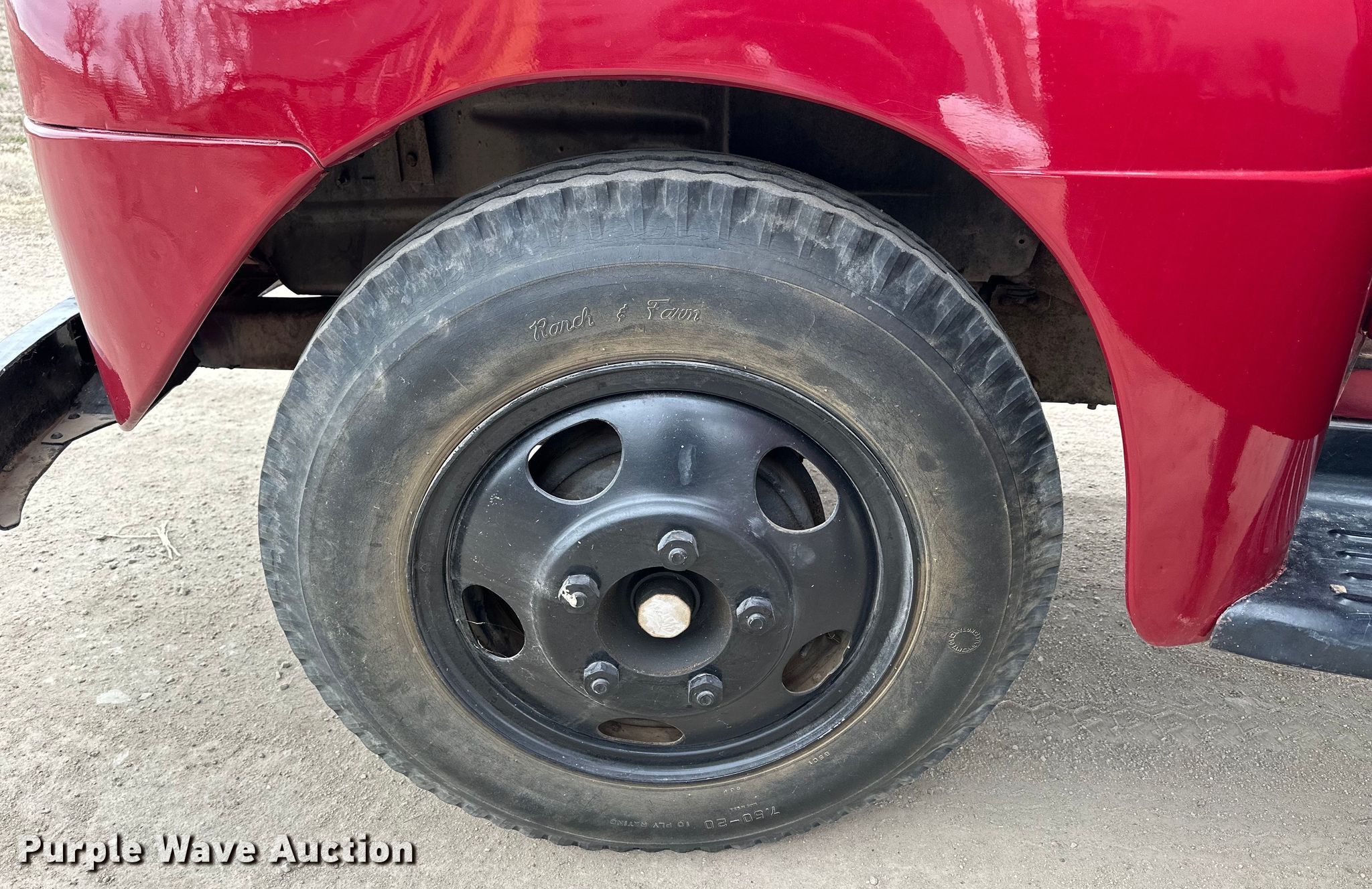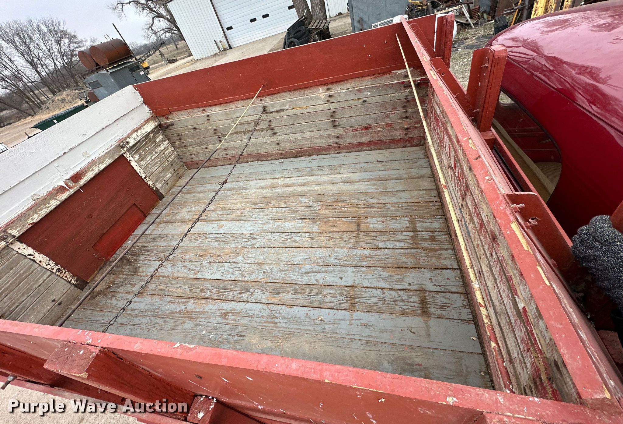 1948 Ford F-5 grain truck. Miles: 49,213 on odometer, VIN: 102556. Engine Ford, Serial: 88RT19985, Cylinders: 8, Fuel type: Gas. Transmission Manual, Speed: 3. Chassis Axles: Single, Suspension: Spring, Brakes: Hydraulic, PTO, GVWR: 14,000 lbs. Interior Heat. Features Dump bed Obeco Bodies, 8' L x 80" W, Side height: 28", Side board height: 12", Ram: Single, End gate: Manual. Tires Size: 7.50-20. Notes Non-operational brakes. Kansas antique title. Title distribution may be delayed up to 14 days from verification of funds. Ogallah, KS 67656