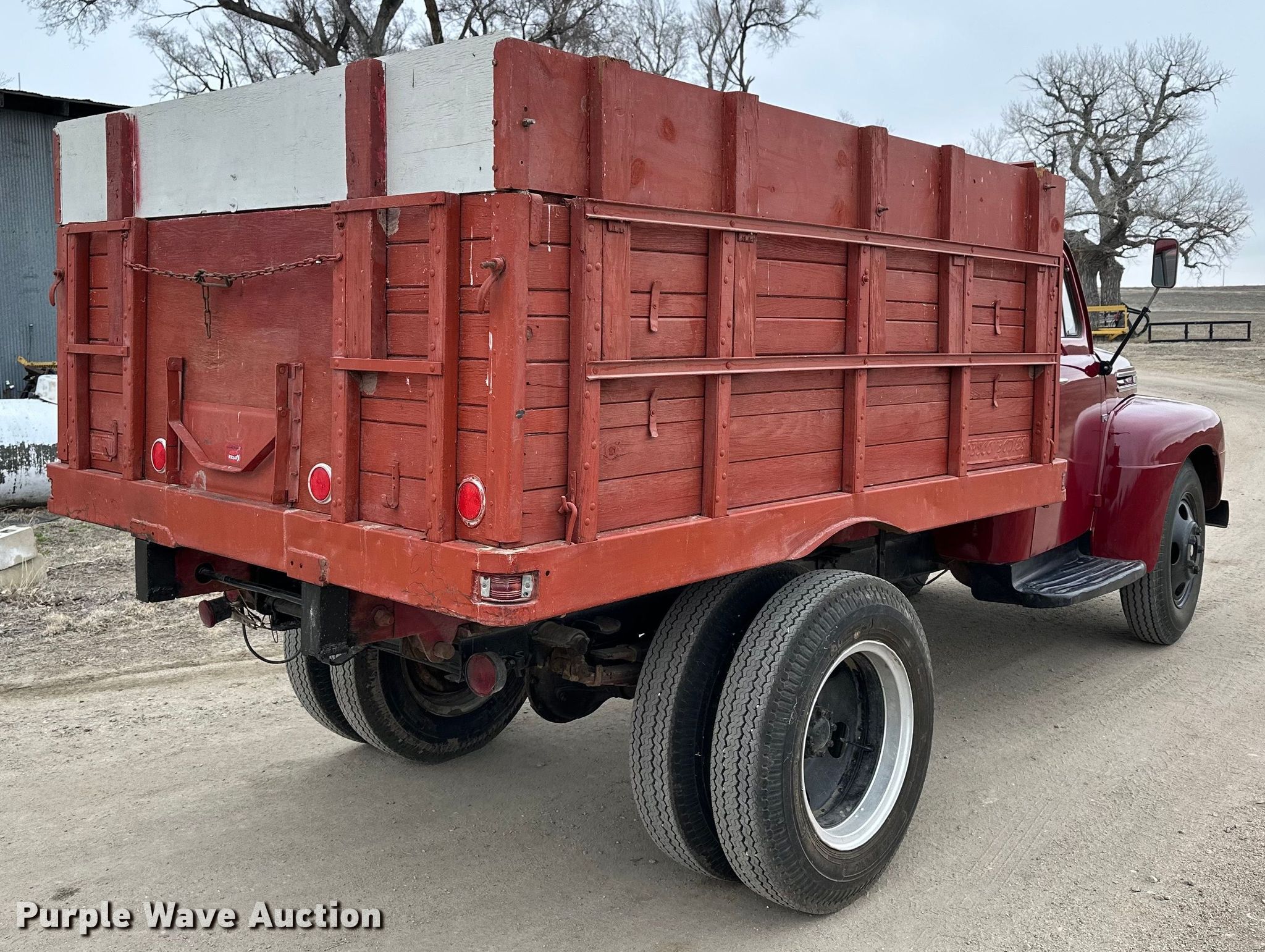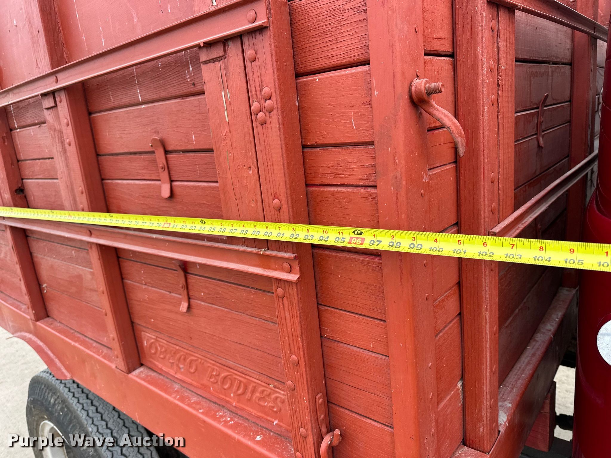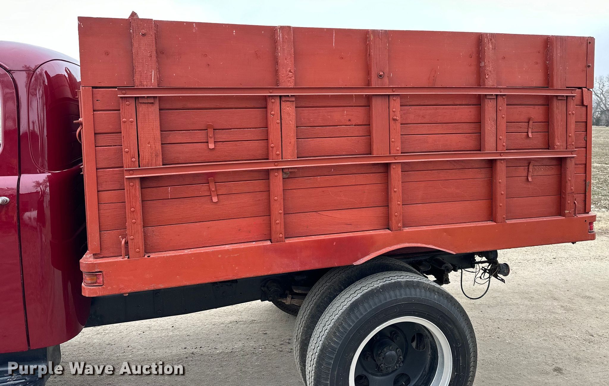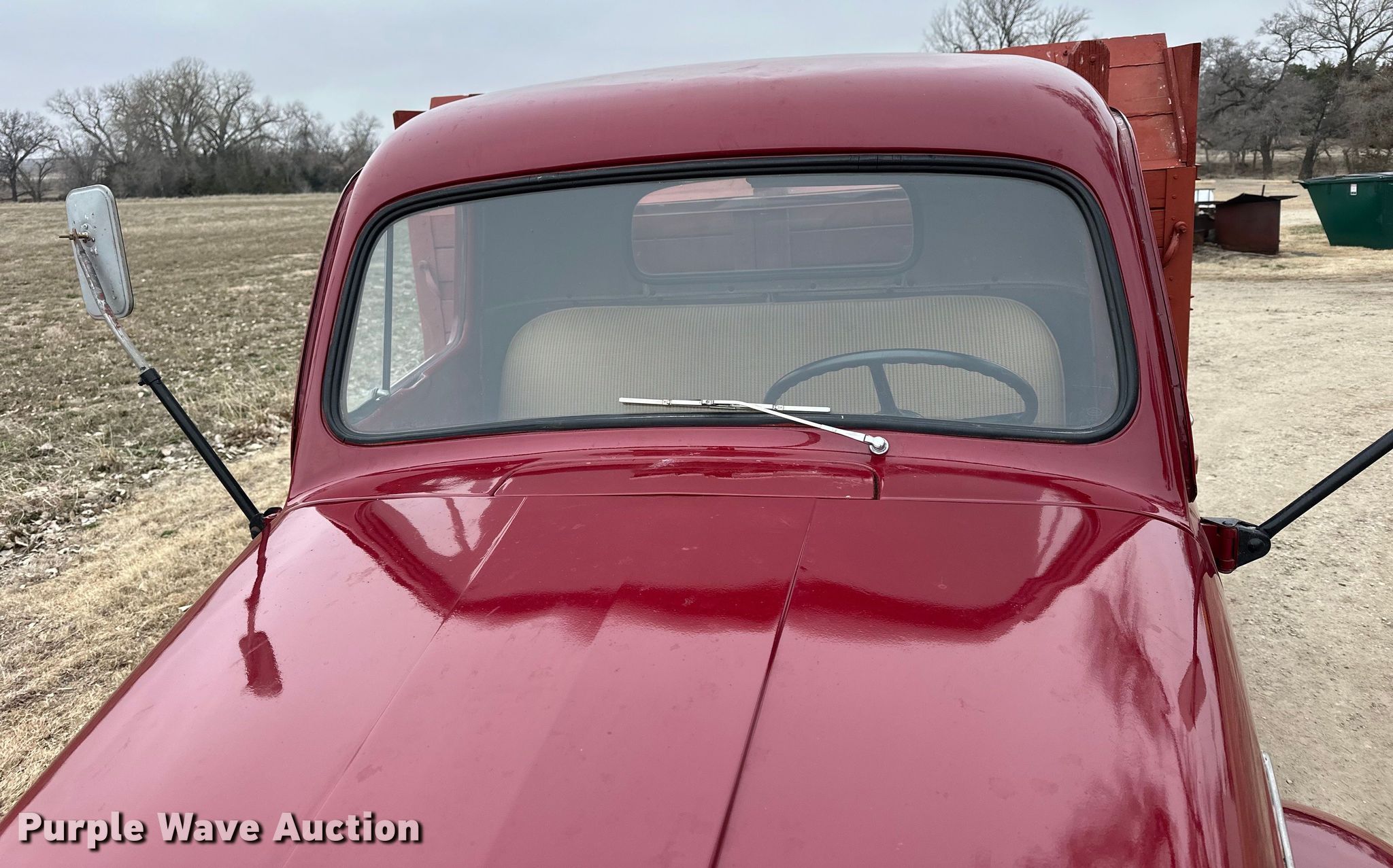 1948 Ford F-5 grain truck. Miles: 49,213 on odometer, VIN: 102556. Engine Ford, Serial: 88RT19985, Cylinders: 8, Fuel type: Gas. Transmission Manual, Speed: 3. Chassis Axles: Single, Suspension: Spring, Brakes: Hydraulic, PTO, GVWR: 14,000 lbs. Interior Heat. Features Dump bed Obeco Bodies, 8' L x 80" W, Side height: 28", Side board height: 12", Ram: Single, End gate: Manual. Tires Size: 7.50-20. Notes Non-operational brakes. Kansas antique title. Title distribution may be delayed up to 14 days from verification of funds. Ogallah, KS 67656