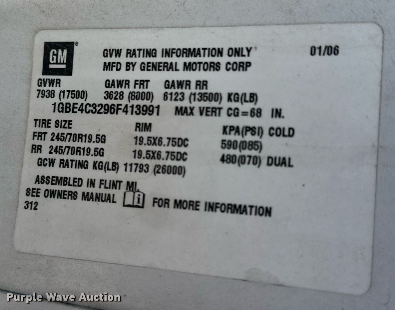 Purple Wave is selling a used Flat Bed Truck in Kansas. This item is a 2006 Chevrolet C4500 flatbed truck with the following: Miles: 108,709 on odometer, VIN: 1GBE4C3296F413991