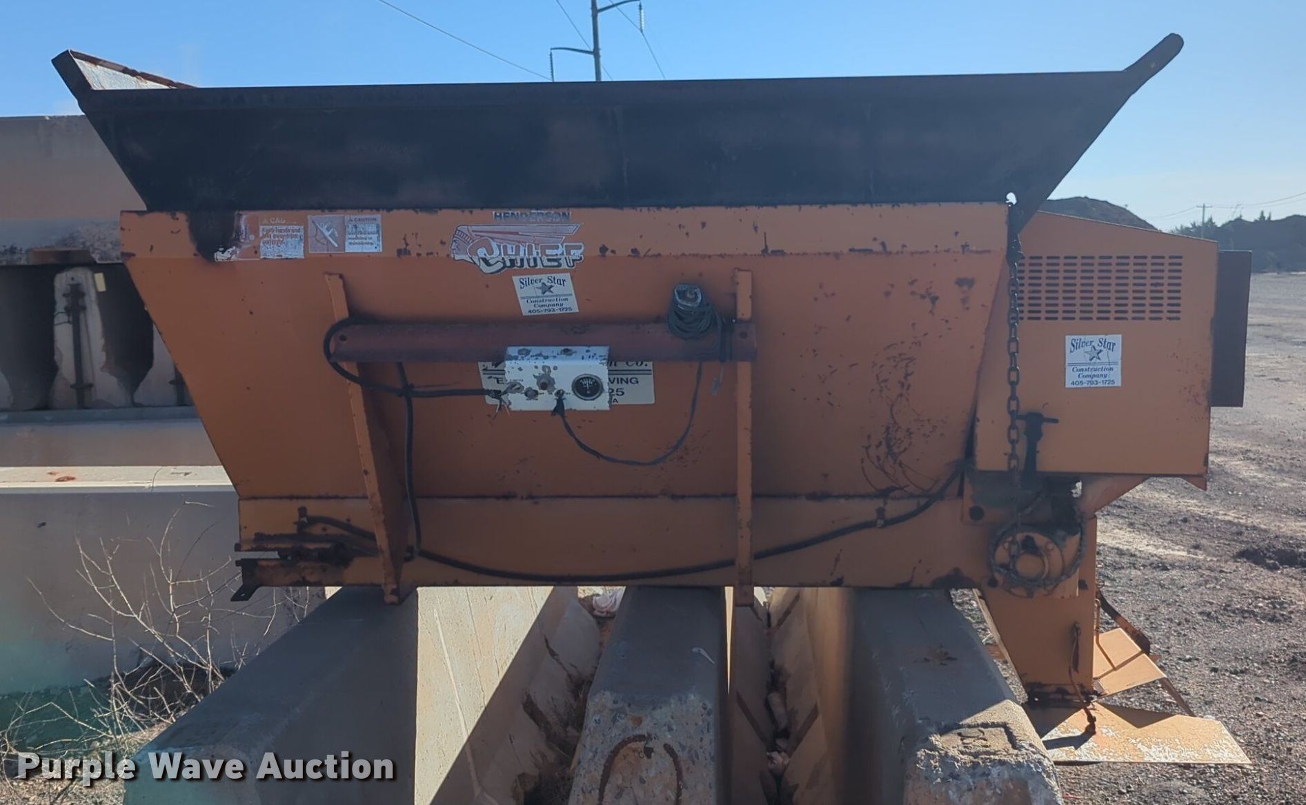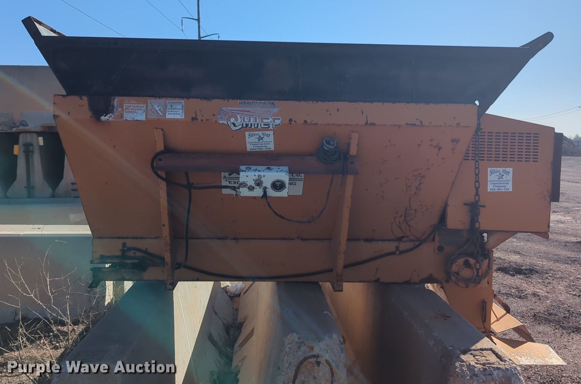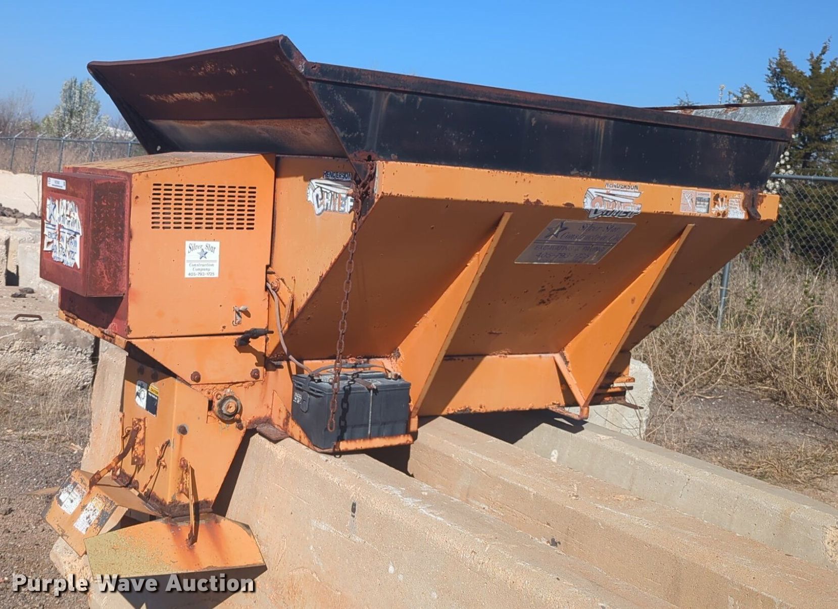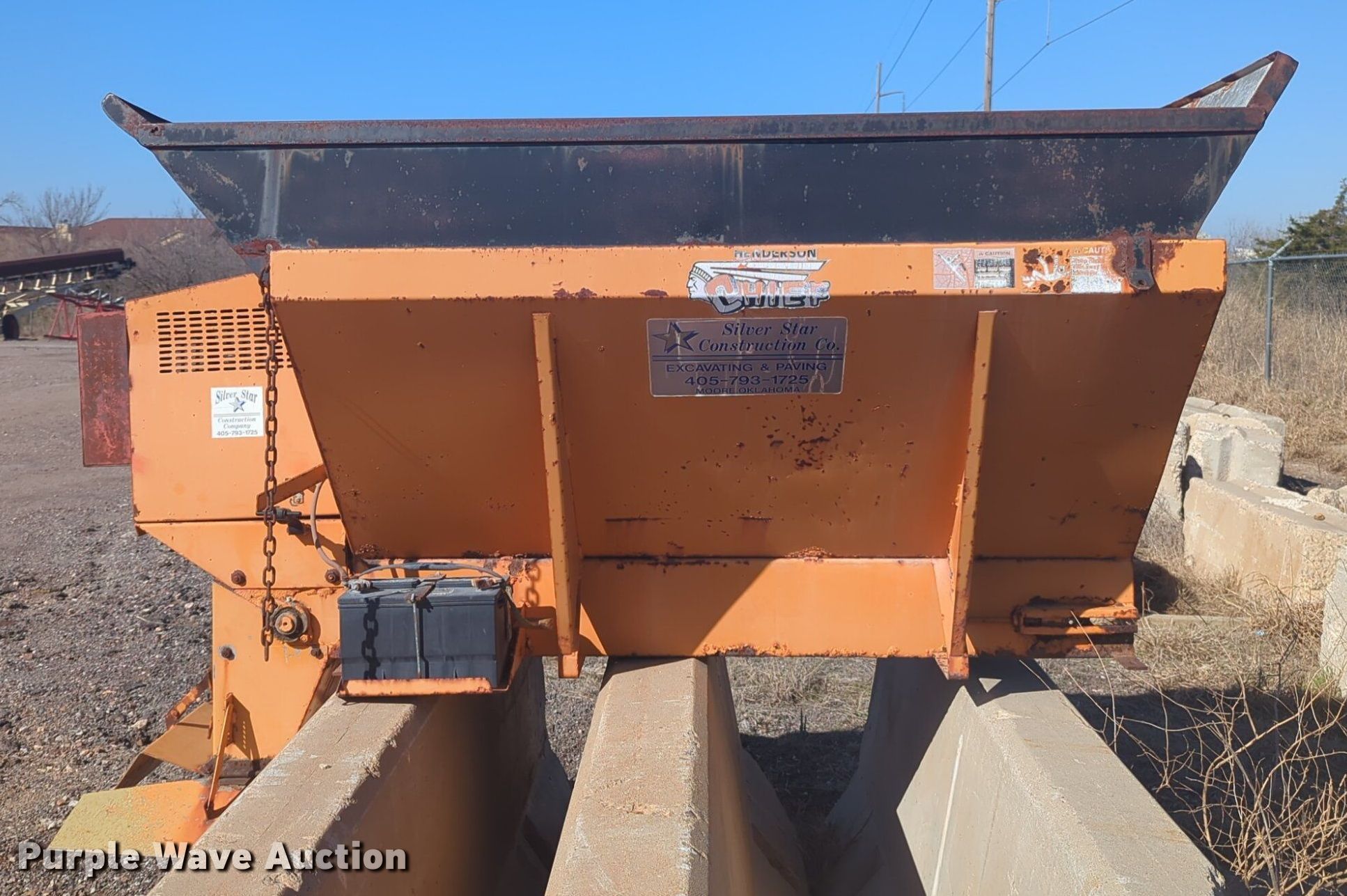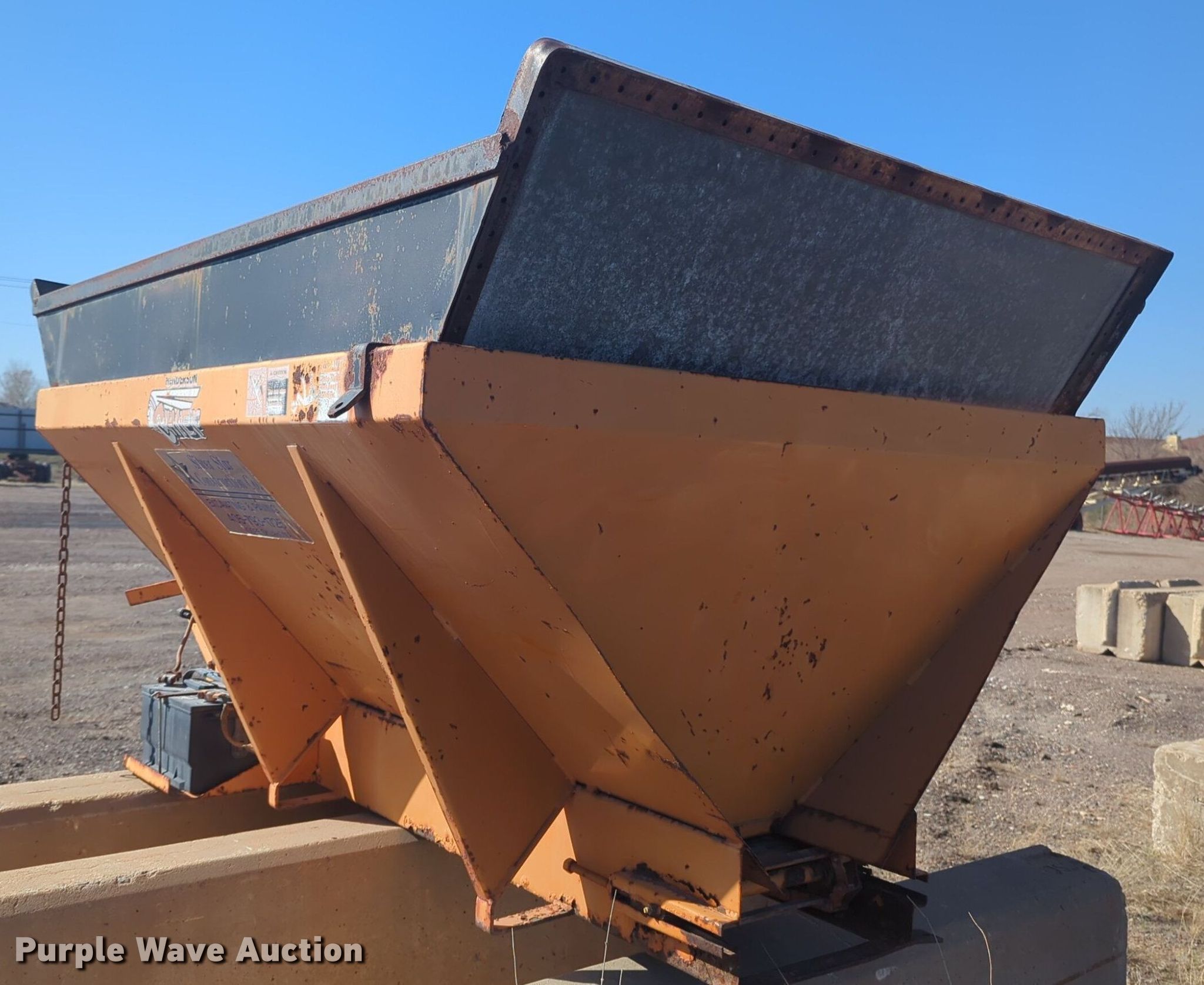 Purple Wave is selling a used Truck Part and Attach. in Oklahoma. This item is a Henderson Cheif spreader with the following: 5' L x 54" W