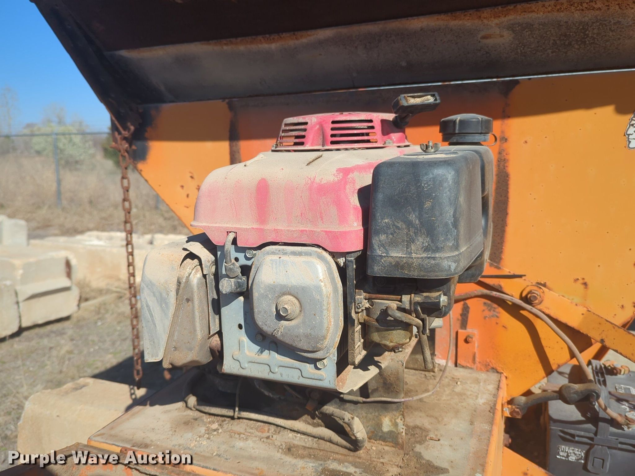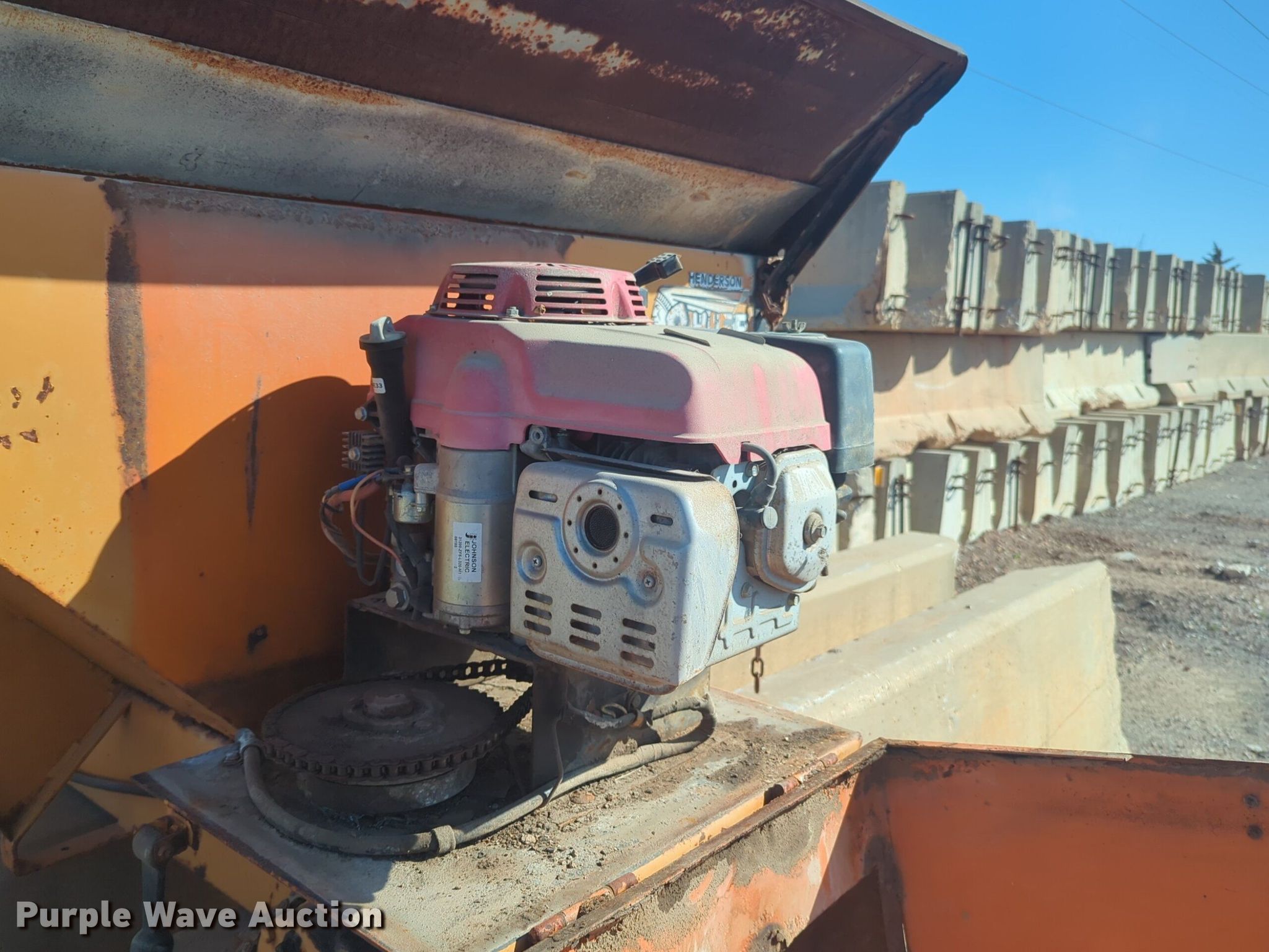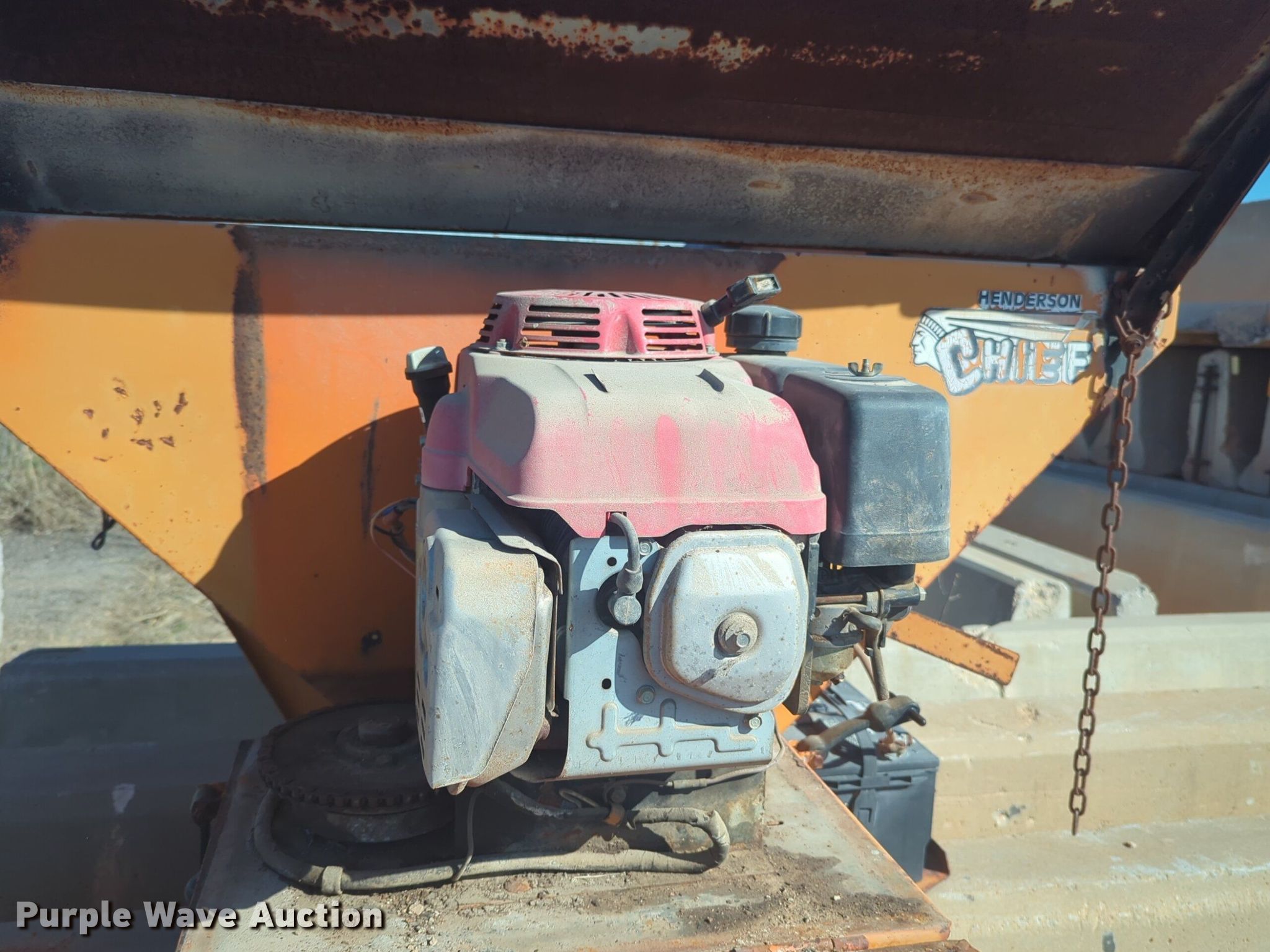 Henderson Cheif spreader. 5' L x 54" W. Engine Cylinders: 1, Fuel type: Gas. Notes Unknown operating condition of engine. Silver Star Construction Co., Inc.. 2401 South Broadway Avenue. Moore, OK 73160