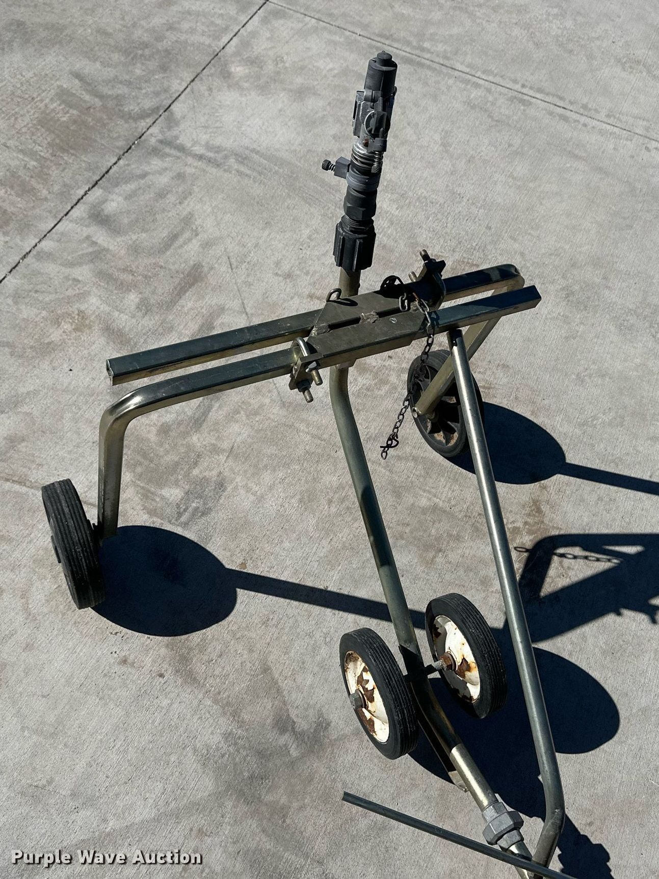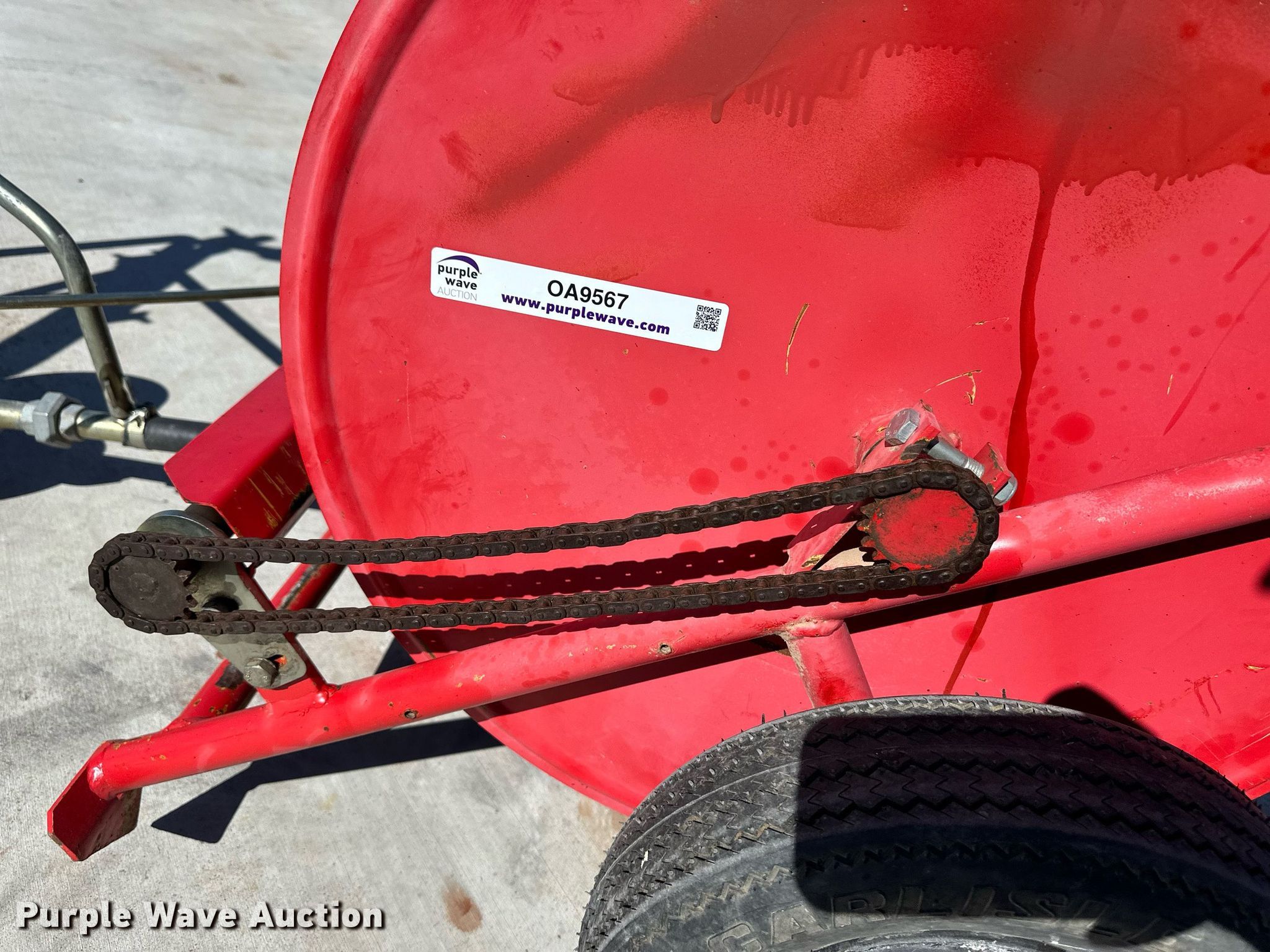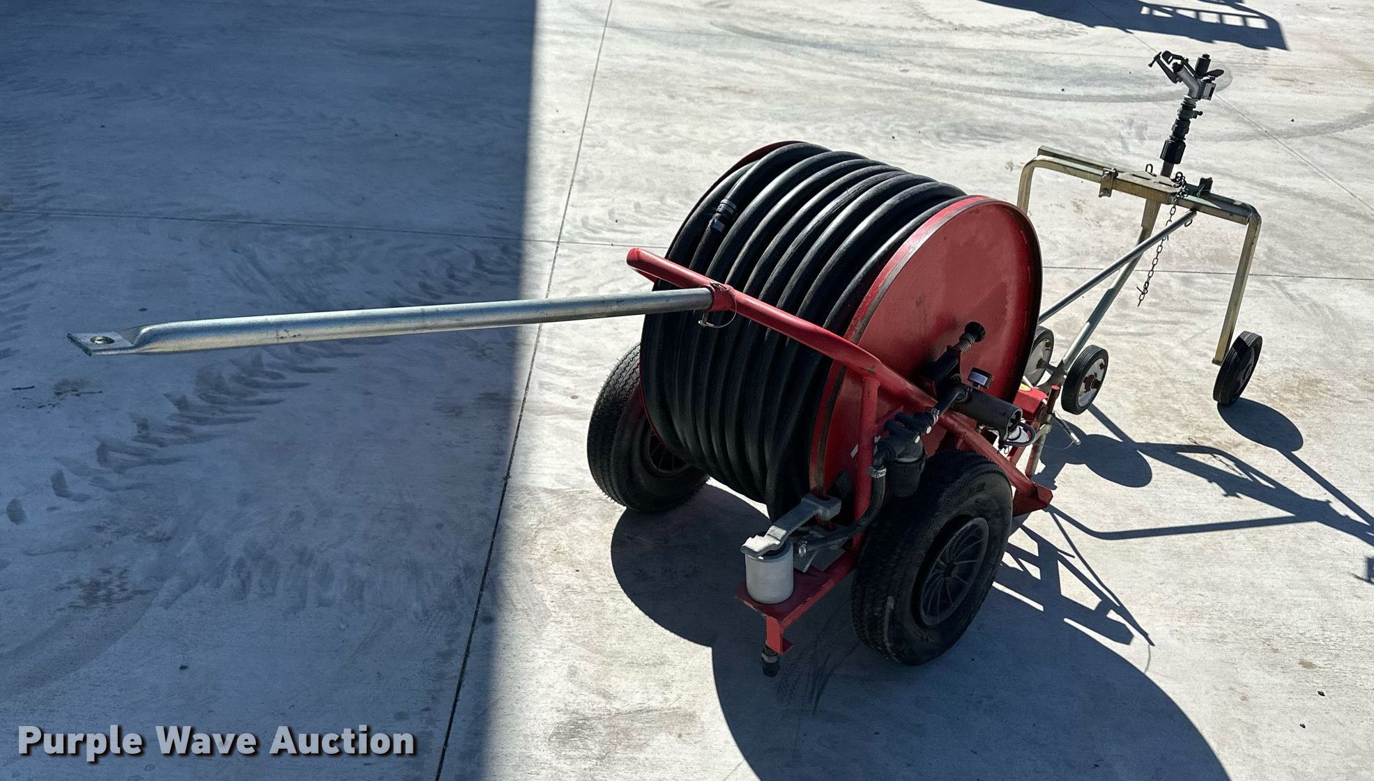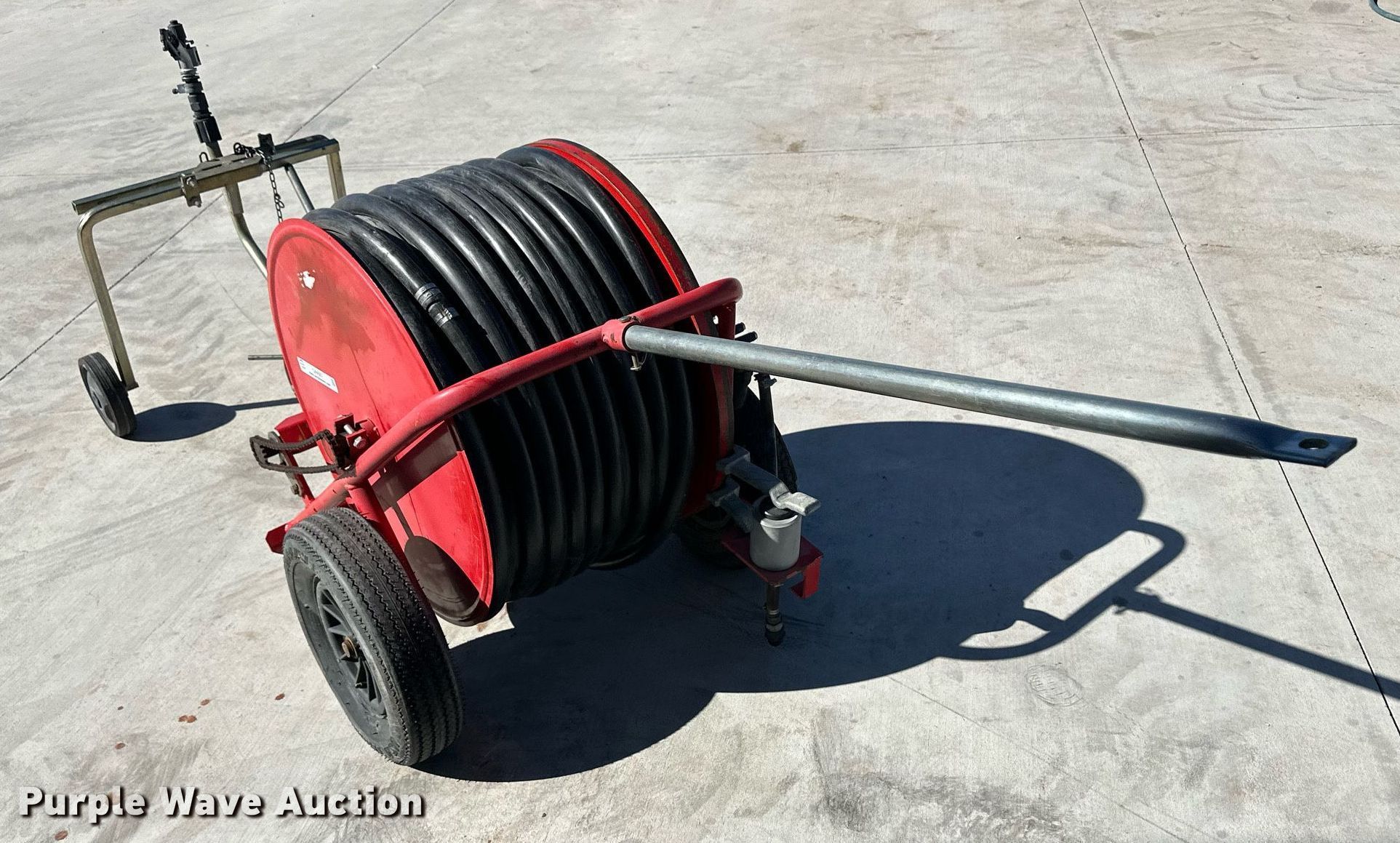 Water reel. Reel diameter: 26�, Hose diameter: 1�, Hose length: Approx. 300 feet, Automatic reel, Sprinkler. Notes Flat tire will be fixed prior to auction. Ulysses, KS 67880