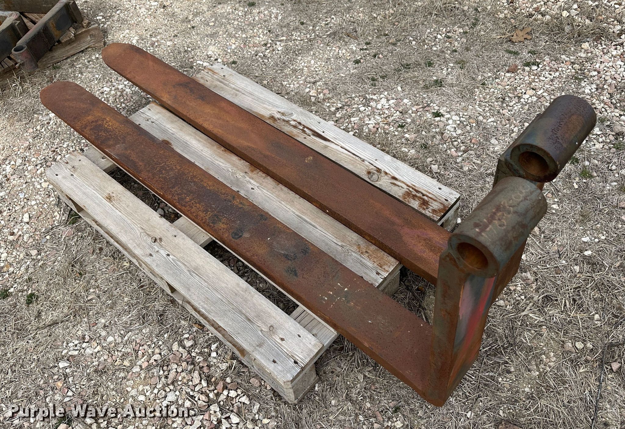 Purple Wave is selling a used Forklift Attach. in Kansas. This item is a 72" L pallet forks with the following: 72" L pallet forks. Filson Mfg. Co.. Protection, KS 67127