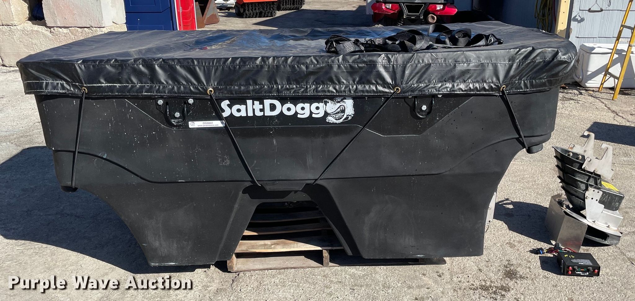 Purple Wave is selling a used Truck Part and Attach. in Illinois. This item is a SaltDogg SHPE2000 spreader with the following: 8' L x 4' W, Unit #: 13