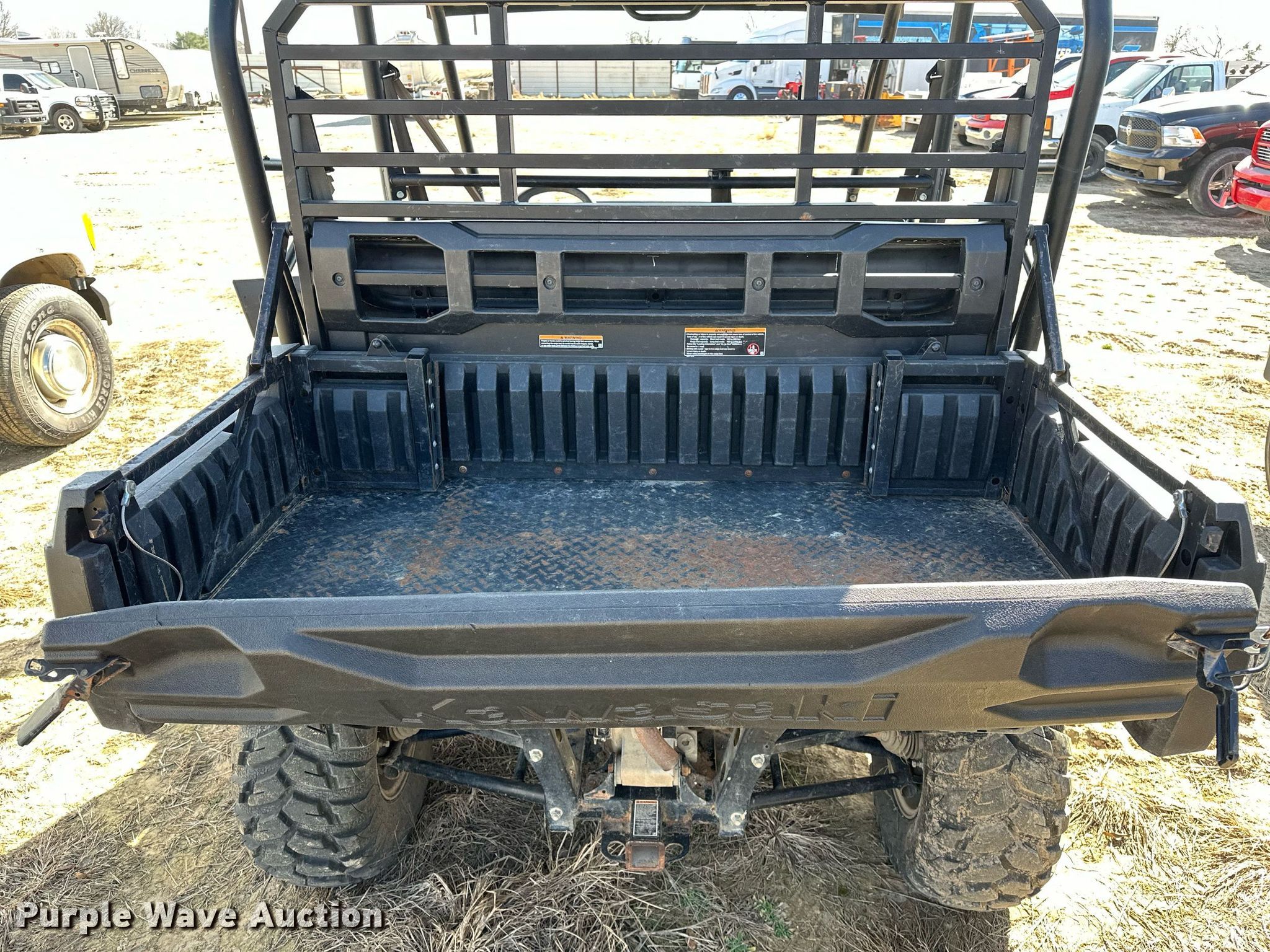 2018 Kawasaki Mule PRO-FXT utility vehicle. VIN: JKBAFSC12JB10266. Engine Kawasaki, Cylinders: 3, Fuel type: Gas, Electric start. Transmission CVT. Chassis Four wheel drive. Operators station OROPS, Canopy. Features Receiver hitch, Dump bed 27.5" L x 55" W, Dump bed type: Manual. Tires Front: 26X9.00-12, Rear: AT26X11R12. Notes Dead battery, Driver door catch latch missing, Unknown operating condition. Oklahoma title. Seller is an Arkansas licensed motor vehicle dealer. The buyer may be required to pay sales tax and/or registration fees to the dealer prior to taking possession. Title will be assigned and distributed by the dealer. Please contact the seller for distribution questions. Title distribution may be delayed up to 14 days from verification of funds. Ambassador Properties LLC. 2902 West Henri De Tonti Boulevard. Springdale, AR 72762