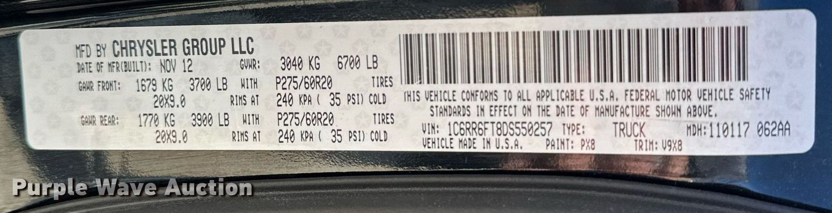 - VIN: 1C6RR6FT8DS550257