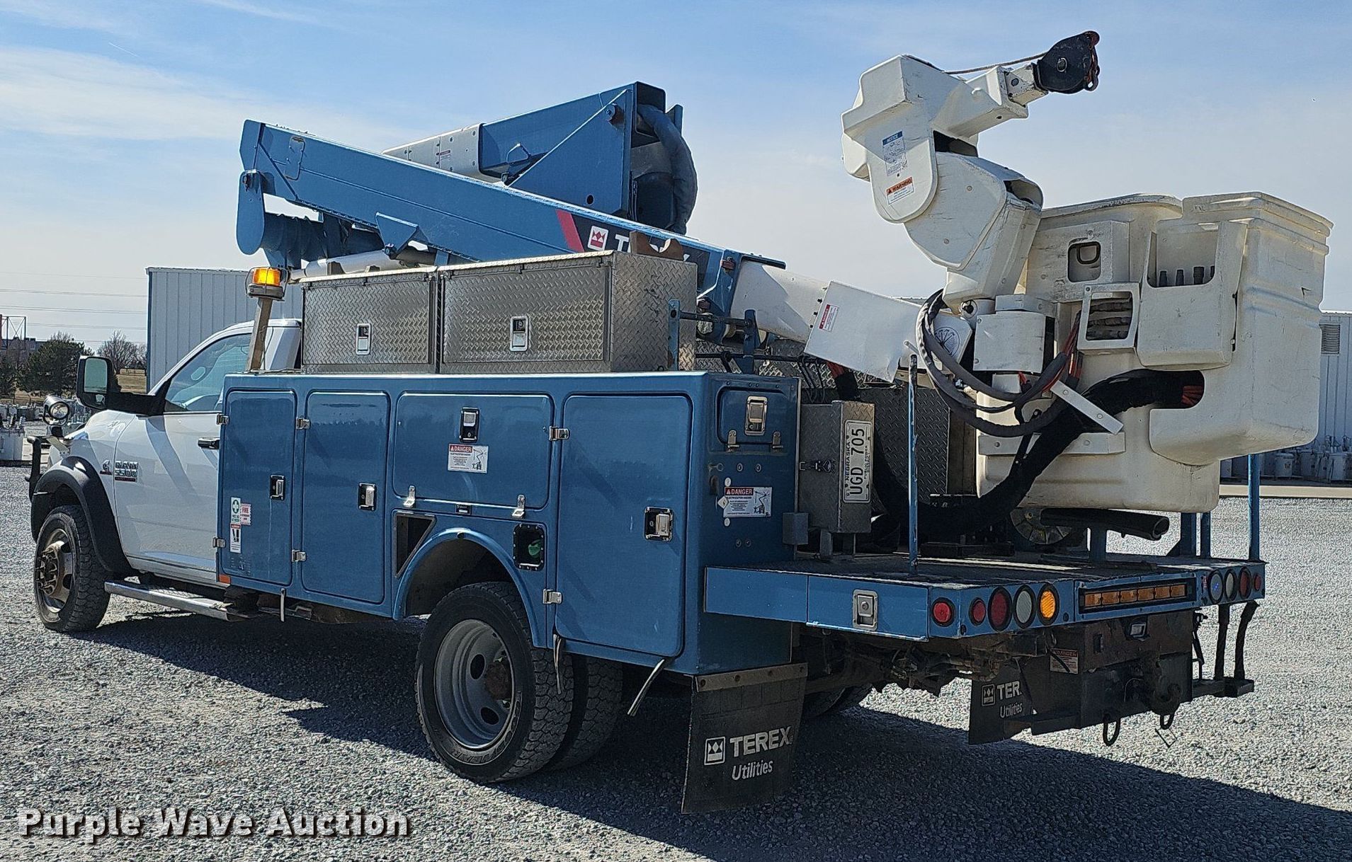 Purple Wave is selling a used Bucket Truck in Nebraska. This item is a 2015 Dodge Ram 5500HD bucket truck with the following: Miles: 176,282 on odometer, VIN: 3C7WRNBL2FG632770, Unit #: 08-15