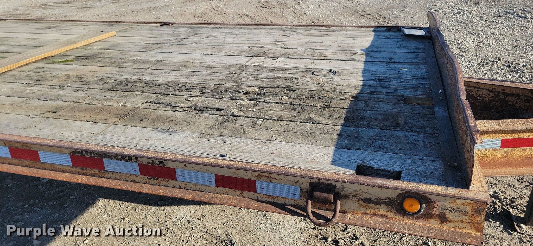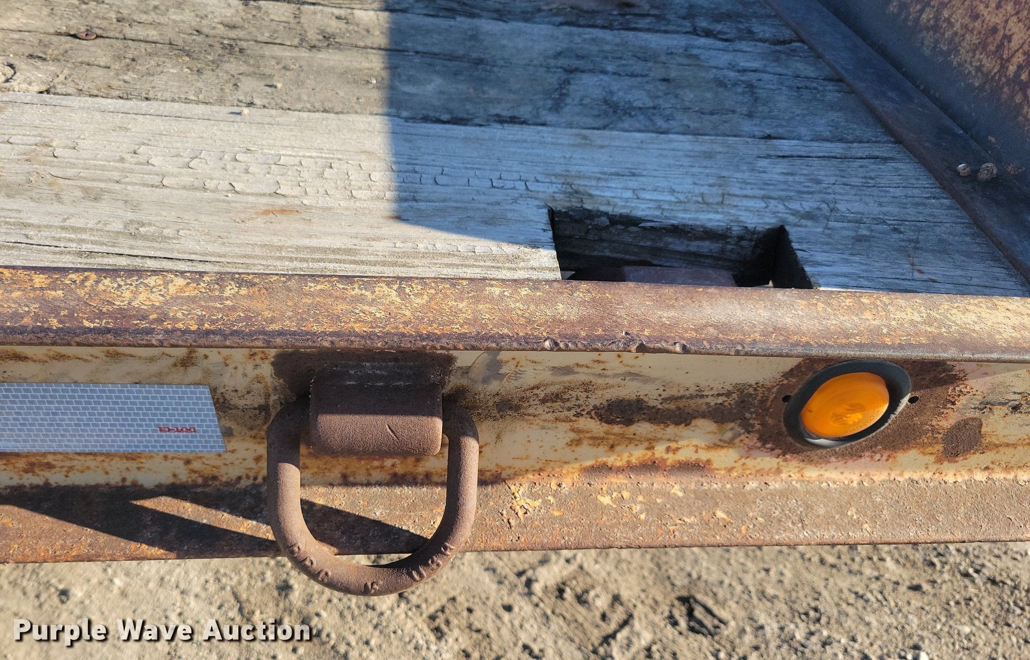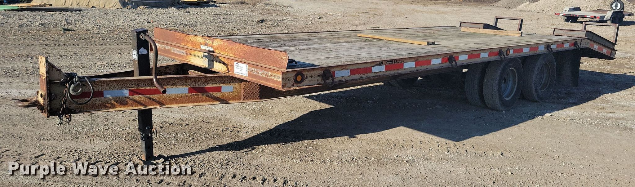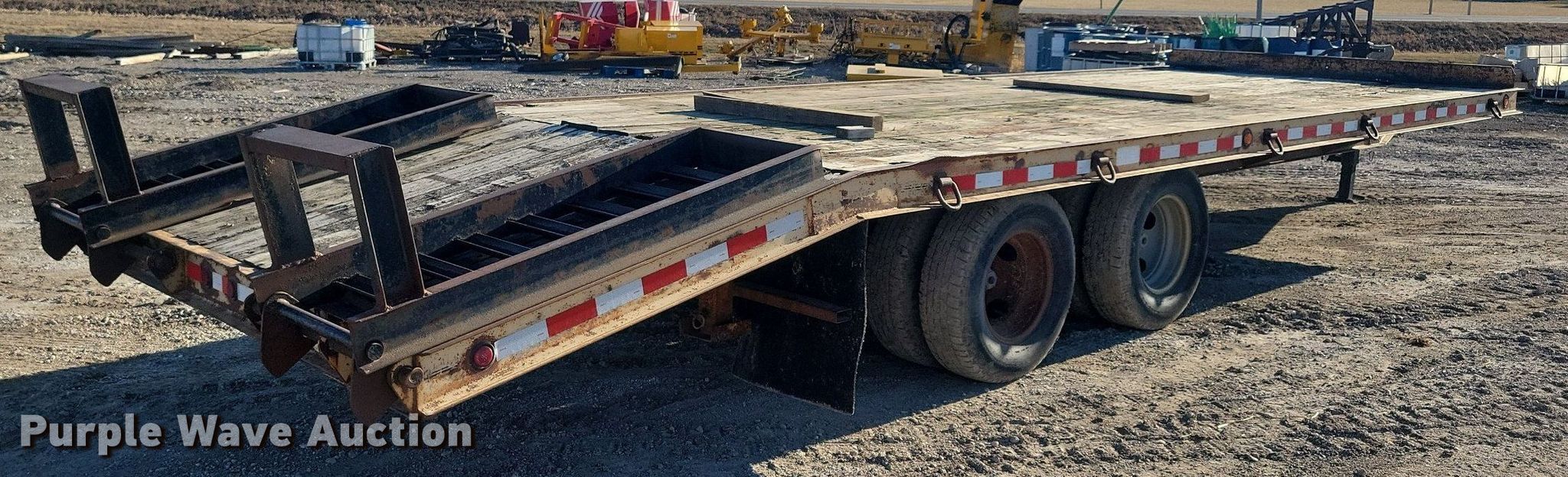 1984 Redi Haul equipment trailer. VIN: PF25211832667, Unit #: GTTL102. Dimensions Overall: 35' 3" L x 96" W, Deck: 25' L x 96" W, Deck height: 36", Tail length: 5', Ramps: Manual Length: 5'. Features Deck type: Wood. Chassis Hitch: Pintle, Landing gear: Single, Suspension: Spring, Brakes: Electric, Axles: Tandem. Tires Steel wheels, Size: ST235/80R16. Iowa title. Title distribution may be delayed up to 14 days from verification of funds. Absolute Group Company. 1201 W. 6th Ave. Slater, IA 50244