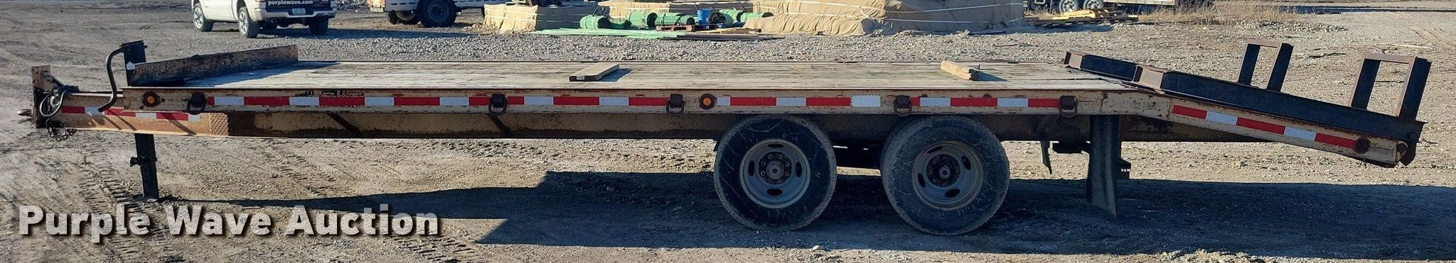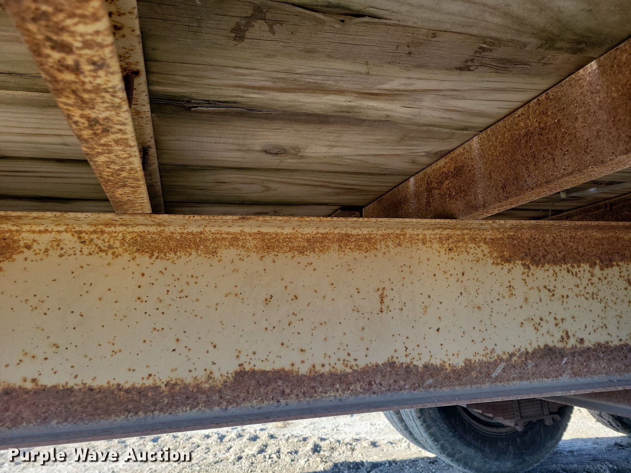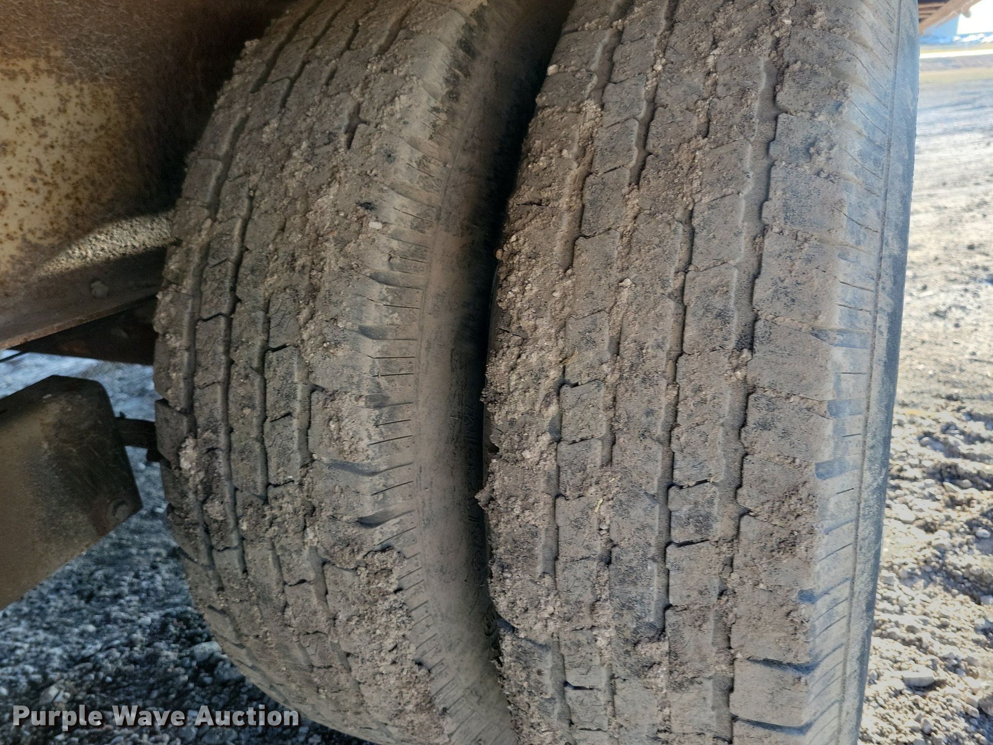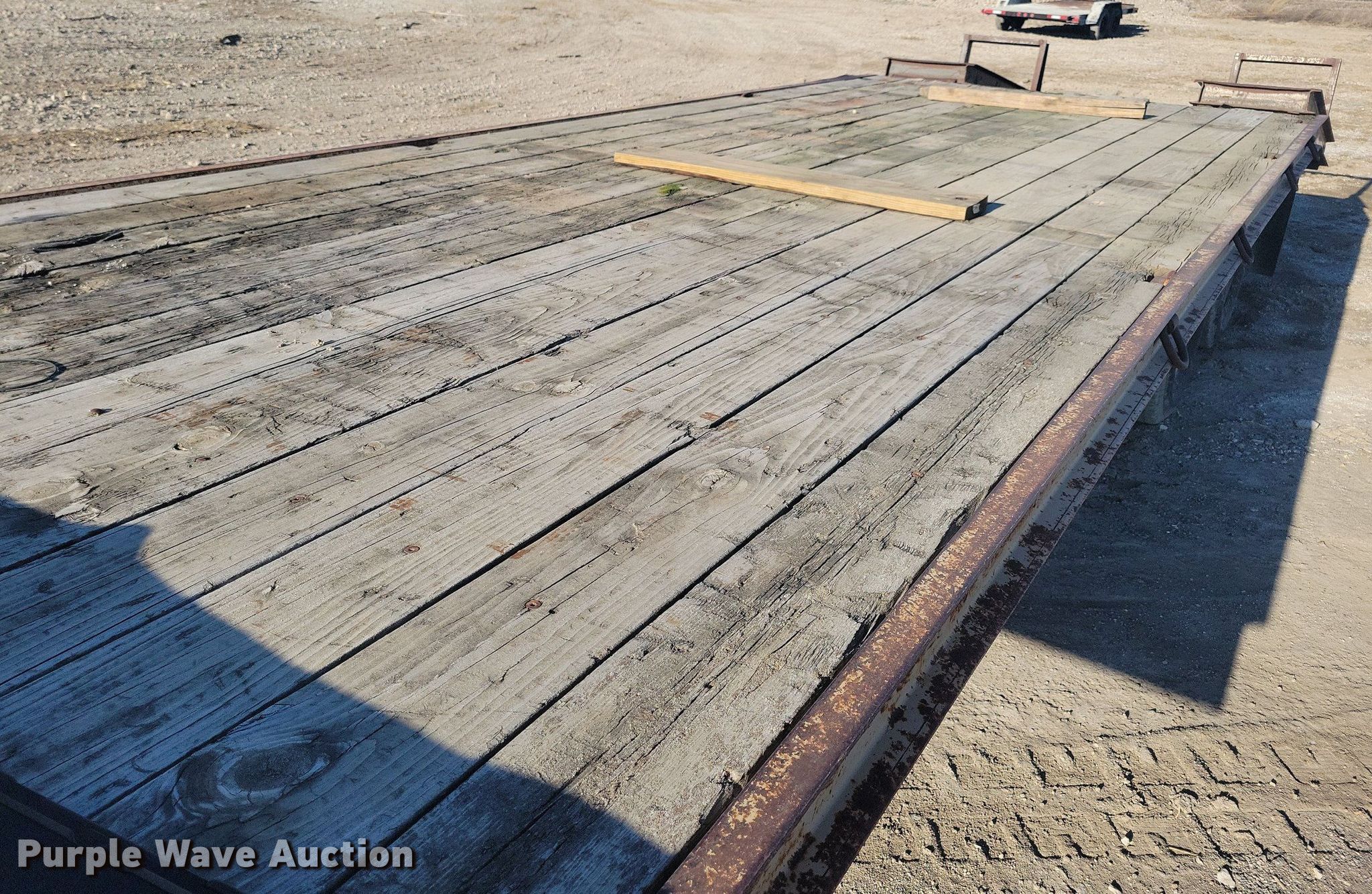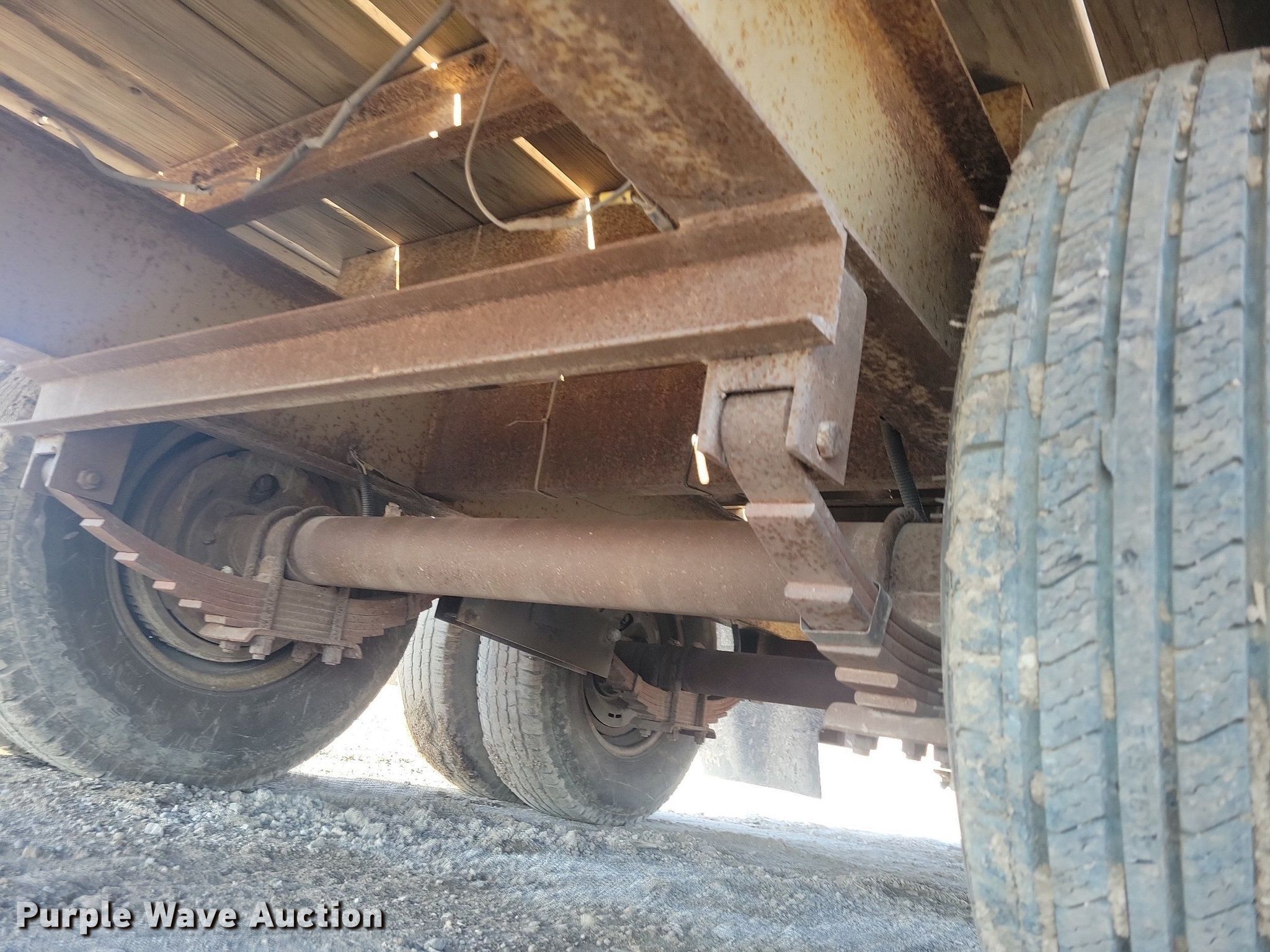 1984 Redi Haul equipment trailer. VIN: PF25211832667, Unit #: GTTL102. Dimensions Overall: 35' 3" L x 96" W, Deck: 25' L x 96" W, Deck height: 36", Tail length: 5', Ramps: Manual Length: 5'. Features Deck type: Wood. Chassis Hitch: Pintle, Landing gear: Single, Suspension: Spring, Brakes: Electric, Axles: Tandem. Tires Steel wheels, Size: ST235/80R16. Iowa title. Title distribution may be delayed up to 14 days from verification of funds. Absolute Group Company. 1201 W. 6th Ave. Slater, IA 50244