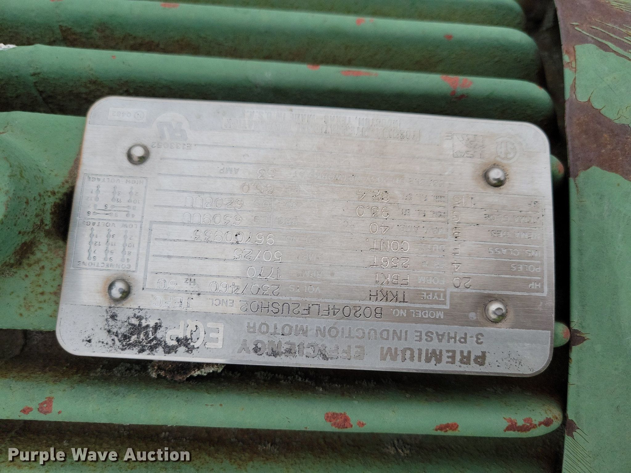 Purple Wave is selling a used Conveyor in Iowa. This item is a Kolberg conveyor with the following: EQP B0204FLF2USH02, HP: 20, Volts: 230/460, Phase: Three