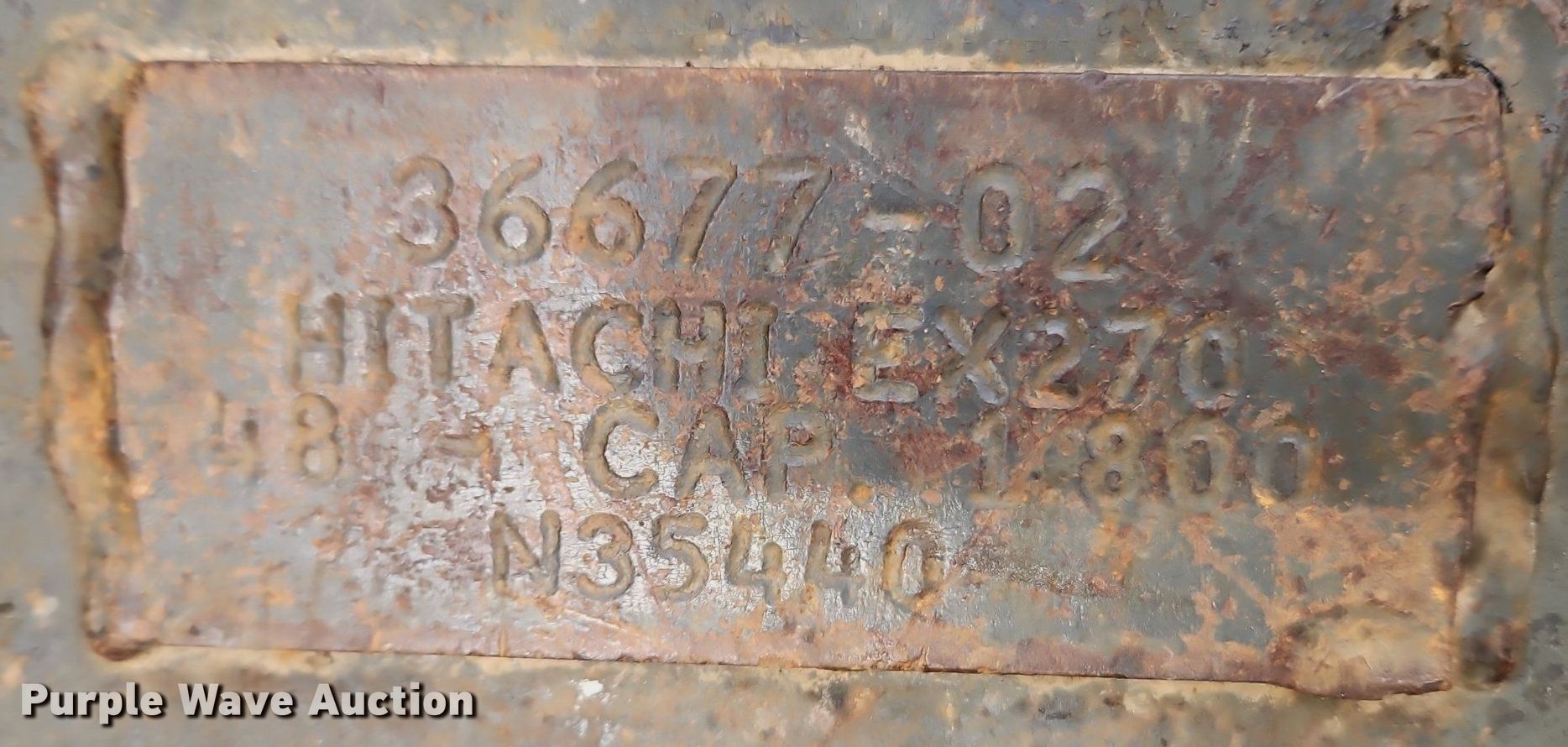 2006 Hitachi ZX270LC-3 excavator. Hours: 8,336 on meter, Serial: FF01V4Q030335. Engine Isuzu AH-4HK1X, Displacement: 5,193 cc, Cylinders: 4, Fuel type: Diesel. Transmission Hydrostatic, Two speed travel. Operators station Enclosed cab, AC, Heat. Features Auxiliary hydraulics Two-way, Counter weights, Removable, Boom Standard, Stick Stick length: 12' 4", Quick coupler: Hydraulic CF, Thumb: Hydraulic TAG, Bucket TAG EX270, Capacity: 1.8 cu.yd., Width: 48", Teeth: 6. Tracks Width: 31.5", Steel, Grouser pads: Triple. Notes Warning indicator: Check engine. Max Rieke & Brothers Inc.. 15400 Midland Dr. Shawnee, KS 66217