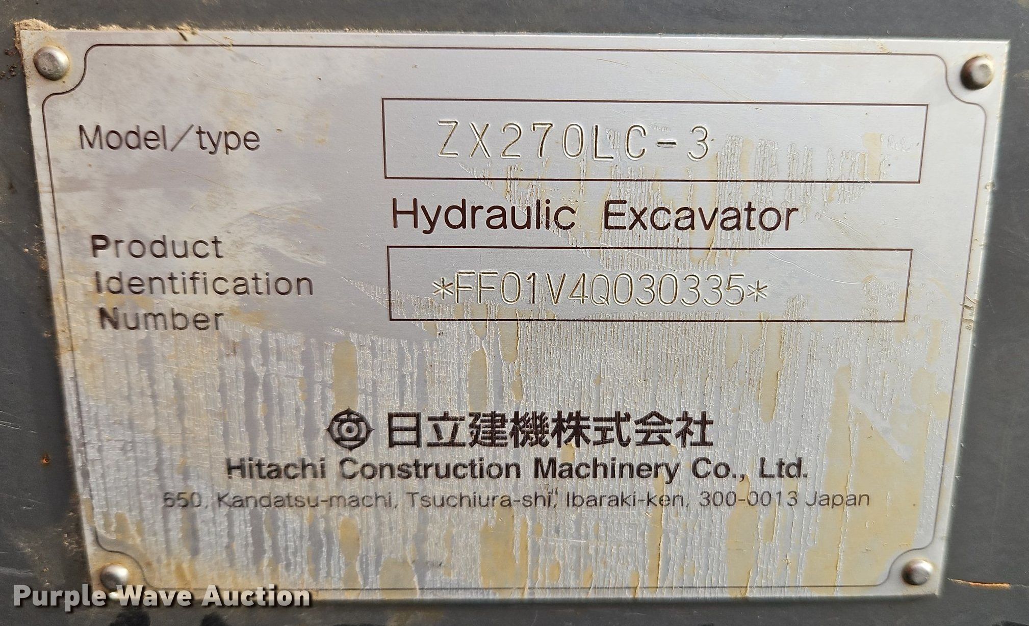 Purple Wave is selling a used Hydraulic Excavator in Kansas. This item is a 2006 Hitachi ZX270LC-3 excavator with the following: Hours: 8,336 on meter, Serial: FF01V4Q030335