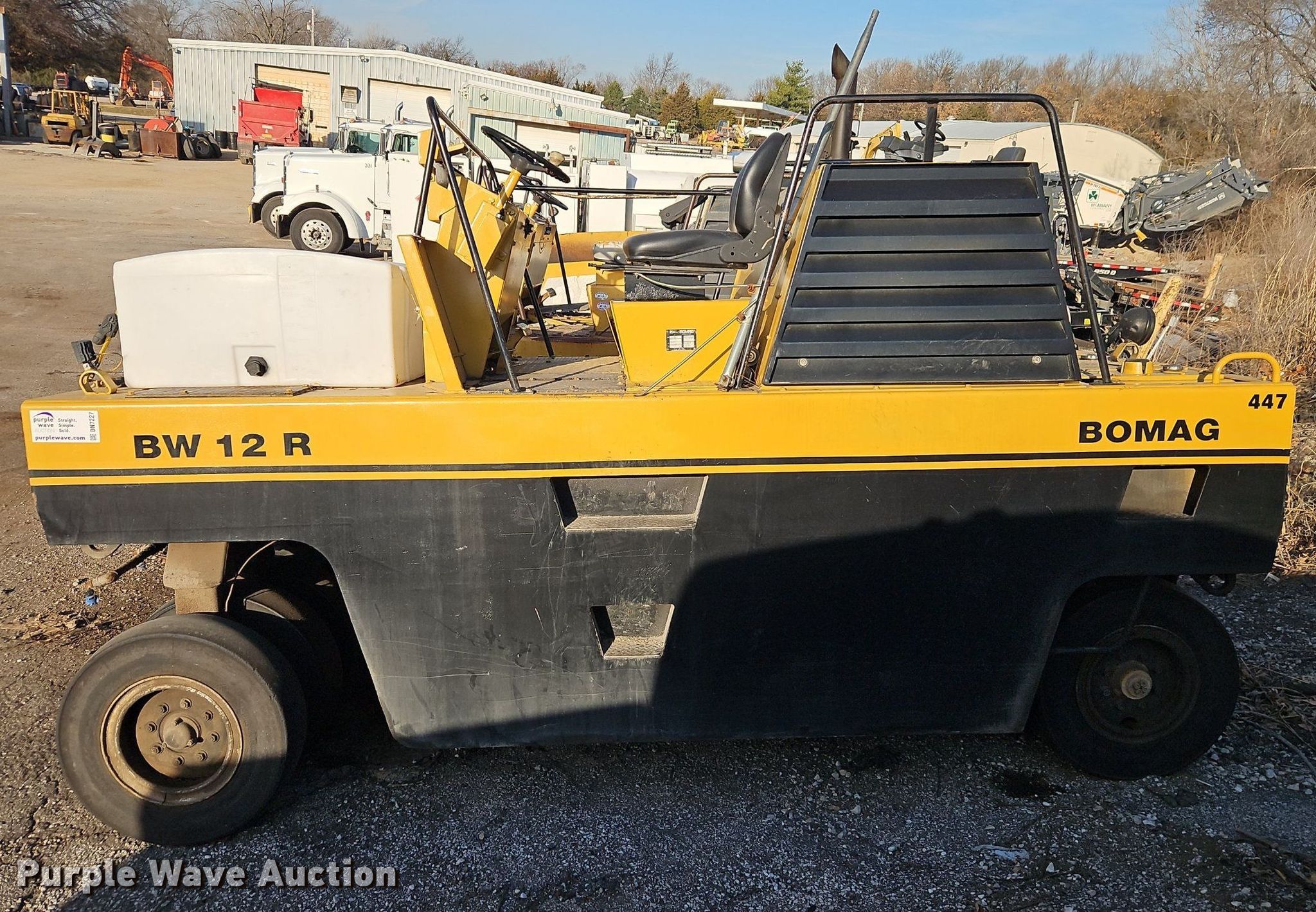Purple Wave is selling a used Pneumatic Roller in Kansas. This item is a 1988 Bomag BW12R pneumatic roller with the following: Hours: 12,970 on meter, Serial: 106610020159, Unit #: 447