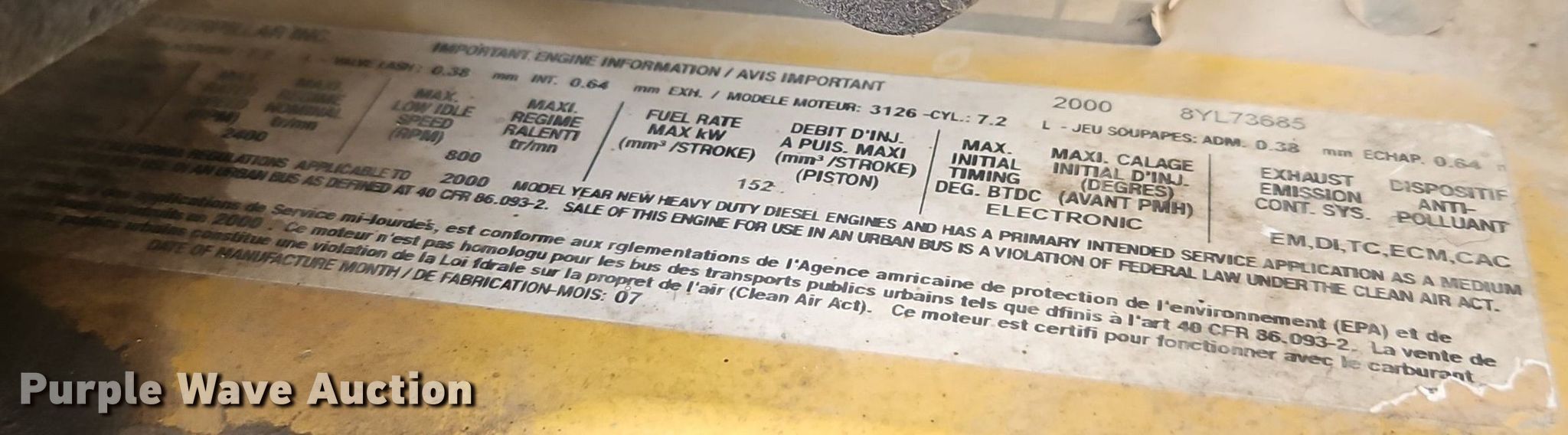 2000 Ford F650 Super Duty XL truck cab and chassis. Miles: 134,956 on odometer, VIN: 3FDWF65H9YMA76850. Engine Caterpillar 3126, Displacement: 7.2L, Cylinders: 6, Fuel type: Diesel. Transmission Manual, Speed: 6. Chassis Axles: Single, Suspension: Spring, Brakes: Air, Truck chassis: 16', GVWR: 26,000 lbs FAWR: 8,500 lbs, RAWR: 17,500 lbs, Wheelbase: 230". Interior AC, Heat. Features Fuel tank: Dual. Tires Size: 11R22.5. Notes Dash warning indicator: ABS, Windshield chipped or cracked. Kansas title. Title distribution may be delayed up to 14 days from verification of funds. McAnany Construction Inc.. 15320 Midland Drive. Shawnee, KS 66217