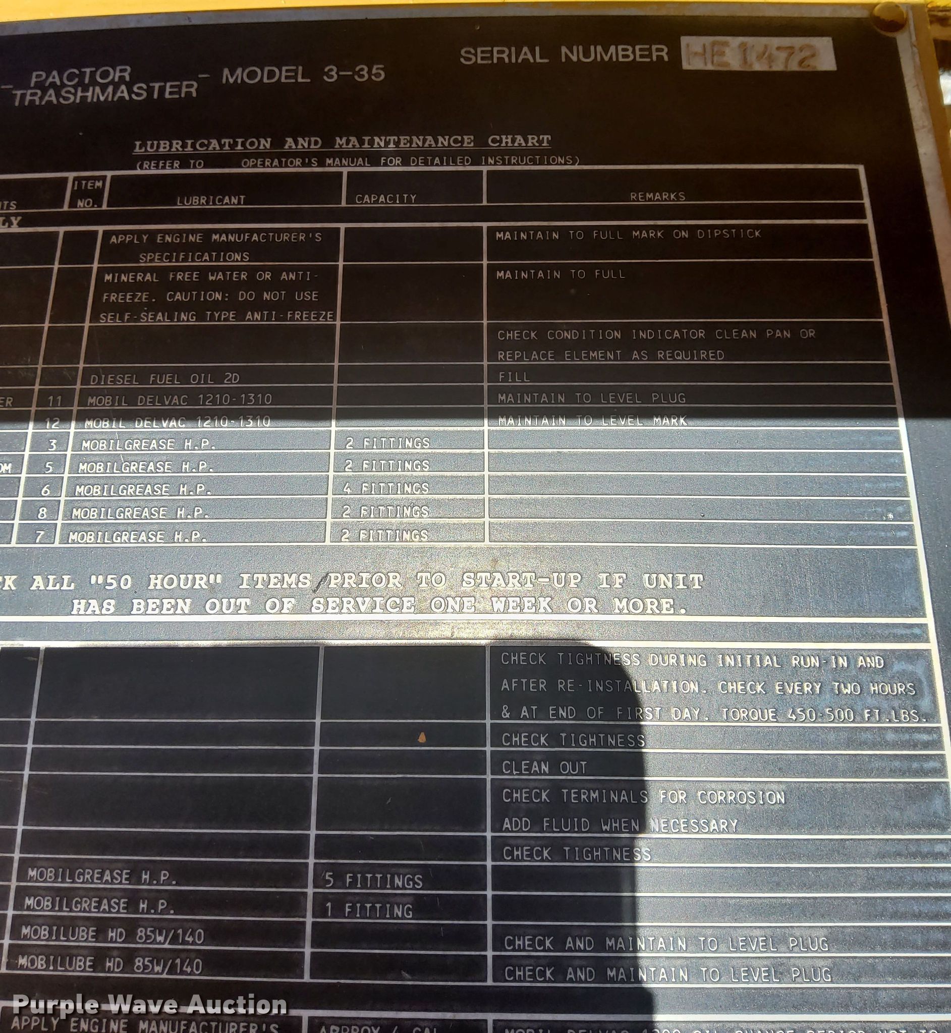 Purple Wave is selling a used Soil or Landfill Compactor in Colorado. This item is a 1998 Rex 3-35 Pactor soil compactor with the following: Hours: 6,111 on meter, Serial: HE1472, Unit #: 24-102