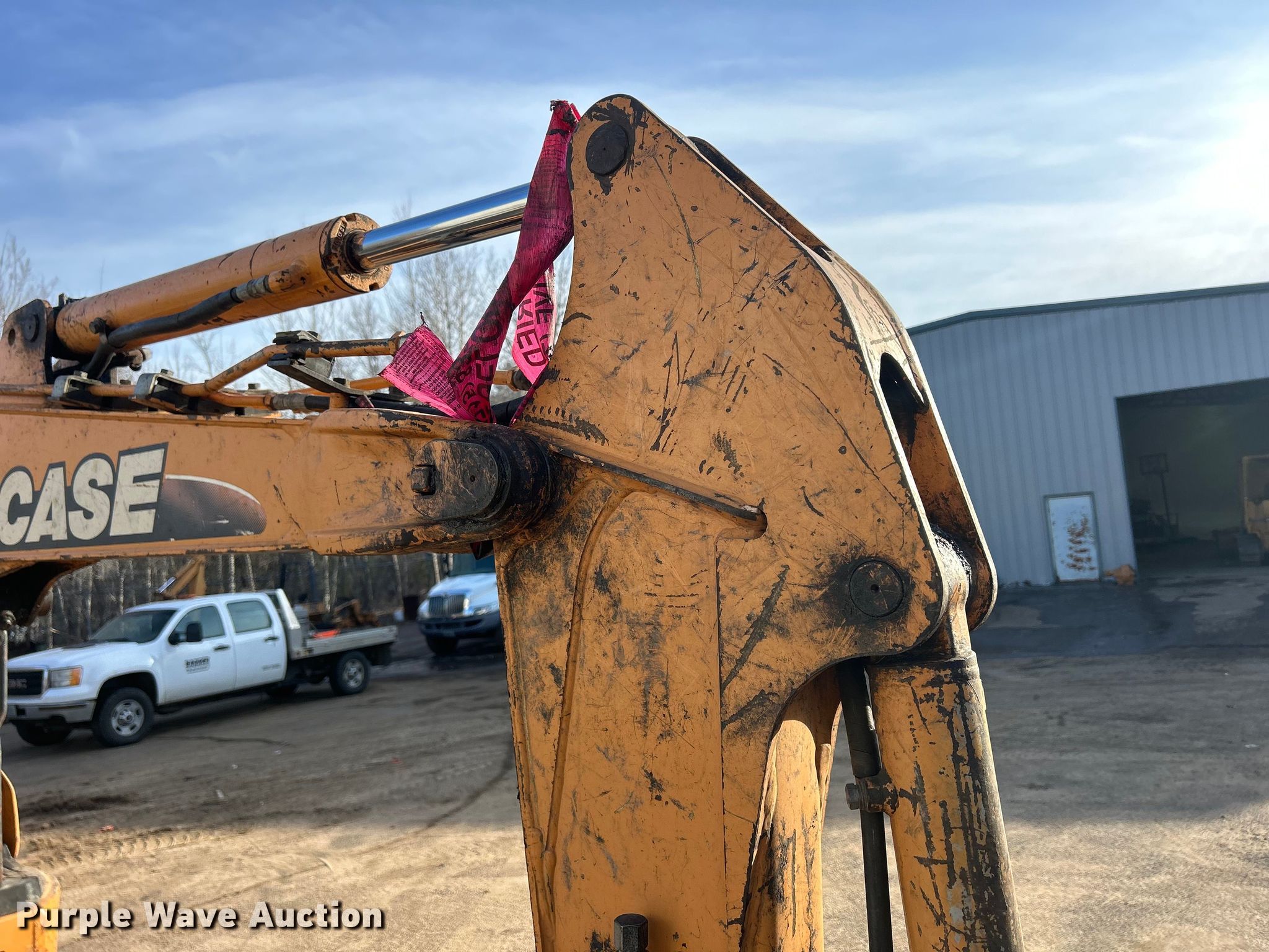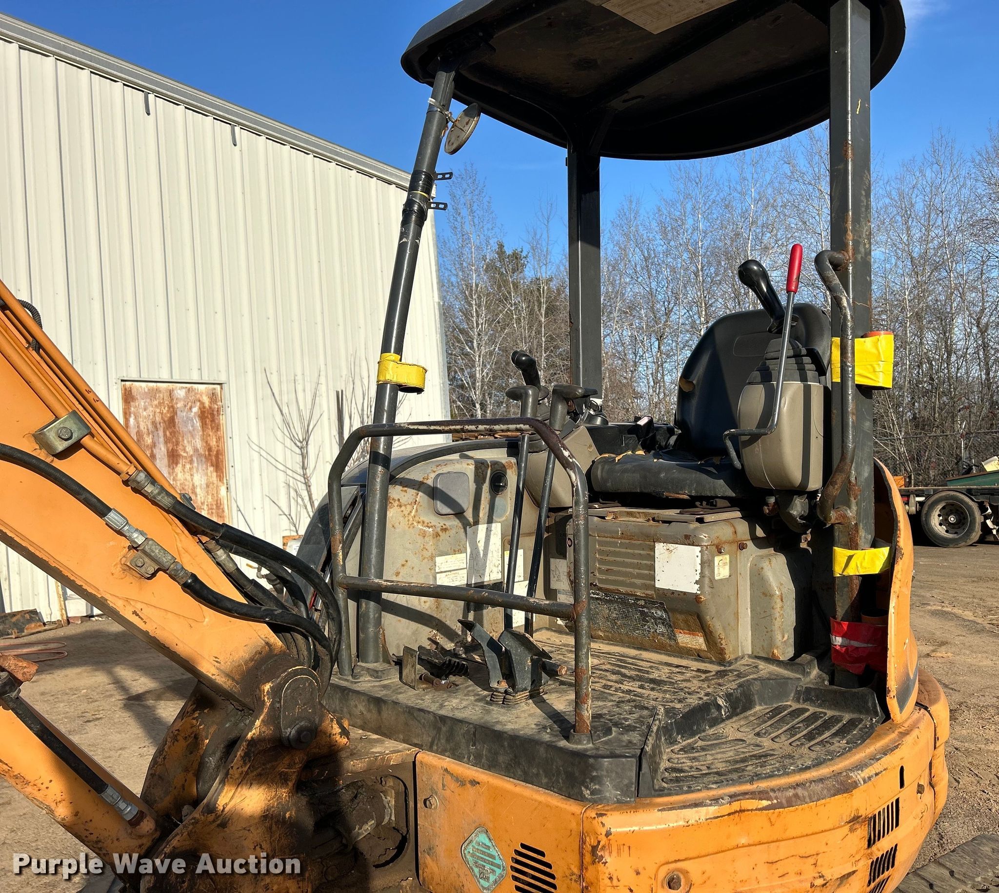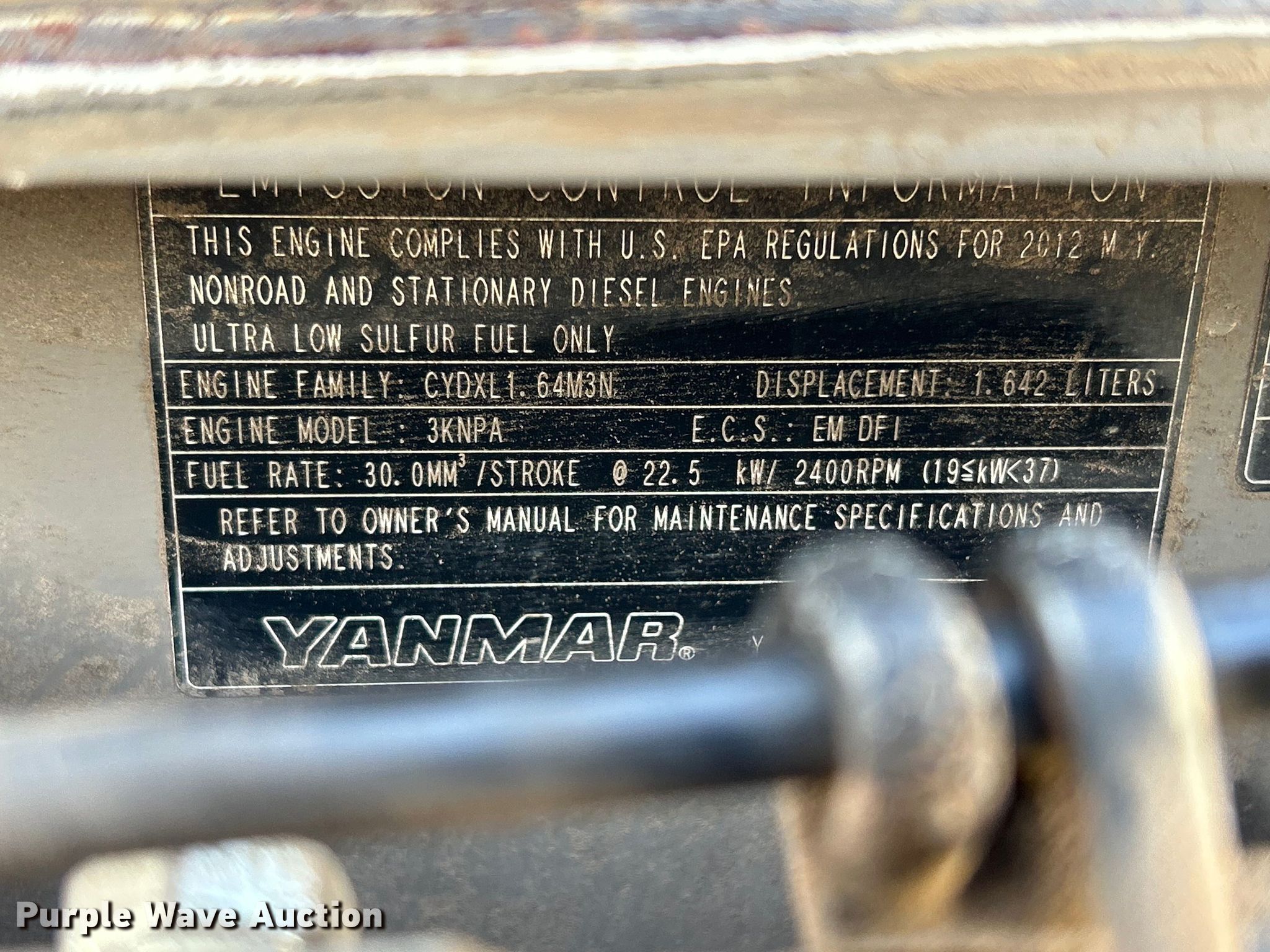 2012 Case CX36B mini excavator. Hours: 5,590 on meter, Serial: NCTN63448. Engine Yanmar, Displacement: 1.642L, Cylinders: 3, Fuel type: Diesel, kW: 22.5. Transmission Hydrostatic. Operators station OROPS. Features Auxiliary hydraulics, Counter weights, Removable, Backfill blade Width: 67", Boom Swing, Stick Stick length: 52", Bucket Width: 18", Teeth: 4. Tracks Width: 12", Rubber. Notes Auxiliary hydraulics hose missing. Badger Underground Services LLC. 13797 County Highway S. Jim Falls, WI 54748