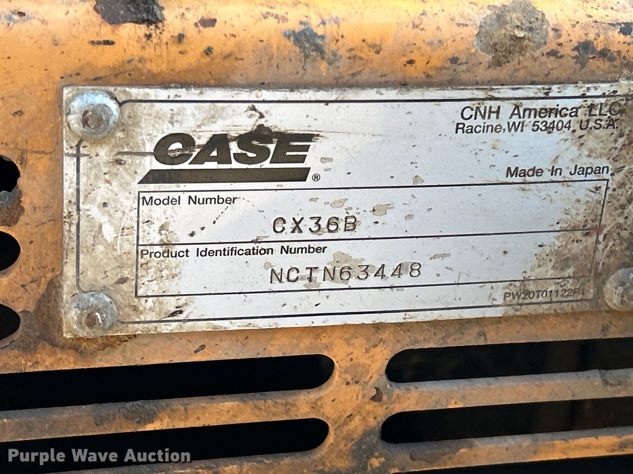 Purple Wave is selling a used Mini Excavator in Wisconsin. This item is a 2012 Case CX36B mini excavator with the following: Hours: 5,590 on meter, Serial: NCTN63448