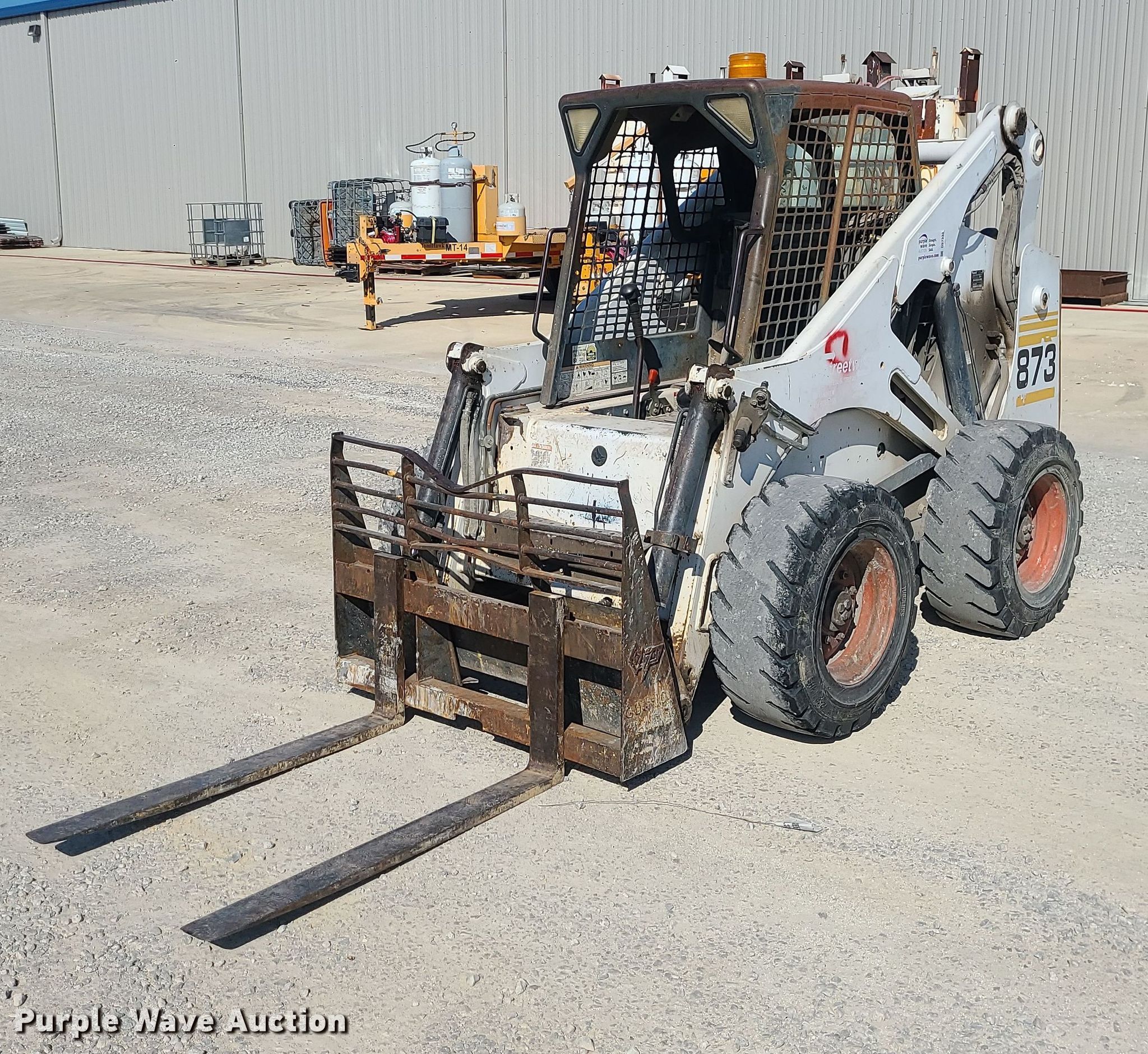 Purple Wave is selling a used Skid Steer Loader in Missouri. This item is a 2000 Bobcat 873 skid steer loader with the following: Hours: 5,202 on meter, Serial: 514142932