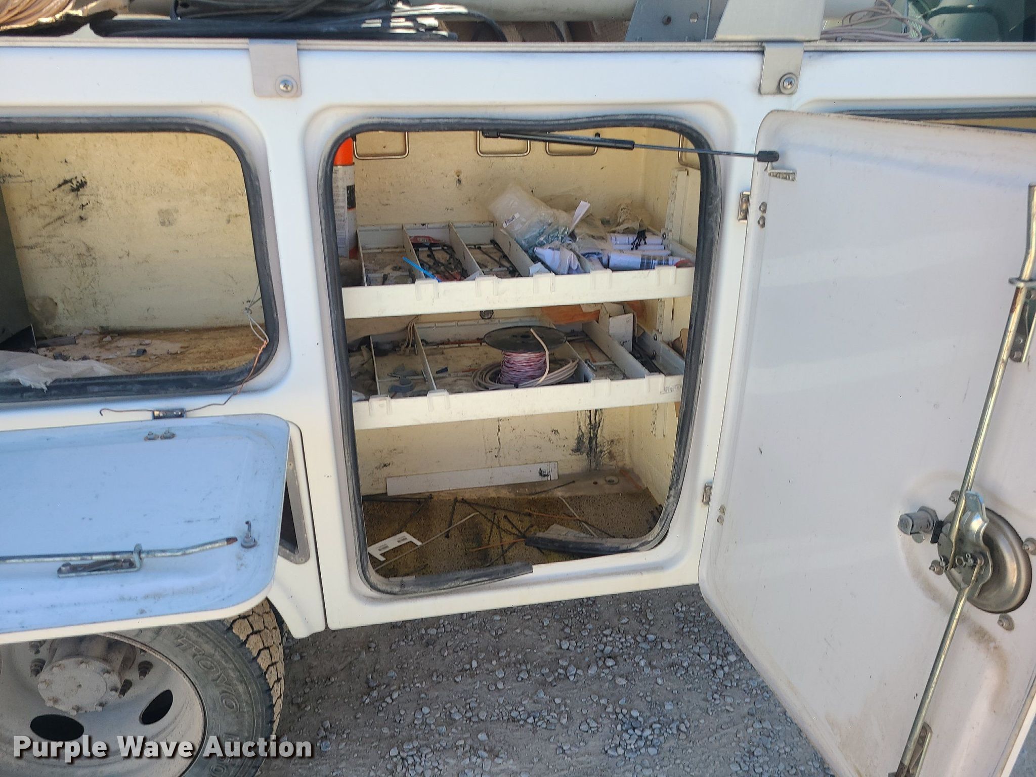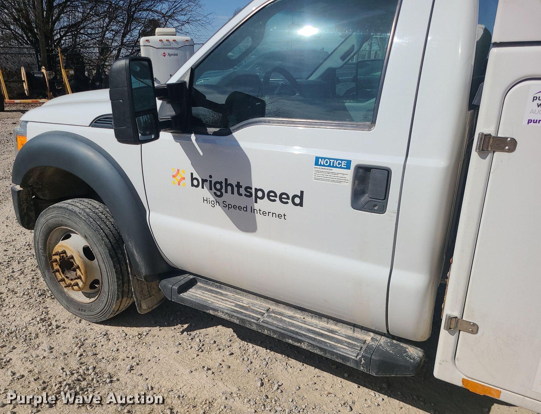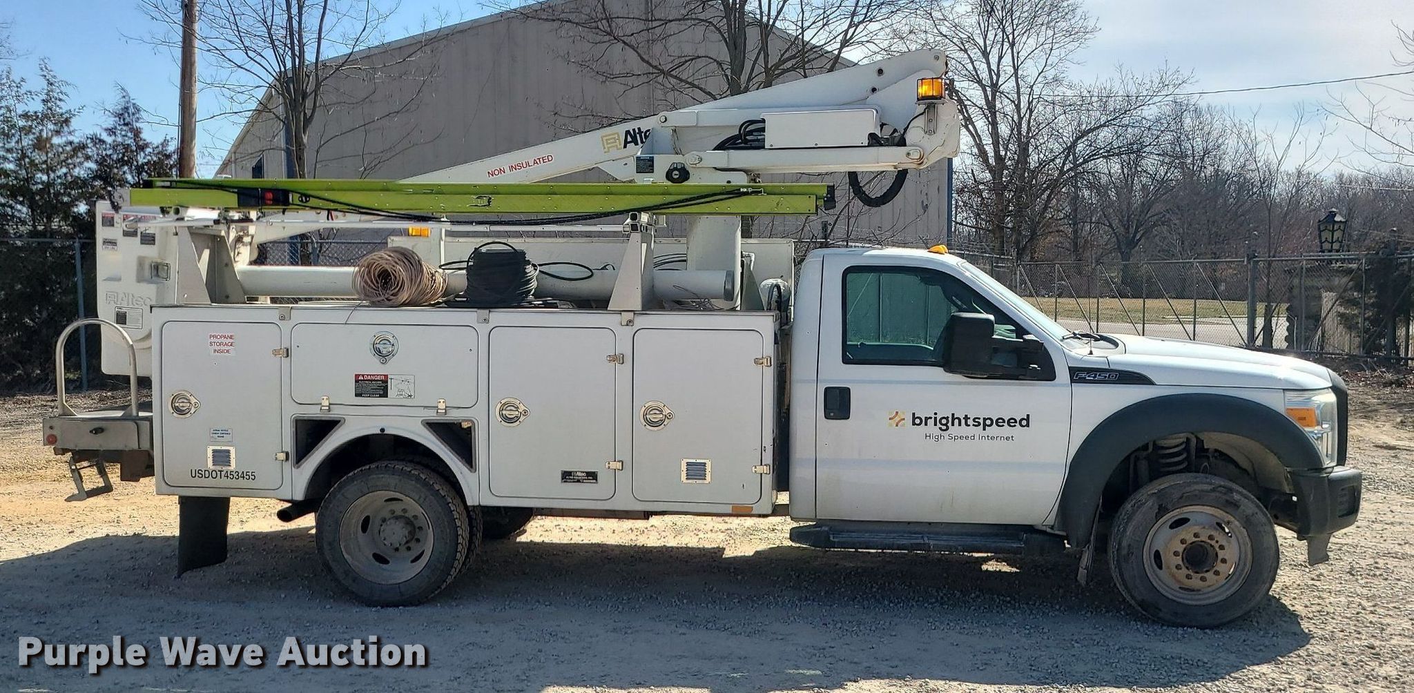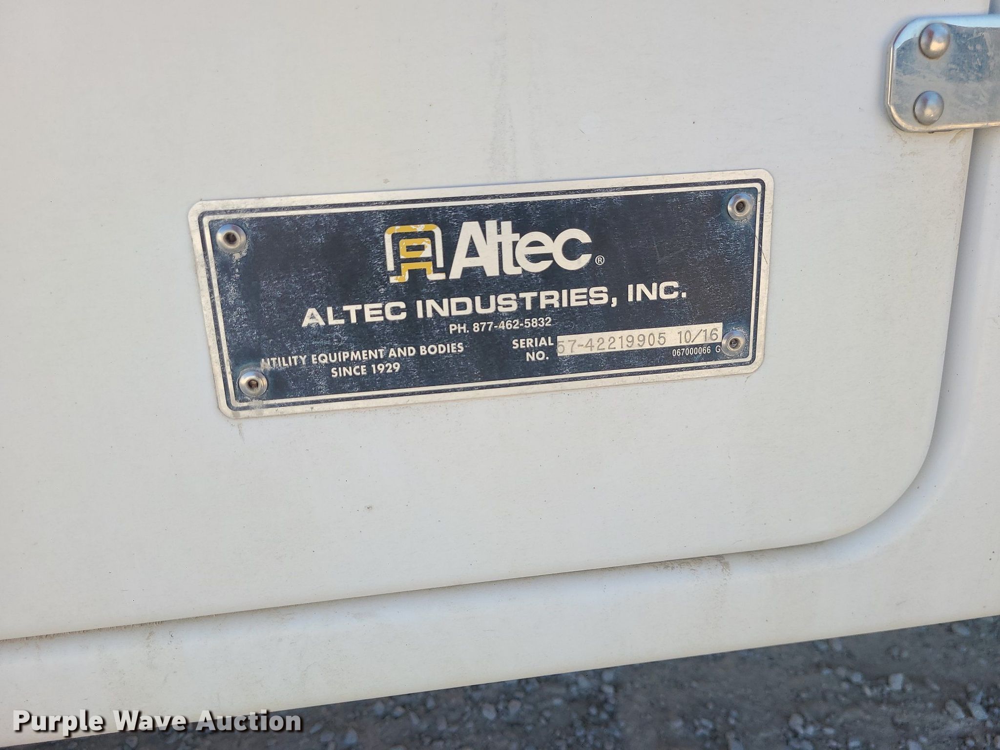 2016 Ford F450 Super Duty XL bucket truck. Miles: 290,656 on odometer, VIN: 1FDUF4GY5GEC03994. Engine Displacement: 6.8L, Cylinders: 10, Fuel type: Gas. Transmission Automatic. Chassis Axles: Single, Suspension: Spring, Brakes: Hydraulic, GVWR: 16,500 lbs, Wheelbase: 165". Interior AC, heat. Features Bed Altec, 11' L x 96" W, Boom Altec, Serial: 10163X9164, Maximum lift capacity: 350 lbs, Boom type: Telescopic, Man basket, Boom controls Ground, Platform/ basket.. Tires Size: 225/70R19.5. Notes Dash warning indicator: Check engine, Airbag, Contents on bed including ladders not included, Decals will be removed prior to auction, Engine issues, ticks, Brake issues, possible power booster needs replaced. Kansas title. Title distribution may be delayed up to 14 days from verification of funds. Brightspeed. 508 West Young Street. Warrensburg, MO 64093