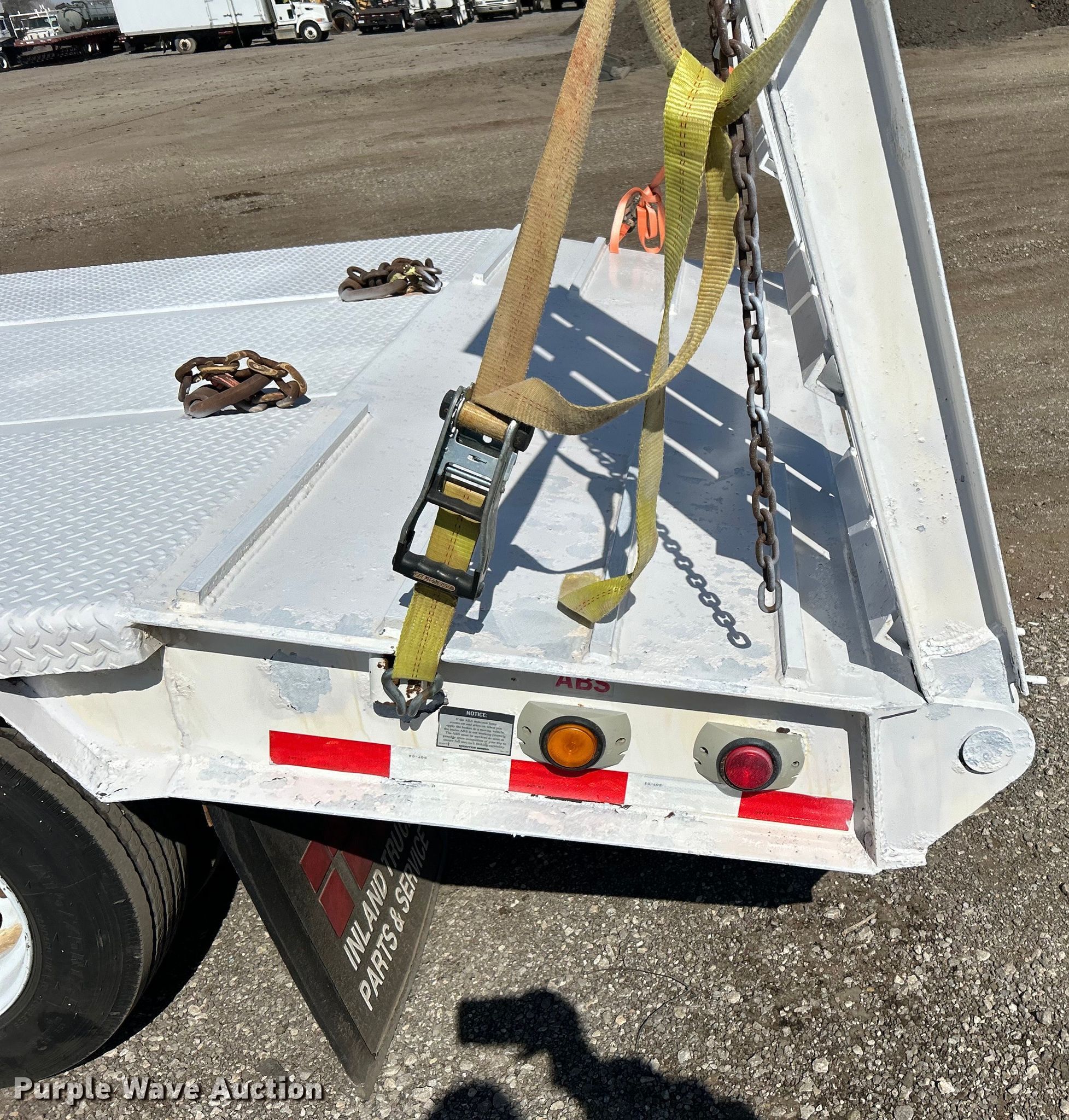 2014 Holden HLB25 drop deck equipment trailer. VIN: 12HLB3724EN253117. Dimensions Overall: 38' L x 96" W, Deck: 25' L x 90" W, Tail length: 3', Ramps: Manual Length: 5'. Features Deck type: Wood, Toolbox. Chassis Landing gear: Dual, Suspension: Spring, Brakes: Air, Axles: Tandem, GVWR: 62,600 lbs. Tires Steel wheels, Size: 215/75R17.5. Oklahoma title. Title distribution may be delayed up to 14 days from verification of funds. 15107 North 137th East Avenue. Collinsville, OK 74021