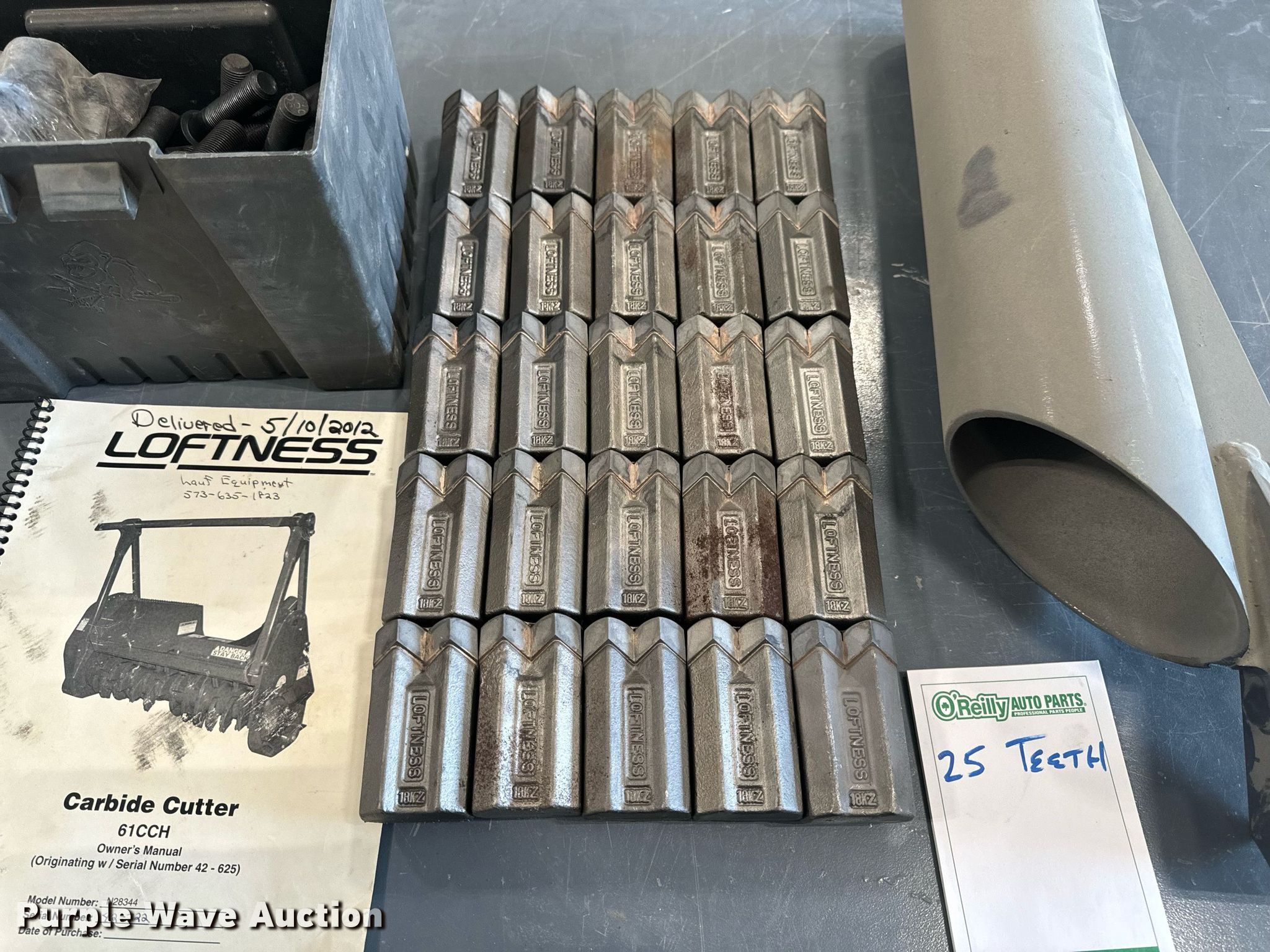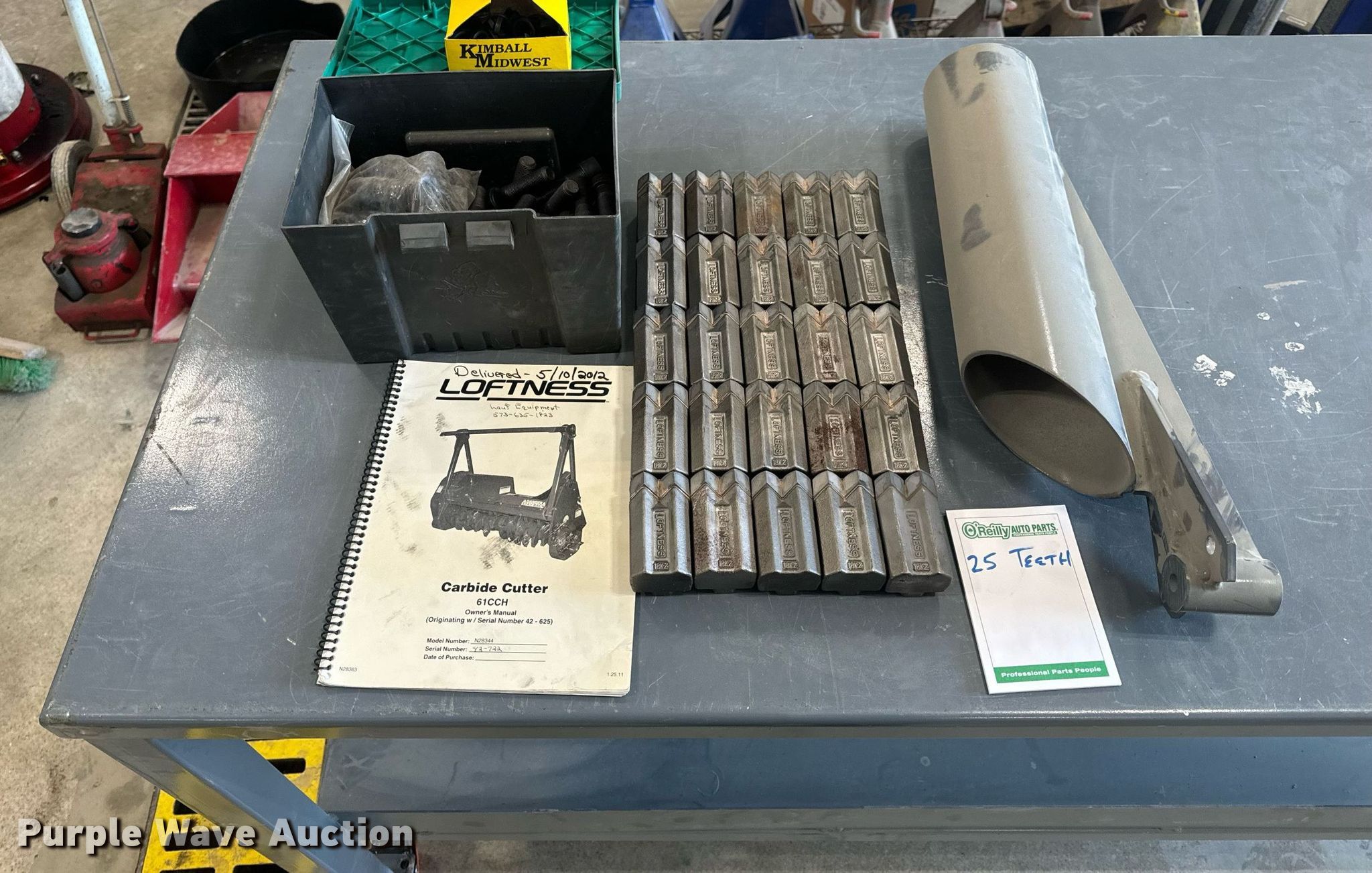 Purple Wave is selling a used Skid Steer Attach. in Missouri. This item is a Loftness N28344 skid steer mulcher with the following: Serial: 42722, Width: 66", (25) unused carbide teeth, Additional hydraulic hose