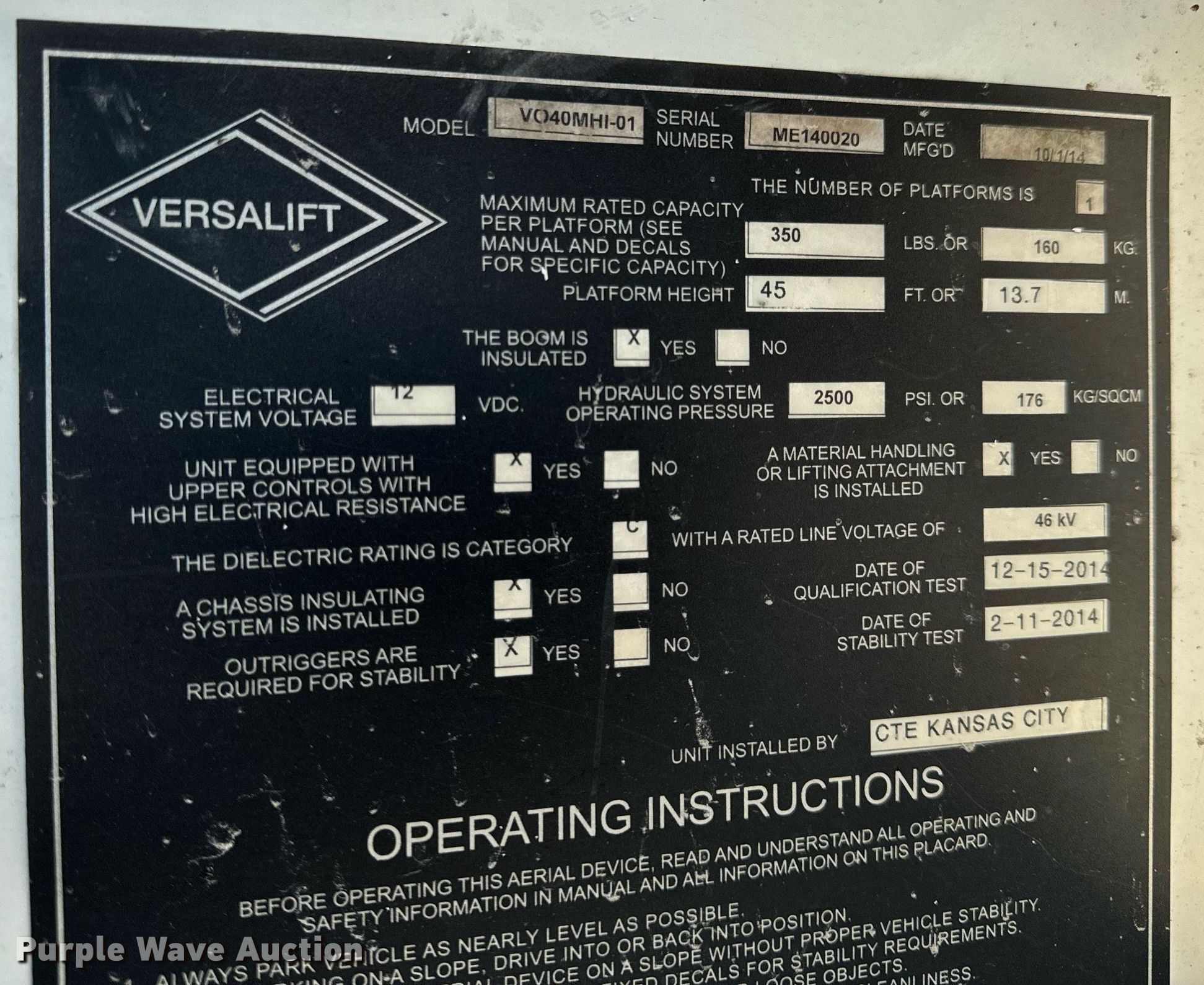 - 2014 Versalift V040MHI-01
