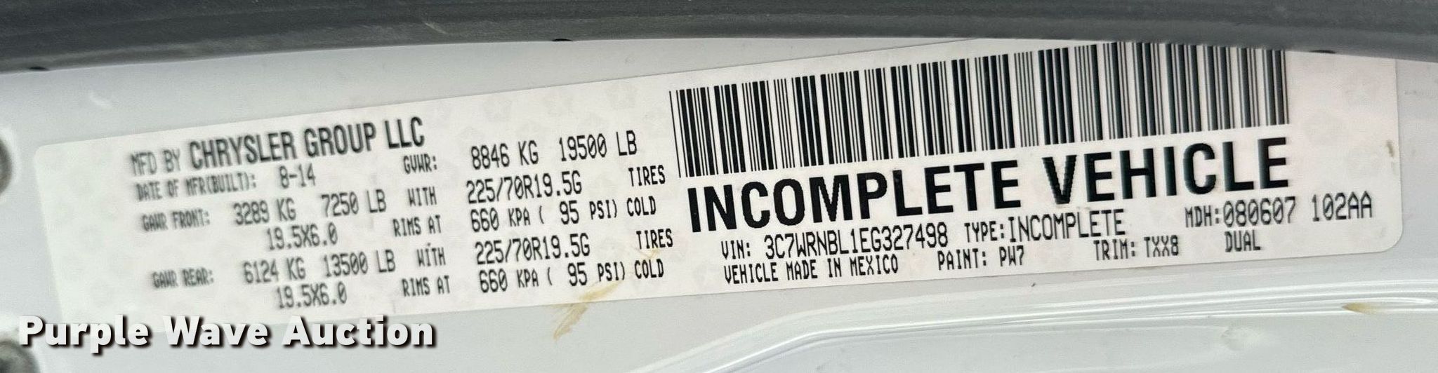 - VIN: 3C7WRNBL1EG327498