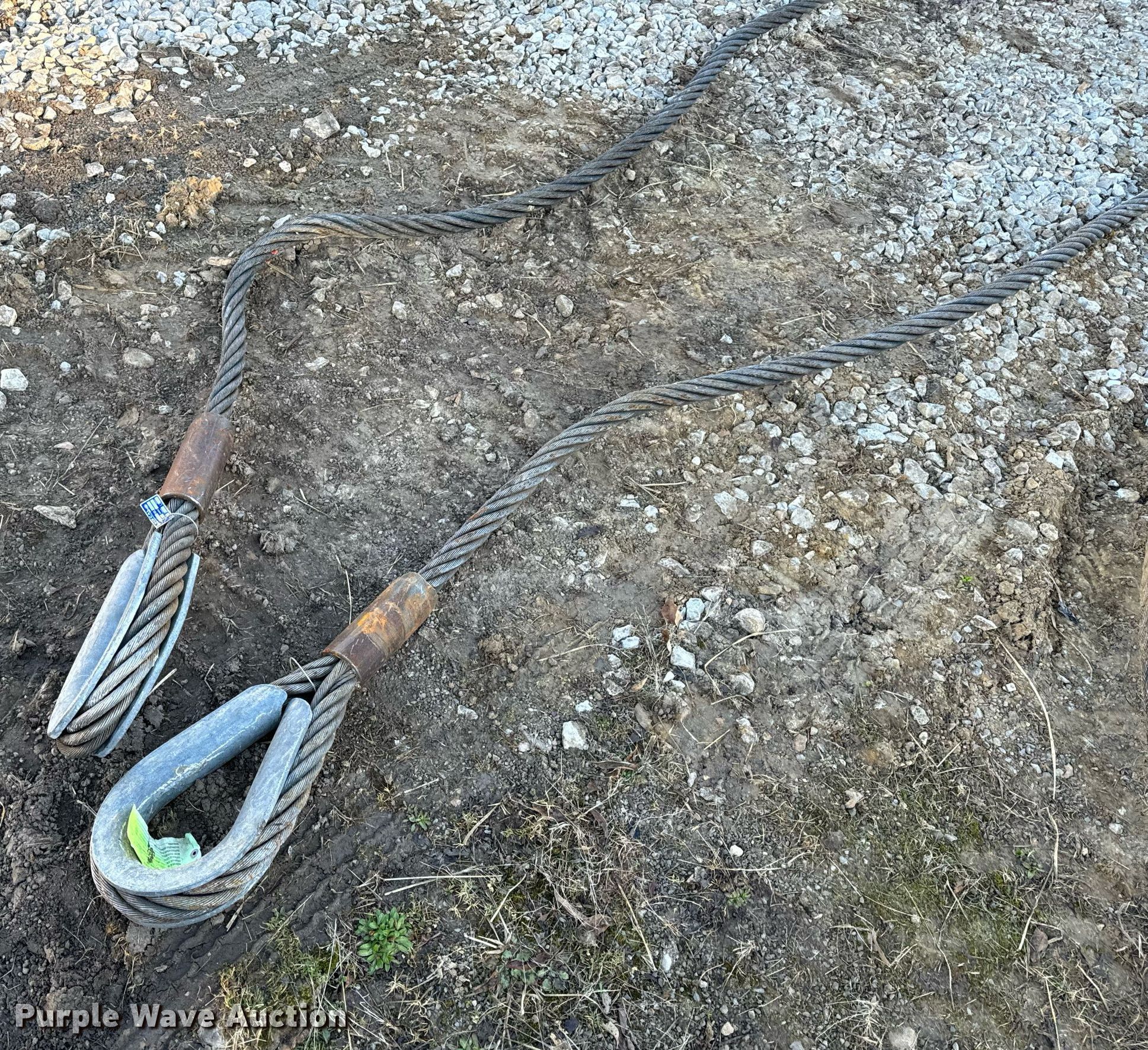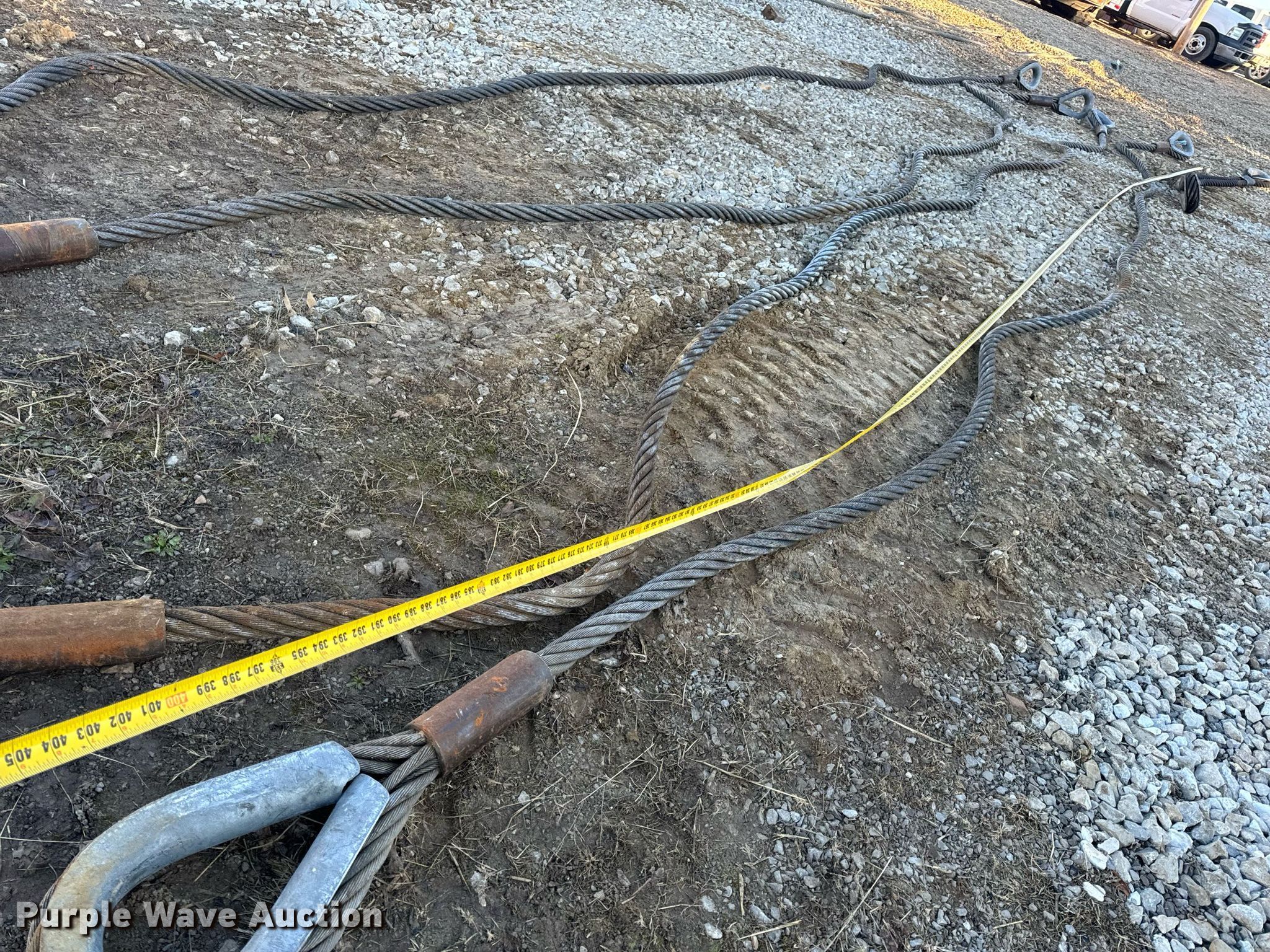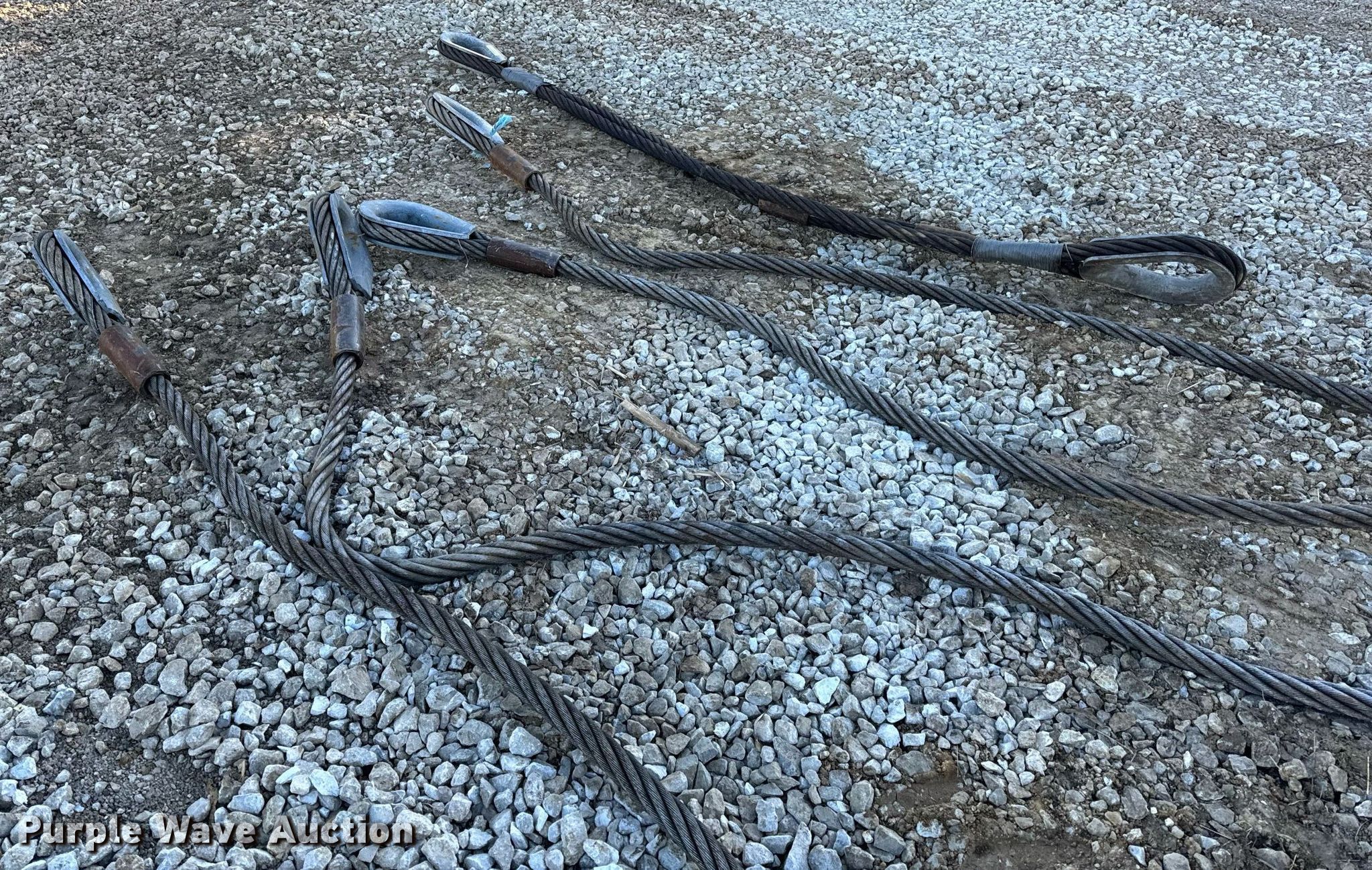 Purple Wave is selling a used Lifting and Rigging in Missouri. This item is a (5) lifting cables with the following: (4) approx. 34' L, Approx. 12' L