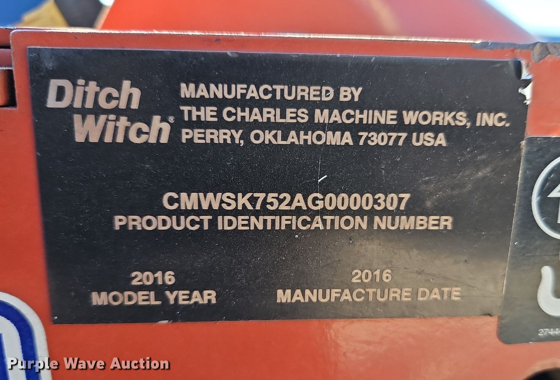 Purple Wave is selling a used Compact Utility Loader in Kansas. This item is a 2016 Ditch Witch SK752 compact utility loader with the following: Hours: 3,033 on meter, Serial: CMWSK752AG0000307