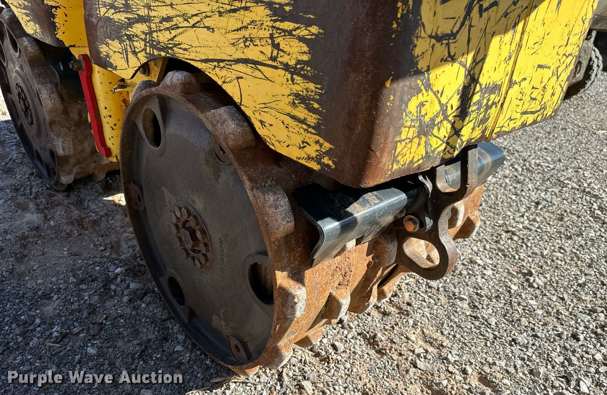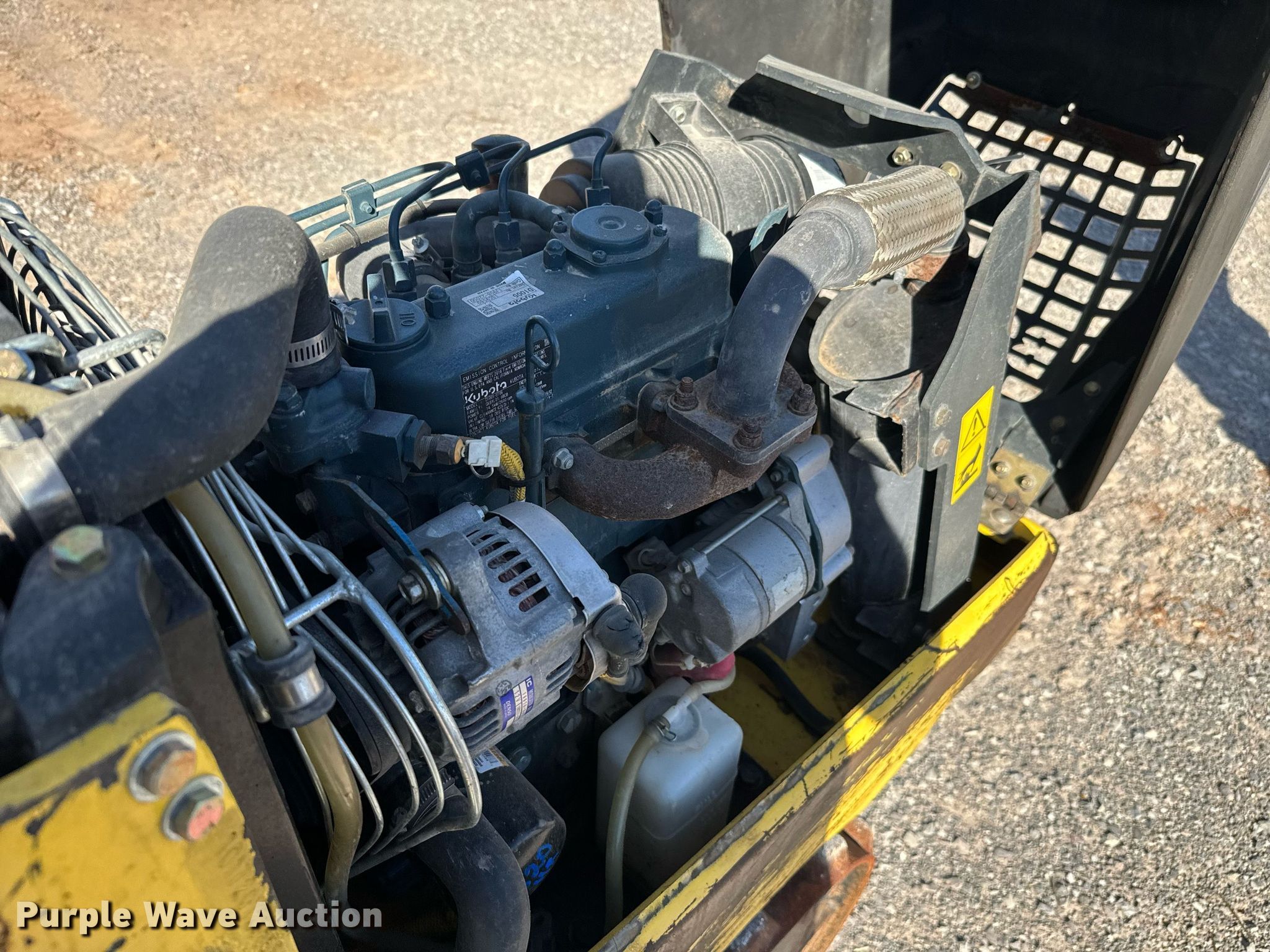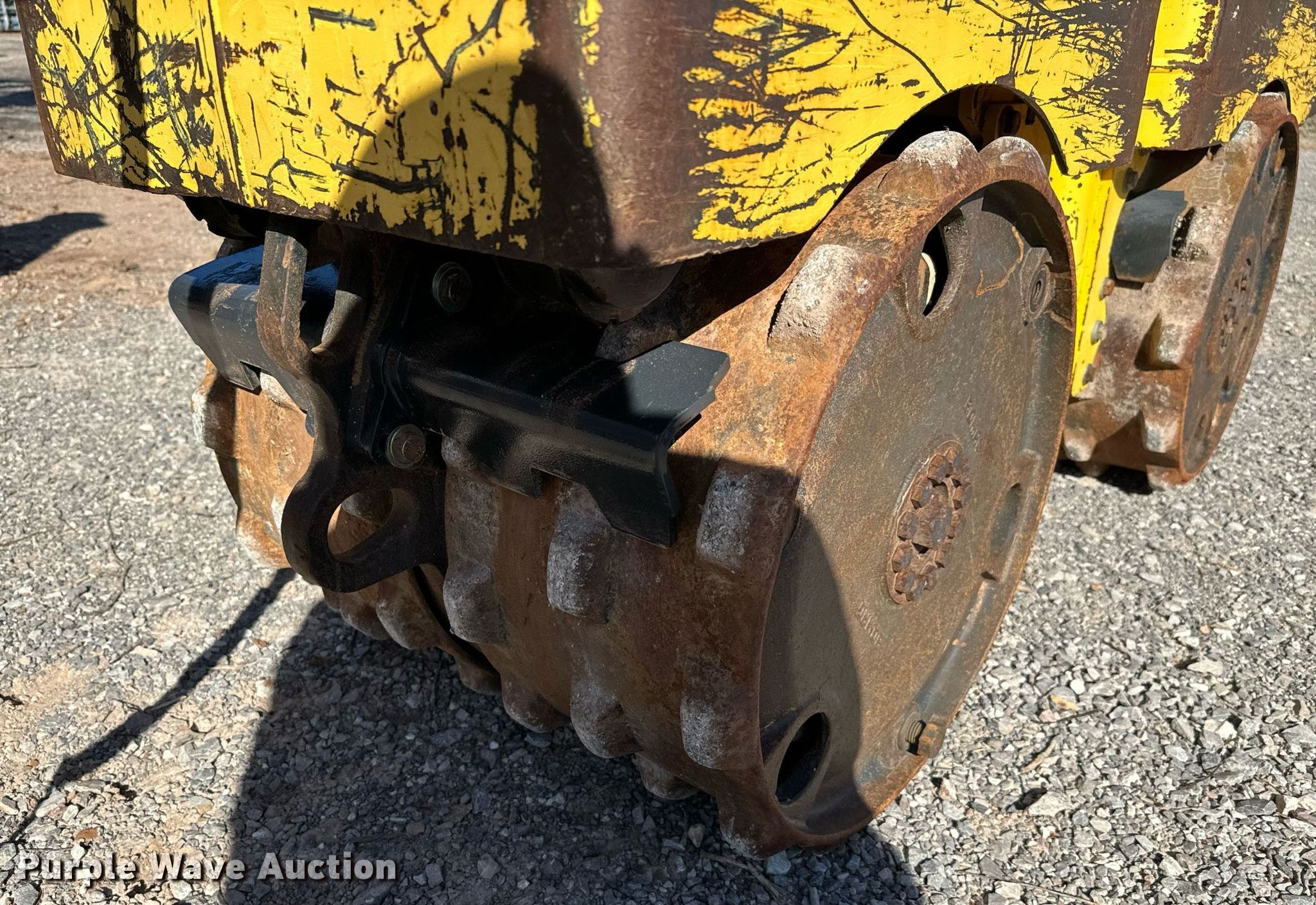 Bomag BMP8500 trench compactor. Hours: 822 on meter. Engine Kubota D1005-EF06, Serial: GKBXL01.0BCB, Displacement: 1.0L, Cylinders: 3, Fuel type: Diesel. Transmission Hydrostatic, Two speed travel. Features Drum: Padfoot Width: 24", Diameter: 20", Drum scrapers: Front, Rear, Remote control. Marlow, OK 73055