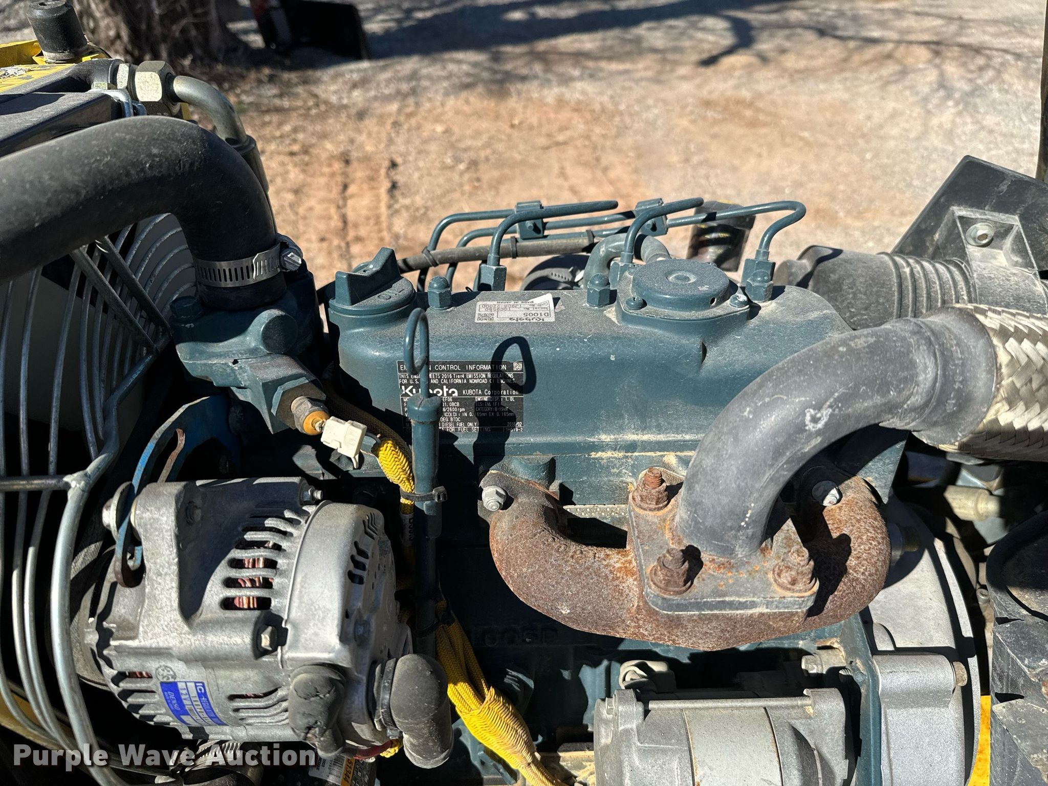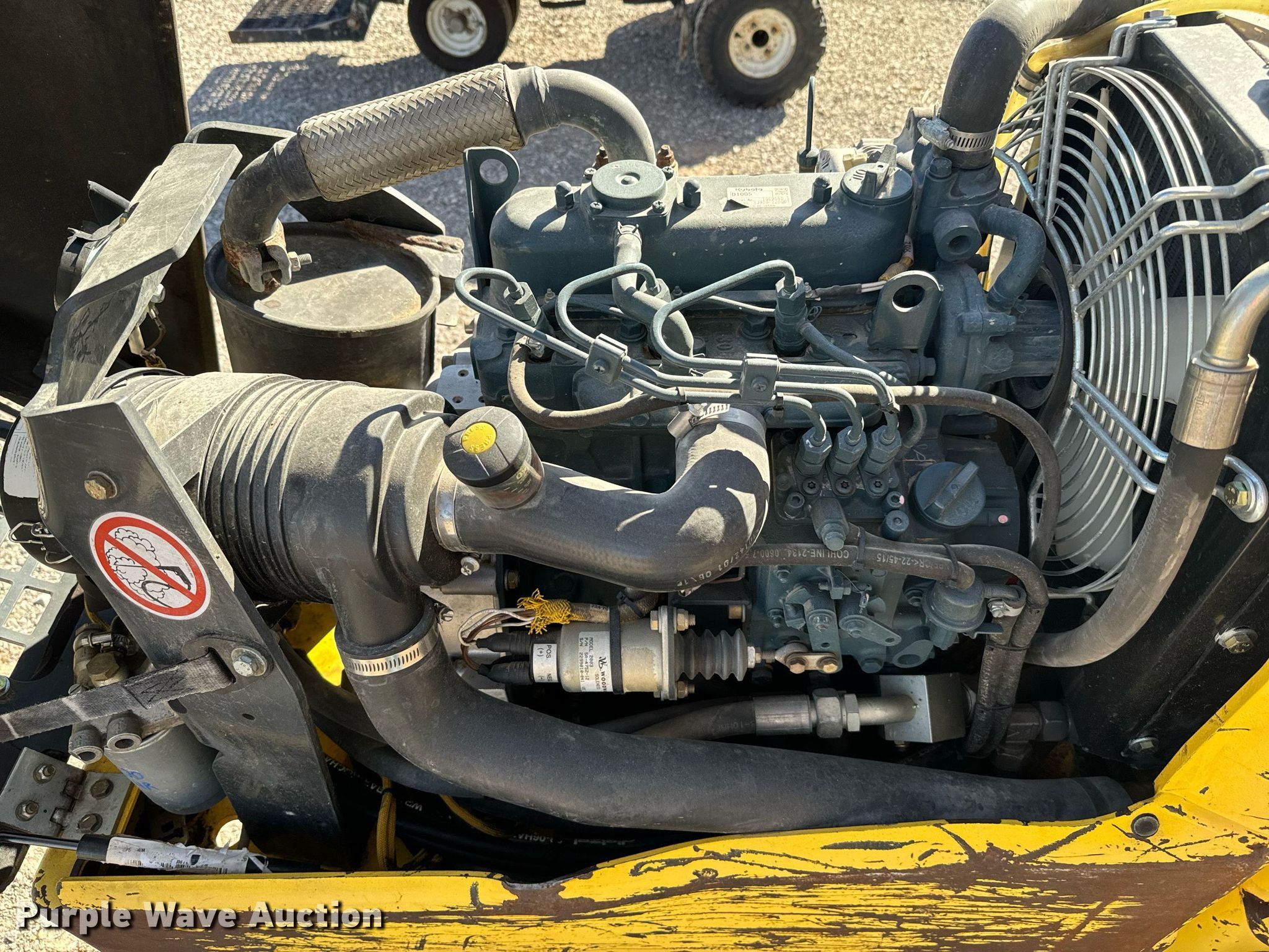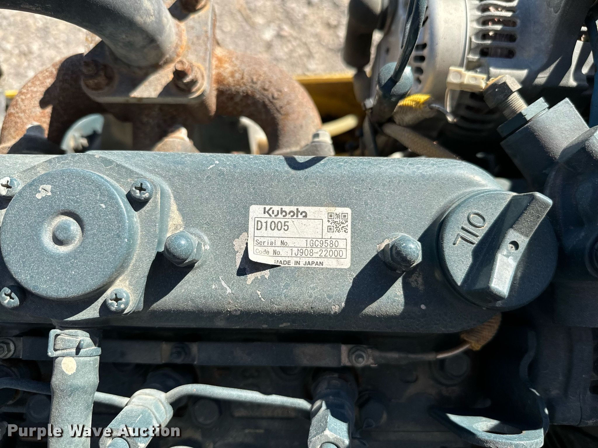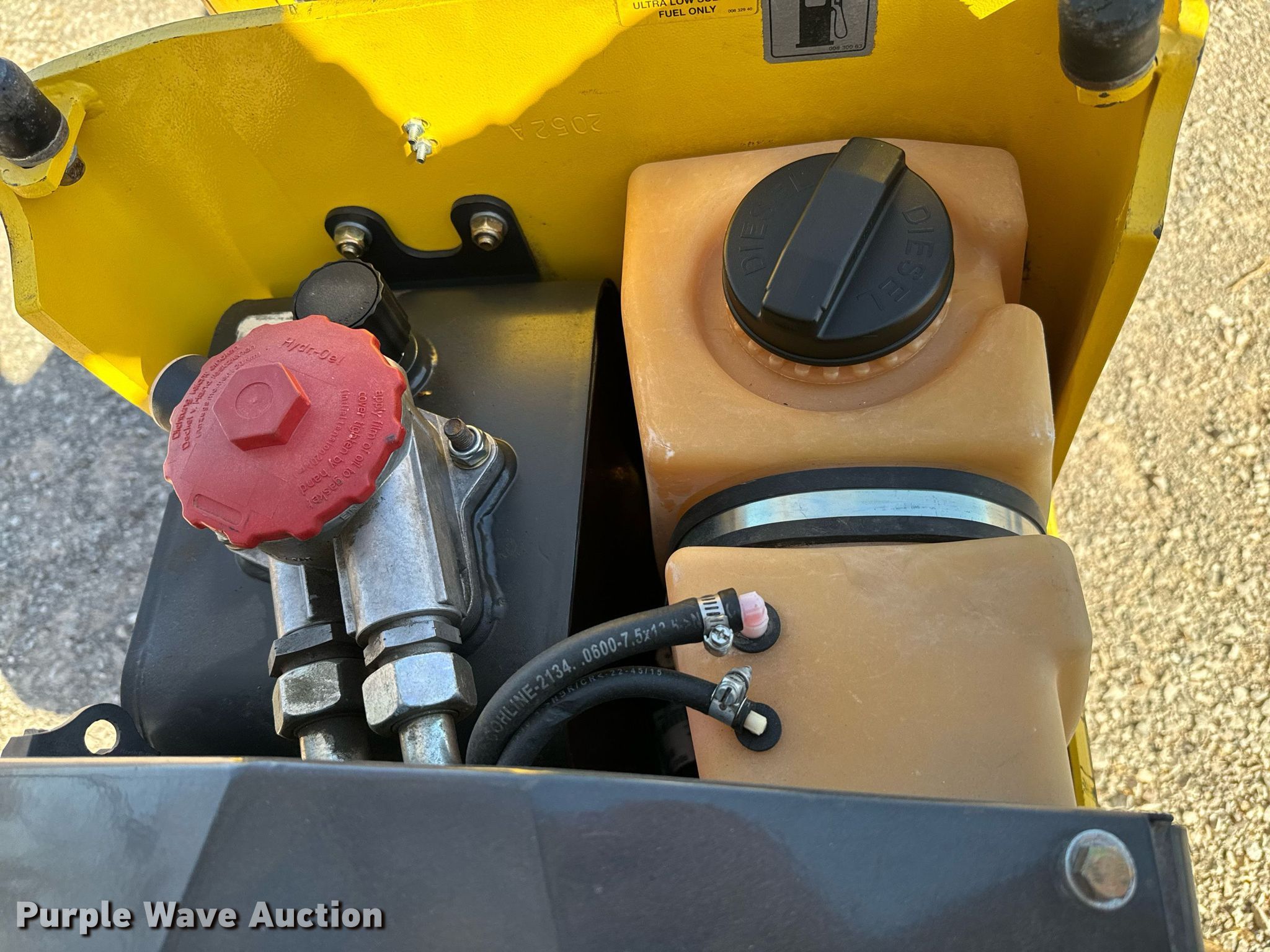 Bomag BMP8500 trench compactor. Hours: 822 on meter. Engine Kubota D1005-EF06, Serial: GKBXL01.0BCB, Displacement: 1.0L, Cylinders: 3, Fuel type: Diesel. Transmission Hydrostatic, Two speed travel. Features Drum: Padfoot Width: 24", Diameter: 20", Drum scrapers: Front, Rear, Remote control. Marlow, OK 73055