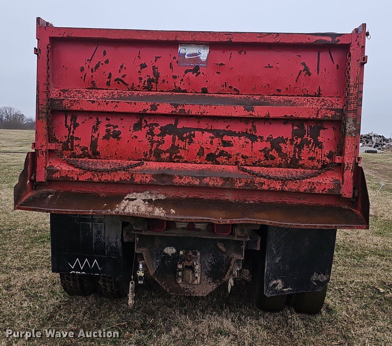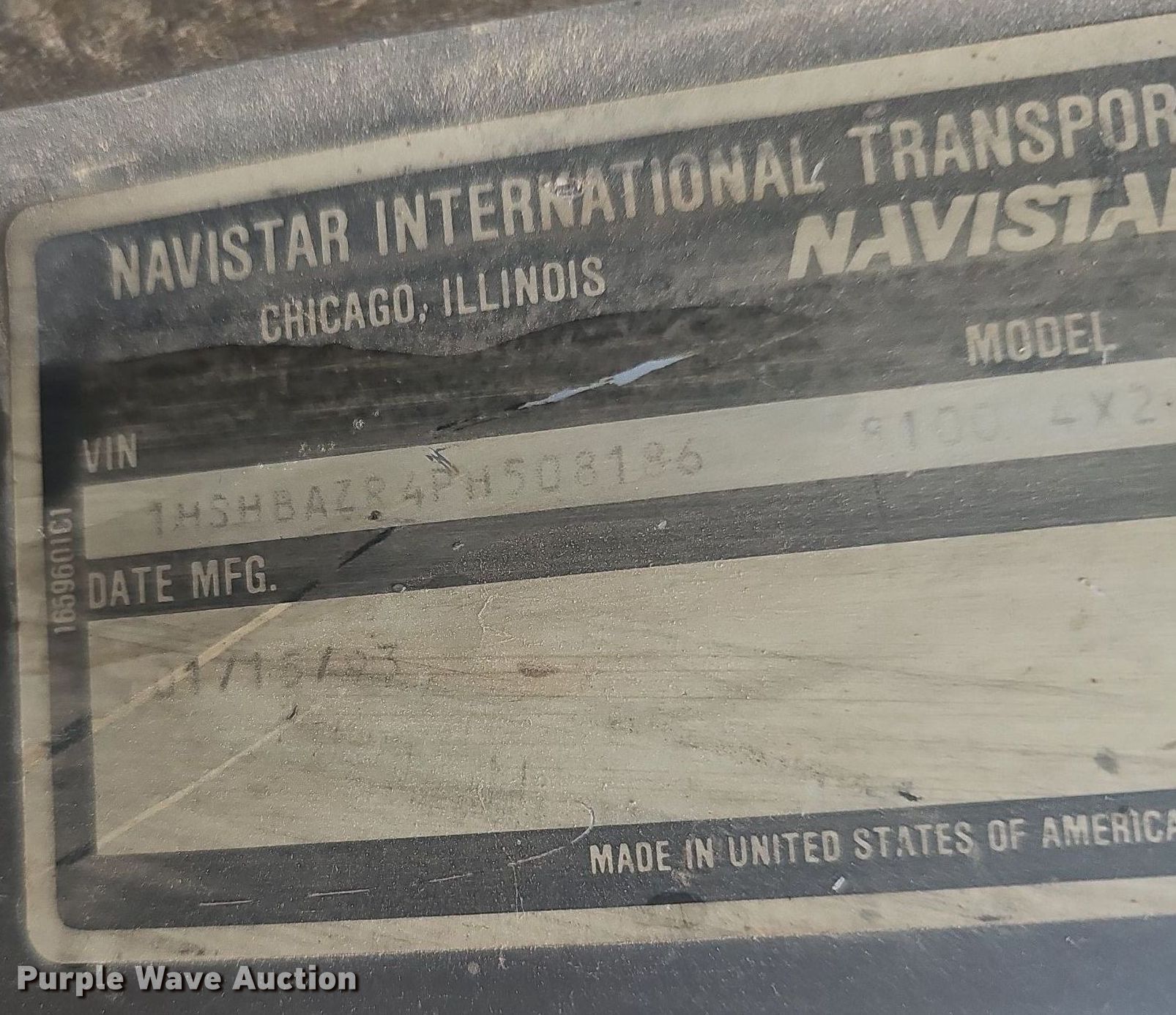1993 International 8100 dump truck. Miles: 716,423 on odometer, VIN: 1HSHBAZR4PH508186. Engine Cummins, Displacement: 10.0L, Cylinders: 6, Fuel type: Diesel. Transmission Eaton fuller, Manual, Speed: 9. Chassis Double frame, Axles: Single, Suspension: Spring, Brakes: Air, PTO. Interior AC, heat. Features Dump bed Great Star, 10' L x 96" W, Side height: 40", Side board height: 8", Bed type: Steel, Ram: Single. Tires Size: 295/75R22.5. Missouri title. Title distribution may be delayed up to 14 days from verification of funds. Solid Rock Excavating. 869 Keystone Road. Reeds Spring, MO 65737