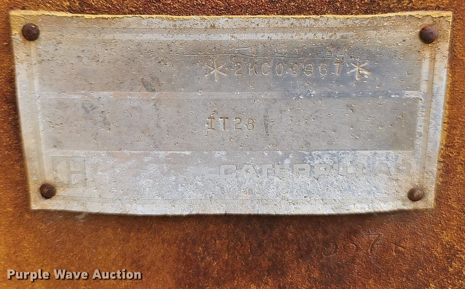 1985 Caterpillar IT28 wheel loader. Hours: 34,772 on meter, Serial: 2KC00967. Engine Caterpillar, Cylinders: 4, Fuel type: Diesel. Transmission Powershift, 4F - 4R. Operators station Enclosed cab, AC, Heat, Bucket controls: Two-lever. Features Auxiliary hydraulics: Front, Quick coupler: Hydraulic, Bucket Width: 94", Cutting edge: Bolt-on. Tires Size: 17.5-25. Notes Possible starter issues, would not start, Dead battery, Unknown operating condition. Table Rock Asphalt Construction Co., Inc.. 3260 State Hwy 248. Branson, MO 65616