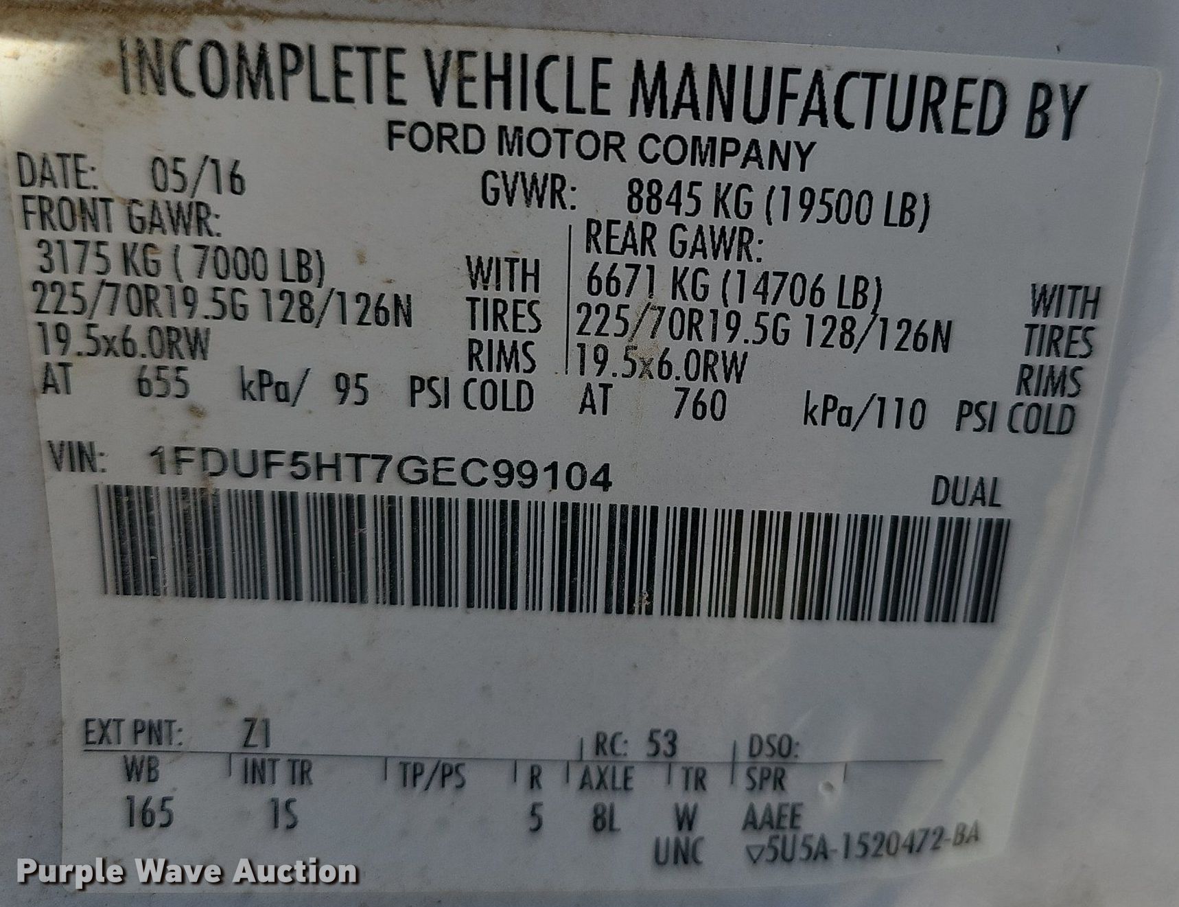 - VIN: 1FDUF5HT7GEC99104