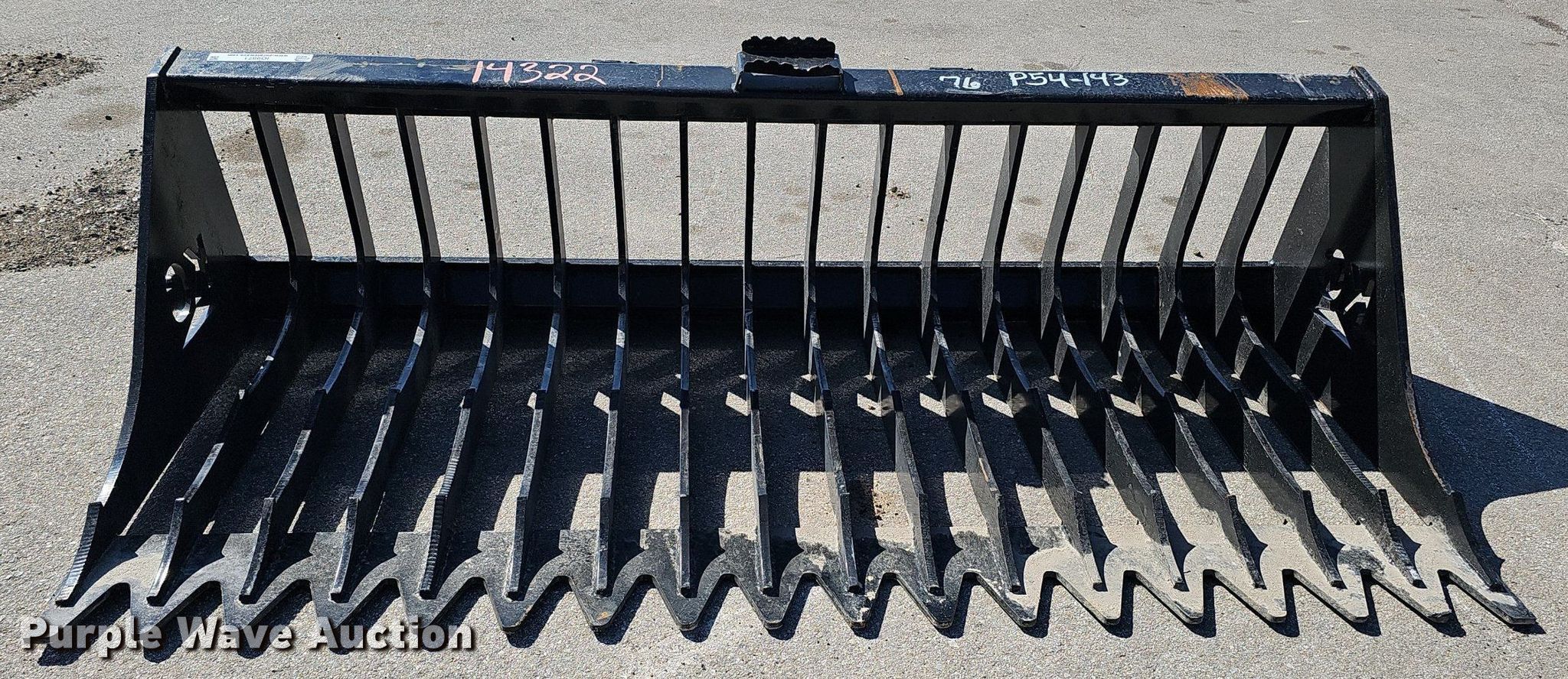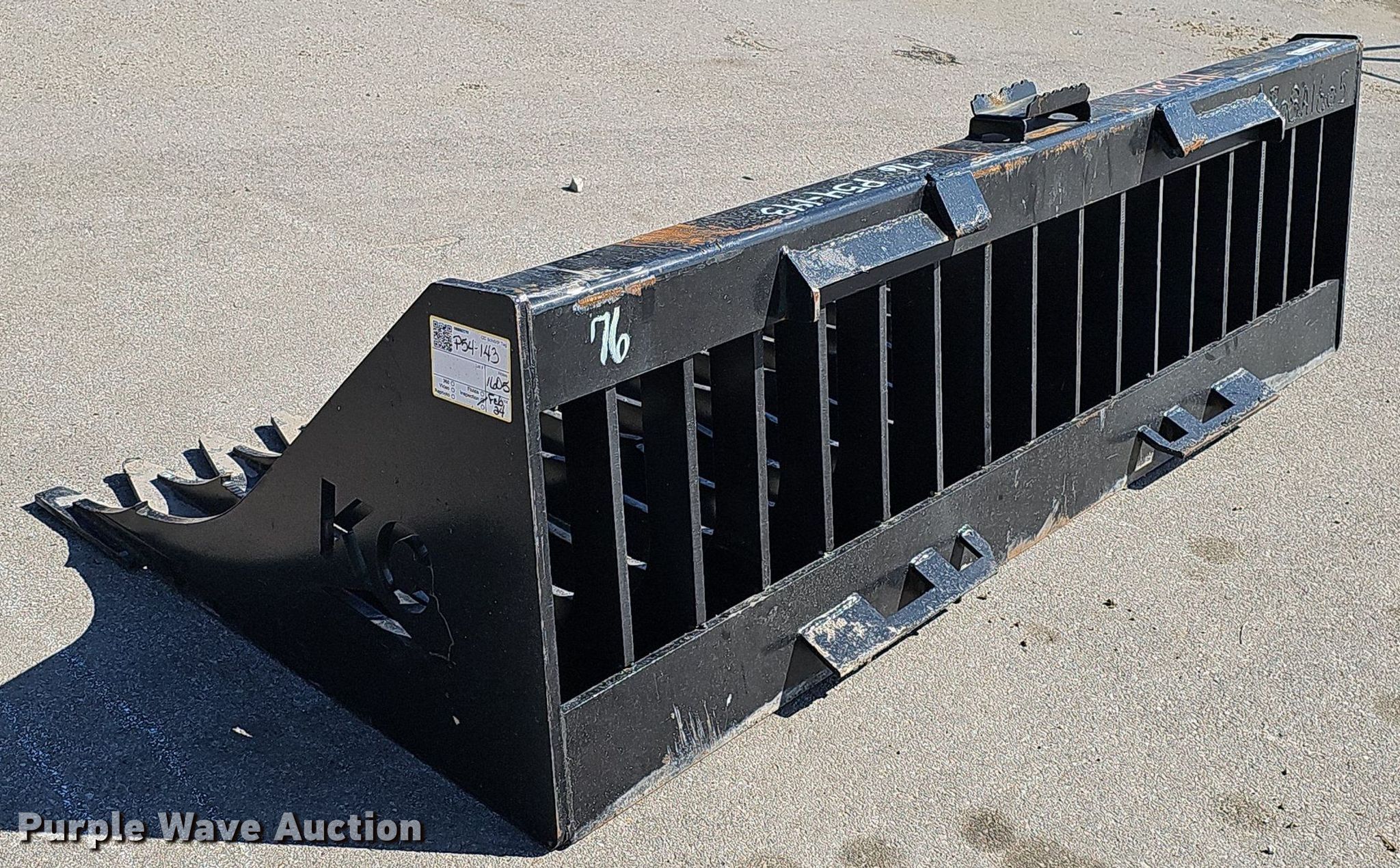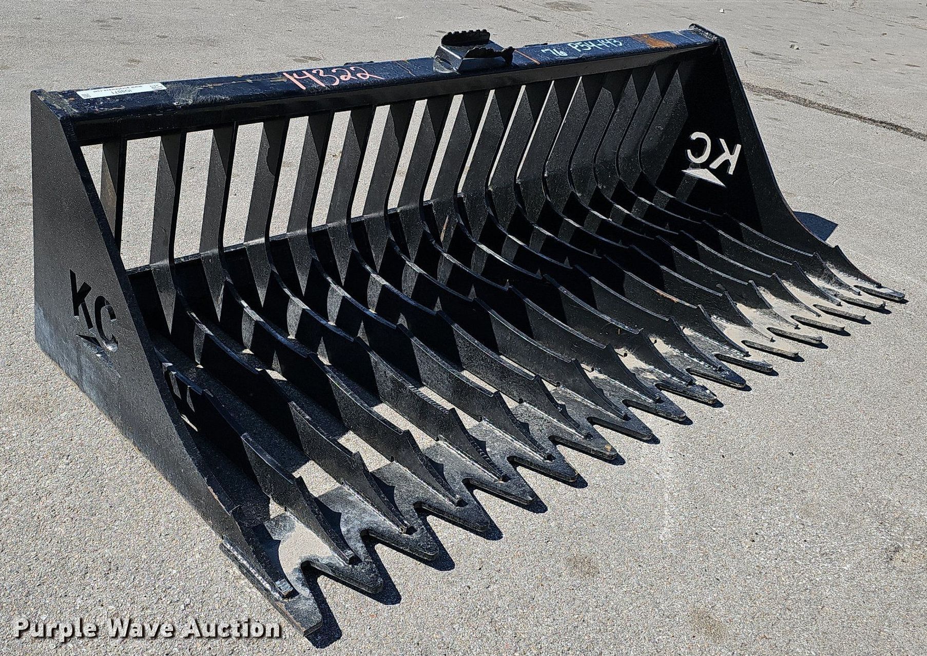 Purple Wave is selling a used Skid Steer Attach. in Nebraska. This item is a KC 76" W skid steer rock bucket with the following: Serial: B08A1605, Unused
