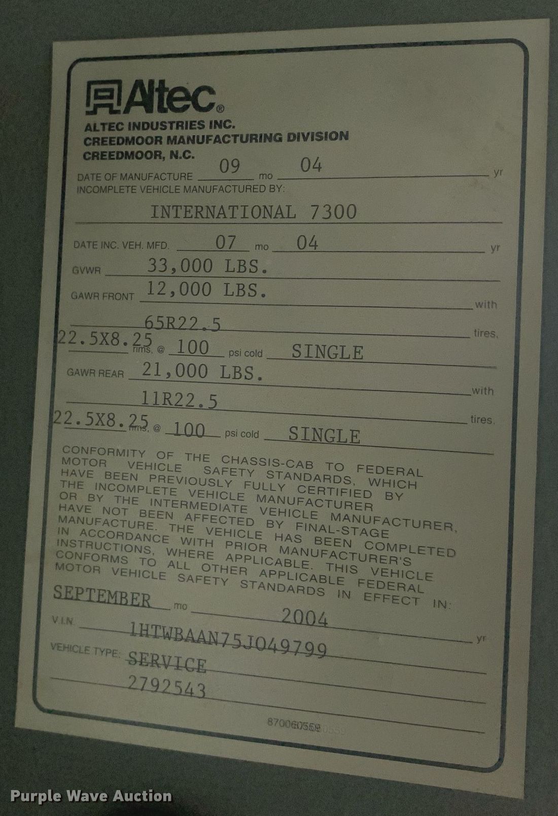 - VIN: 1HTWBAAN75J049799